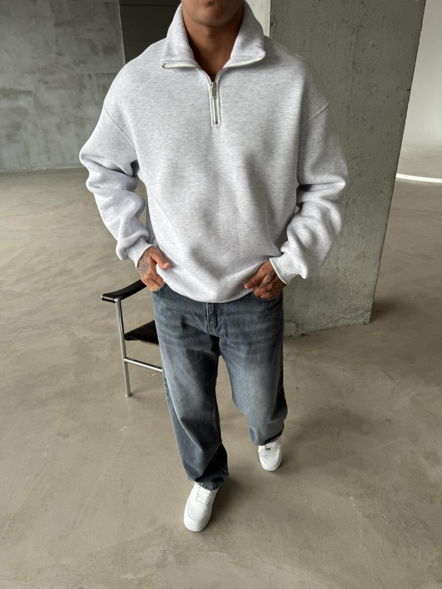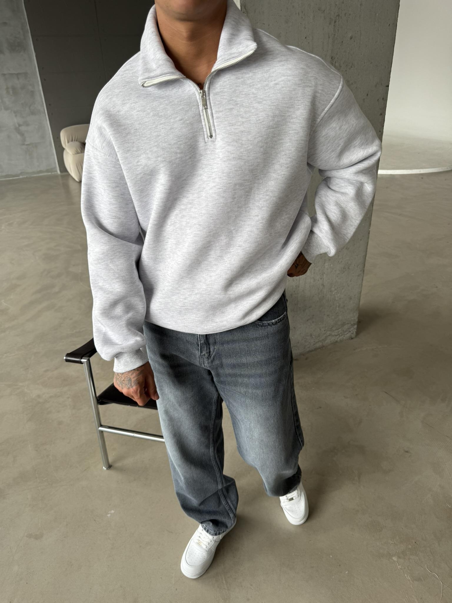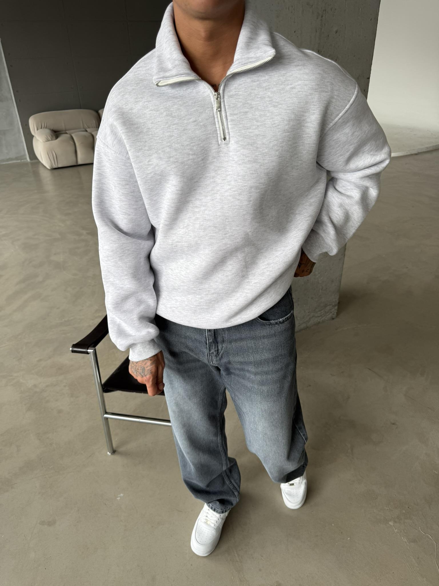 Düz Basic Yarım Fermuarlı Zip Sweat - Karmelanj (SWT.0020-Karmelanj-S)