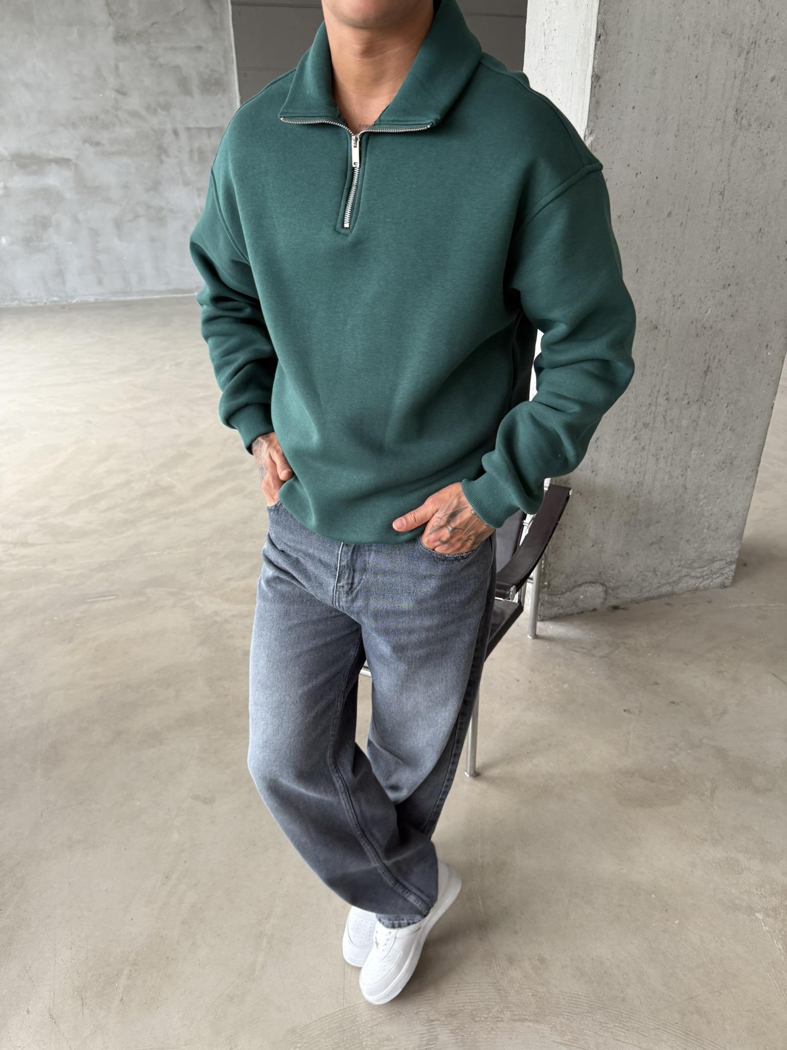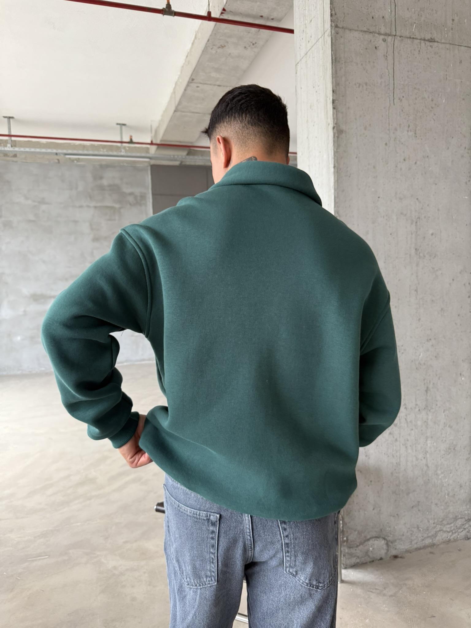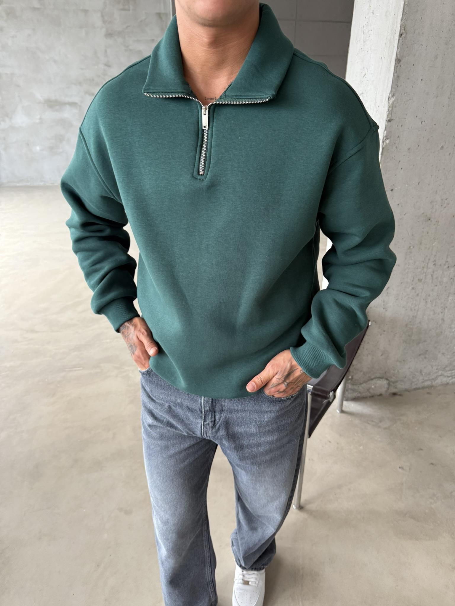 Düz Basic Yarım Fermuarlı Zip Sweat - Yeşil (SWT.0020-Yeşil-S)