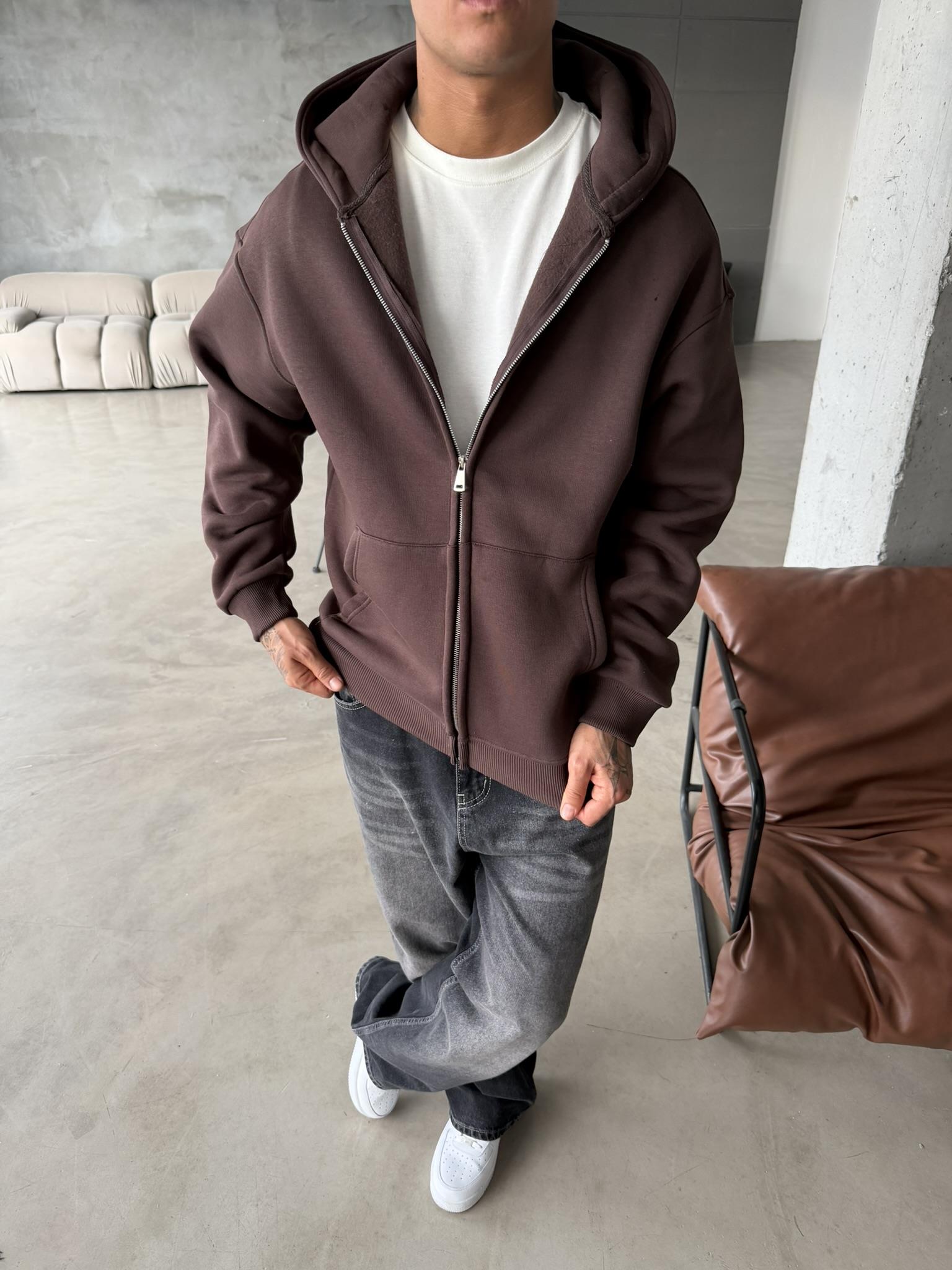 Düz Basic Zip hırka - Kahve (HRK.0004-Kahve-S)