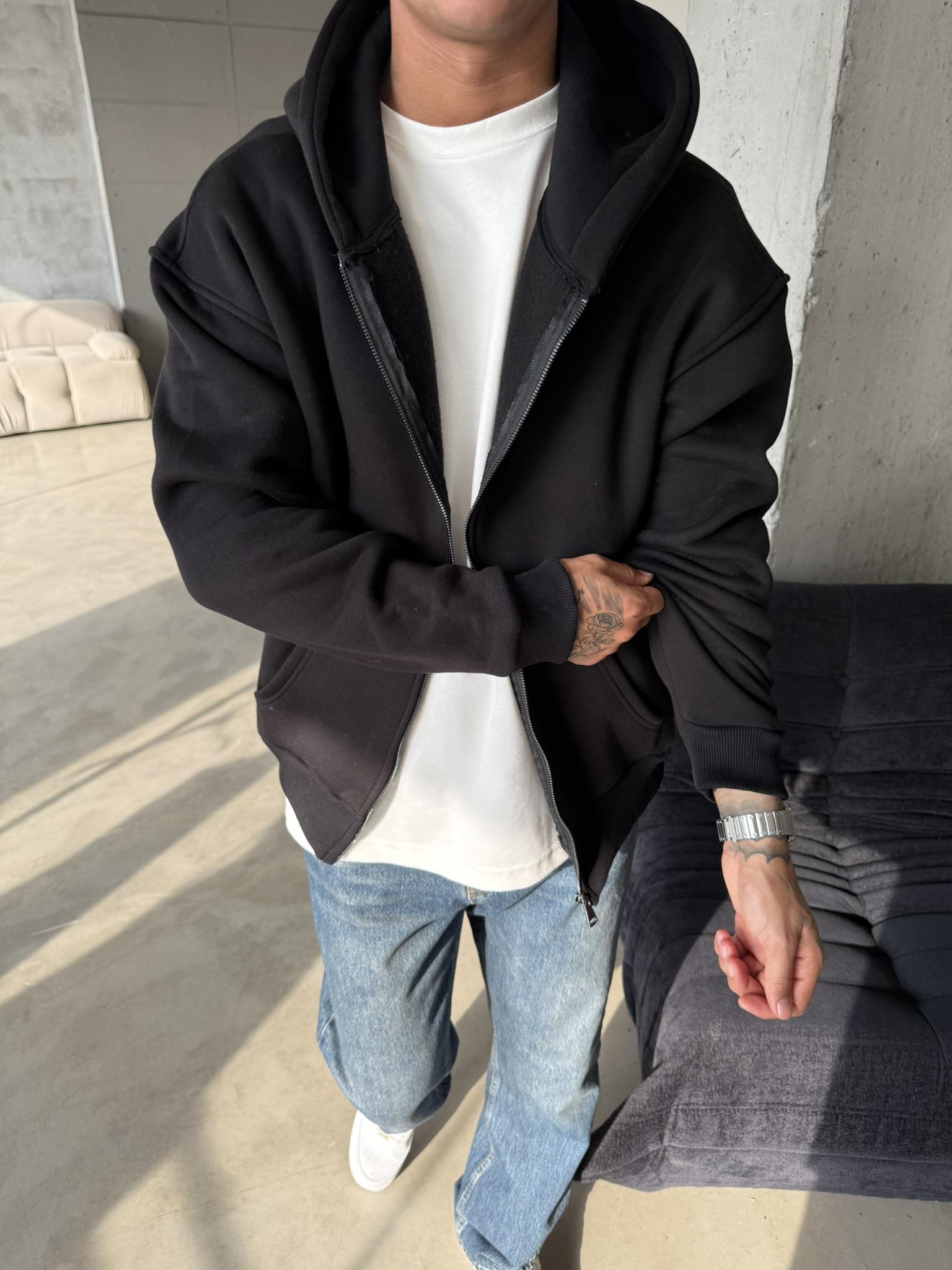Düz Basic Zip hırka - Siyah (HRK.0004-Siyah-S)