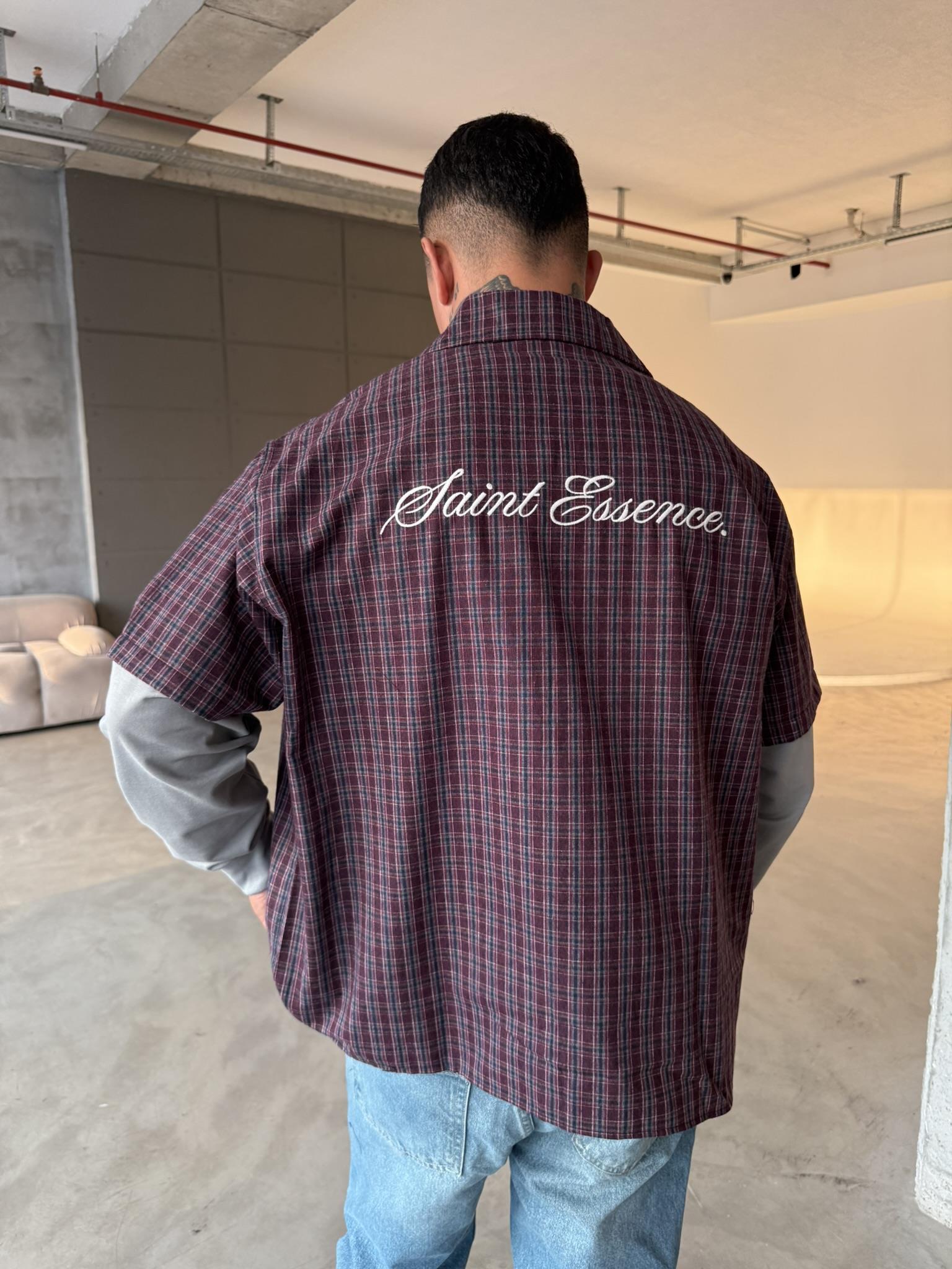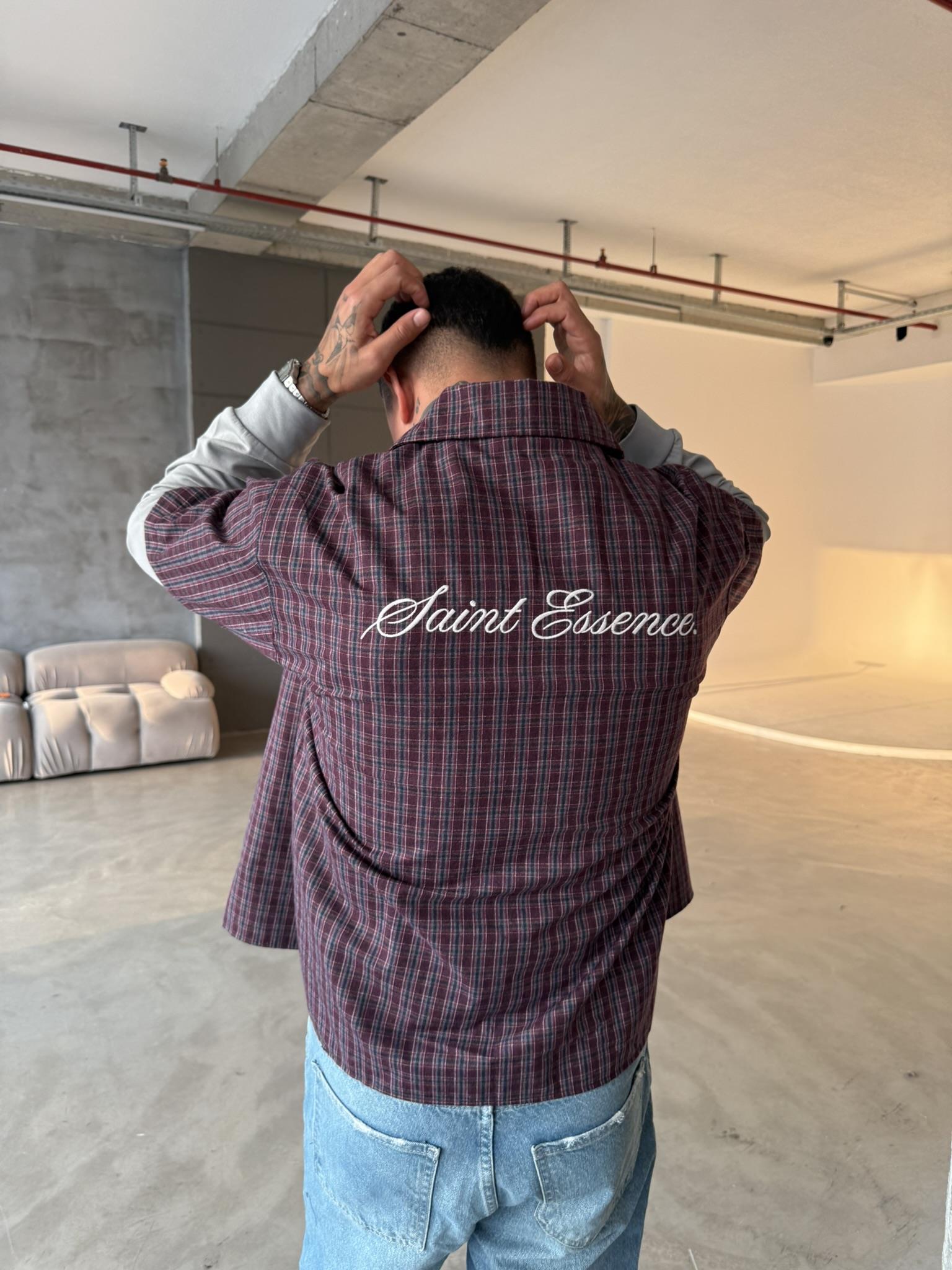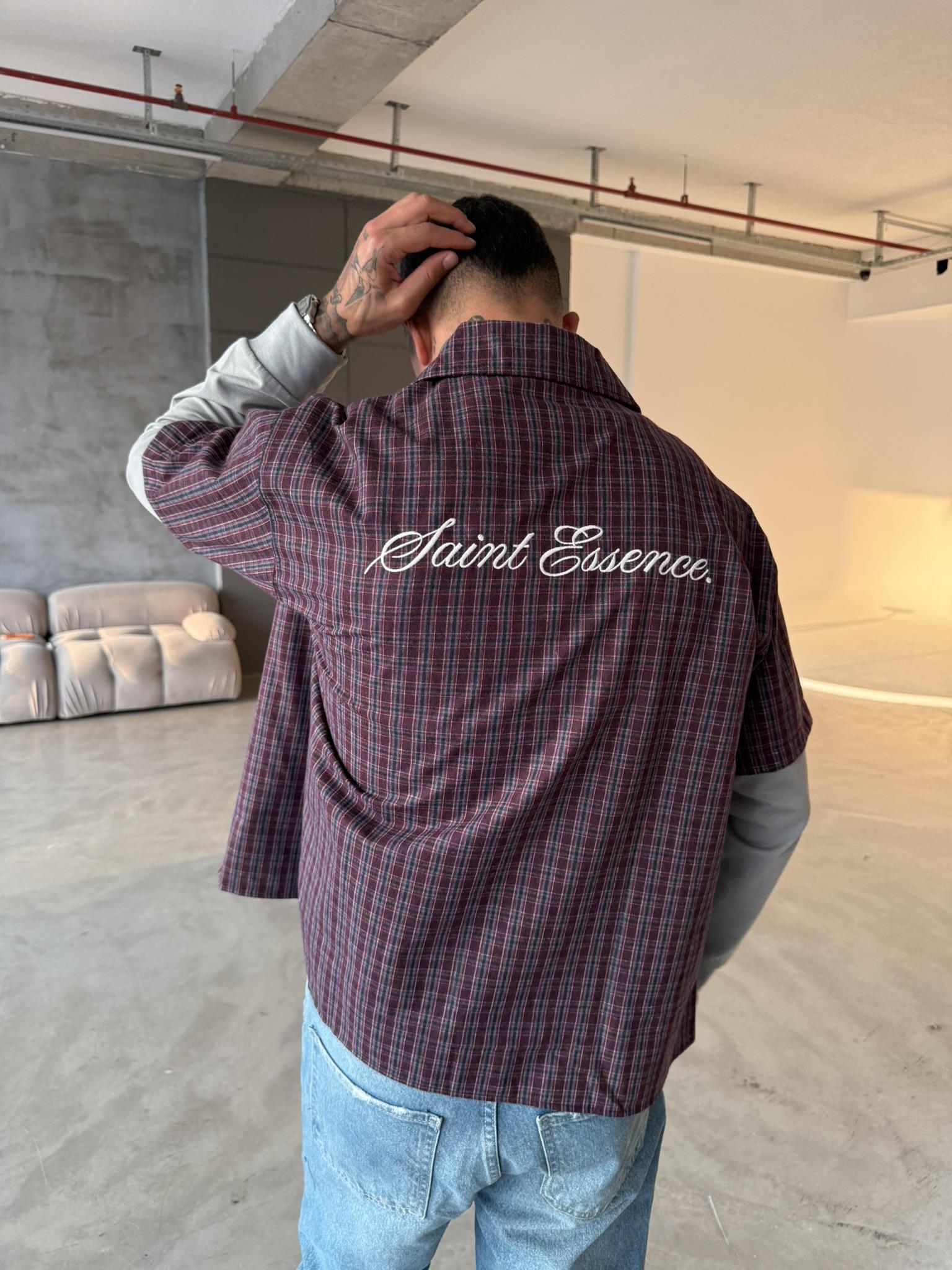 Ekose Eklem Kol Detaylı Gömlek - Bordo (GML.0040-Bordo-S)