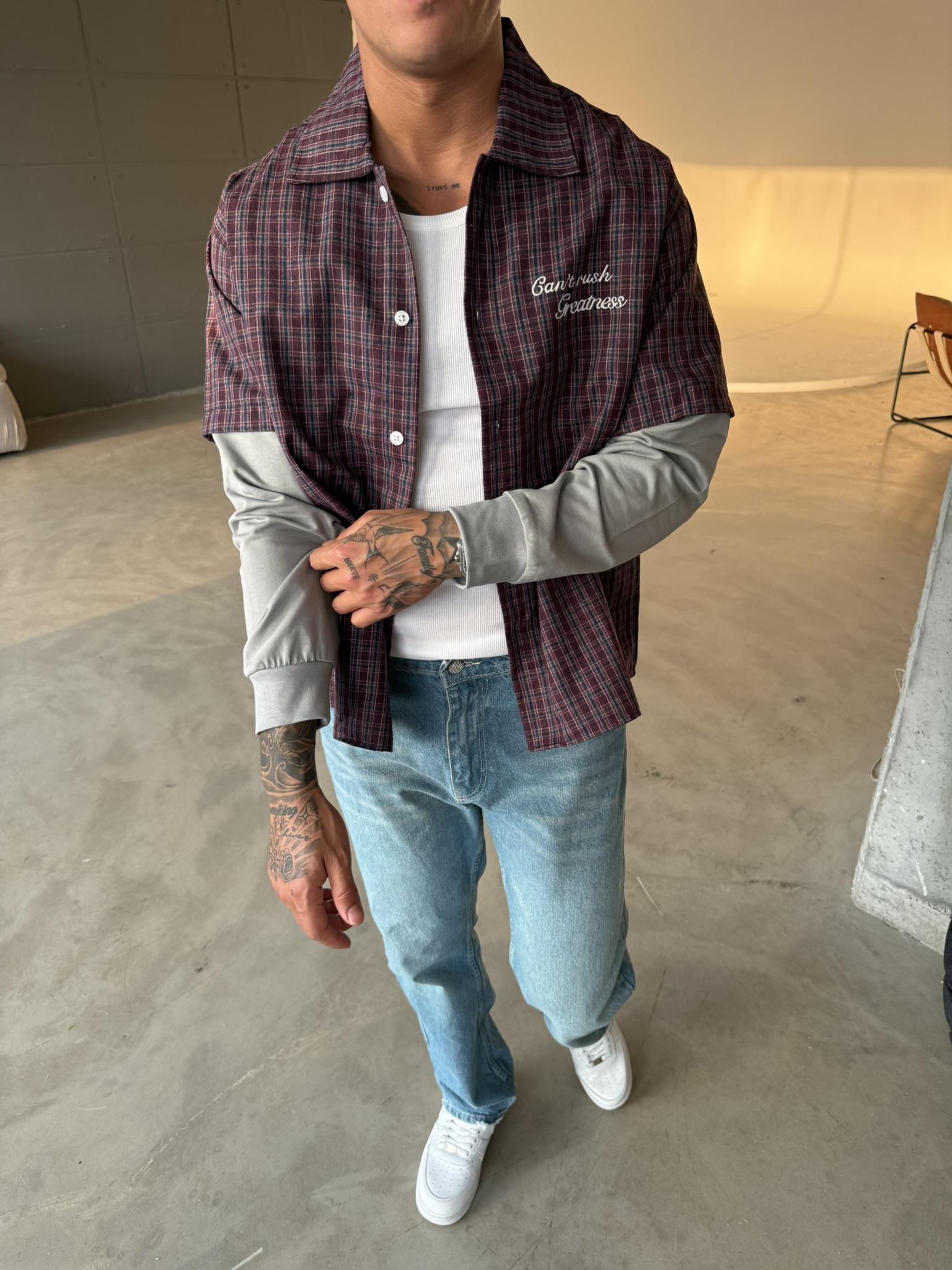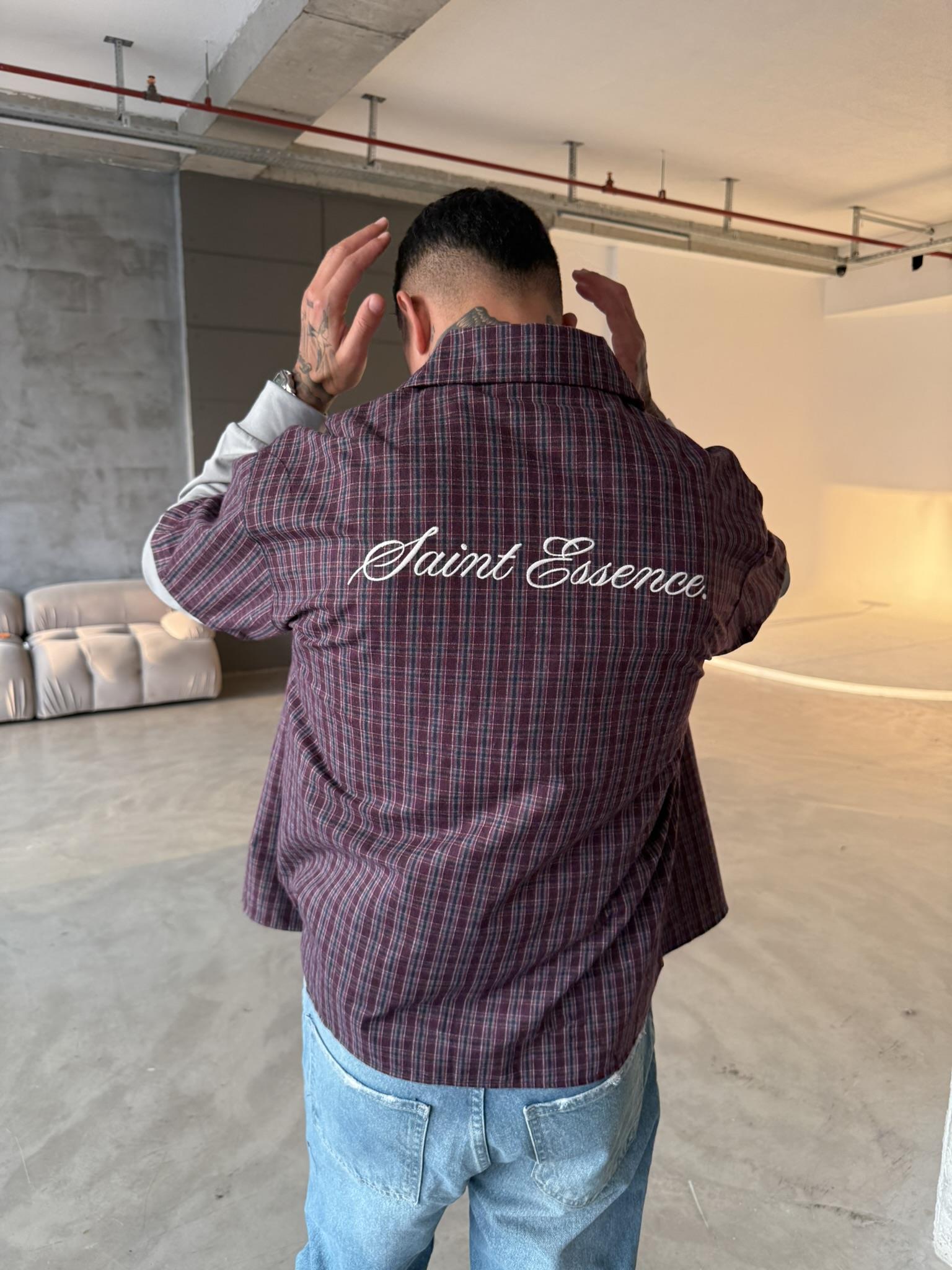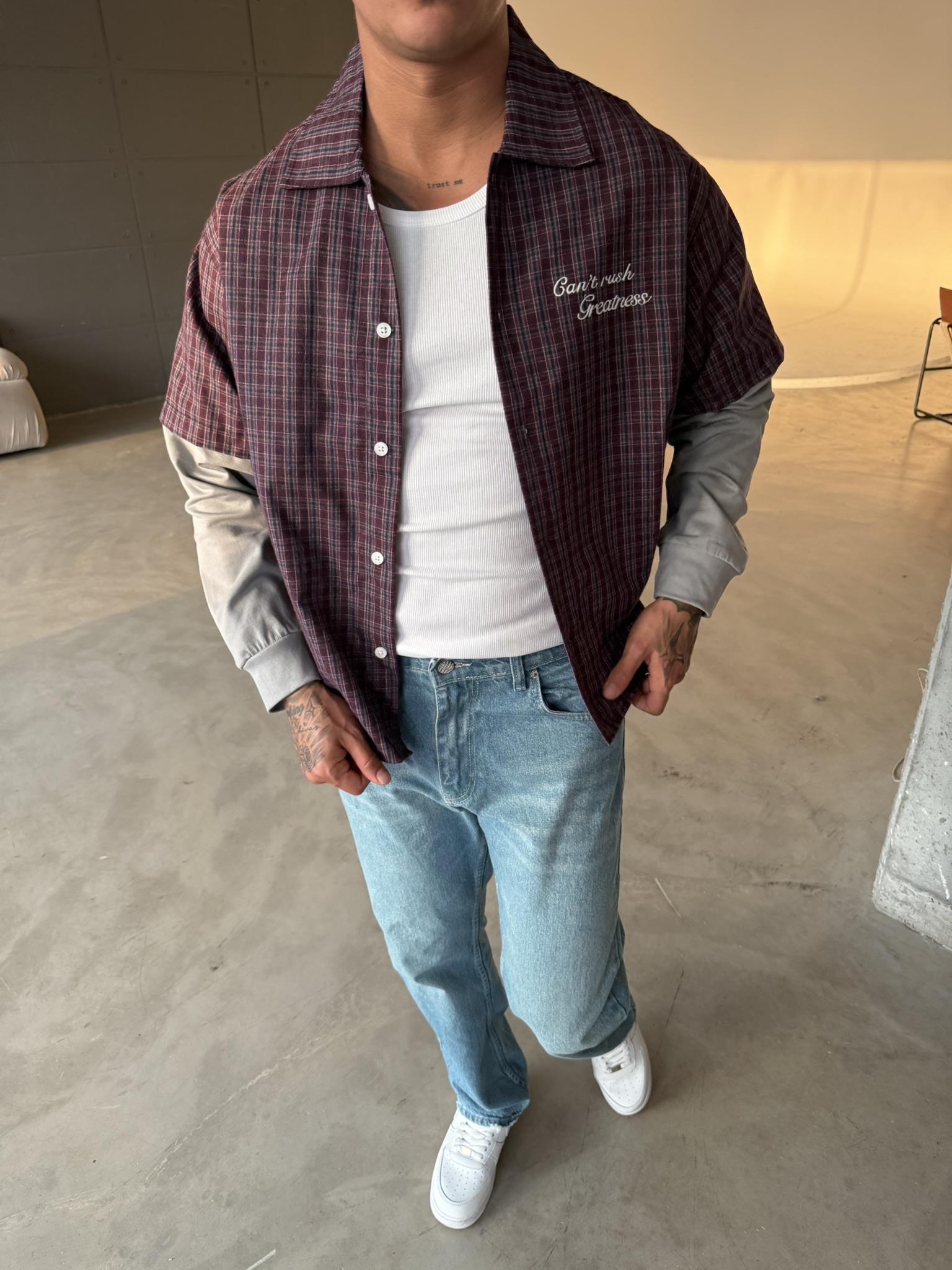 Ekose Eklem Kol Detaylı Gömlek - Bordo (GML.0040-Bordo-S)
