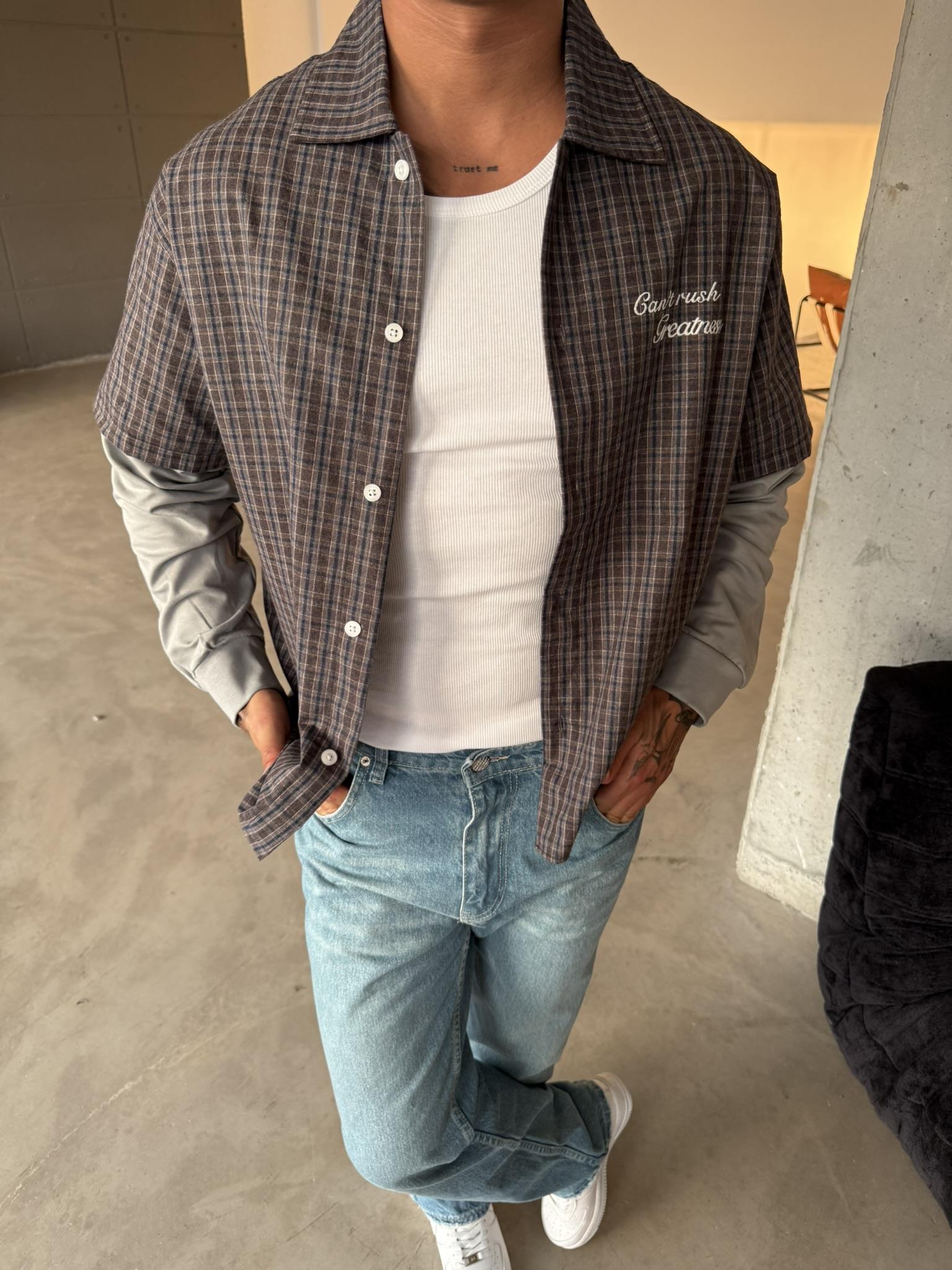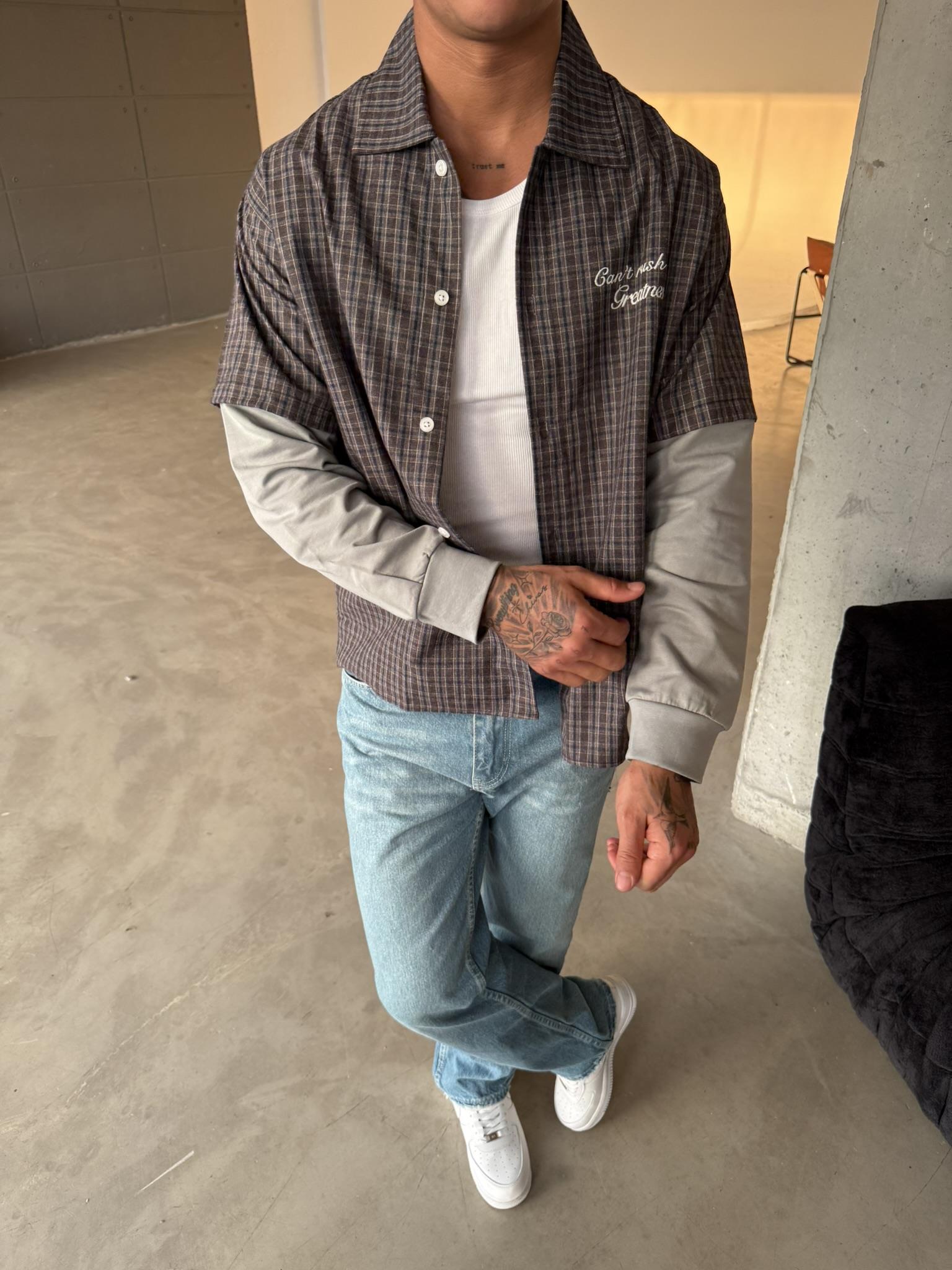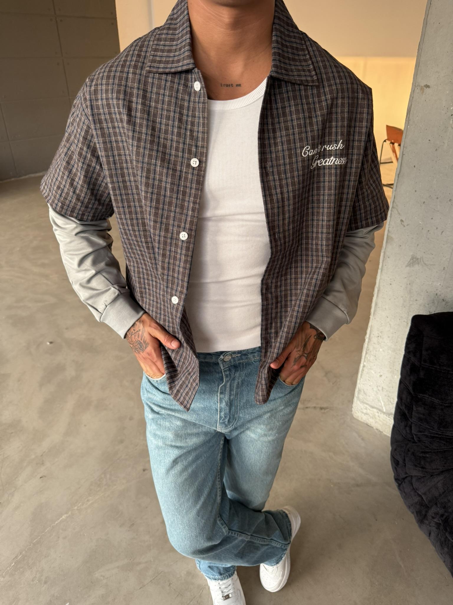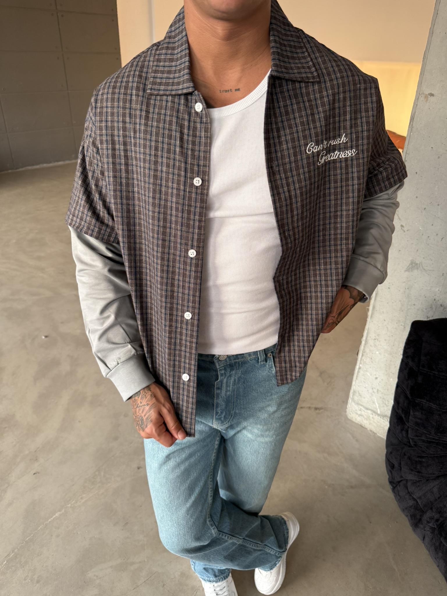Ekose Eklem Kol Detaylı Gömlek - Kahve (GML.0040-Kahve-S)