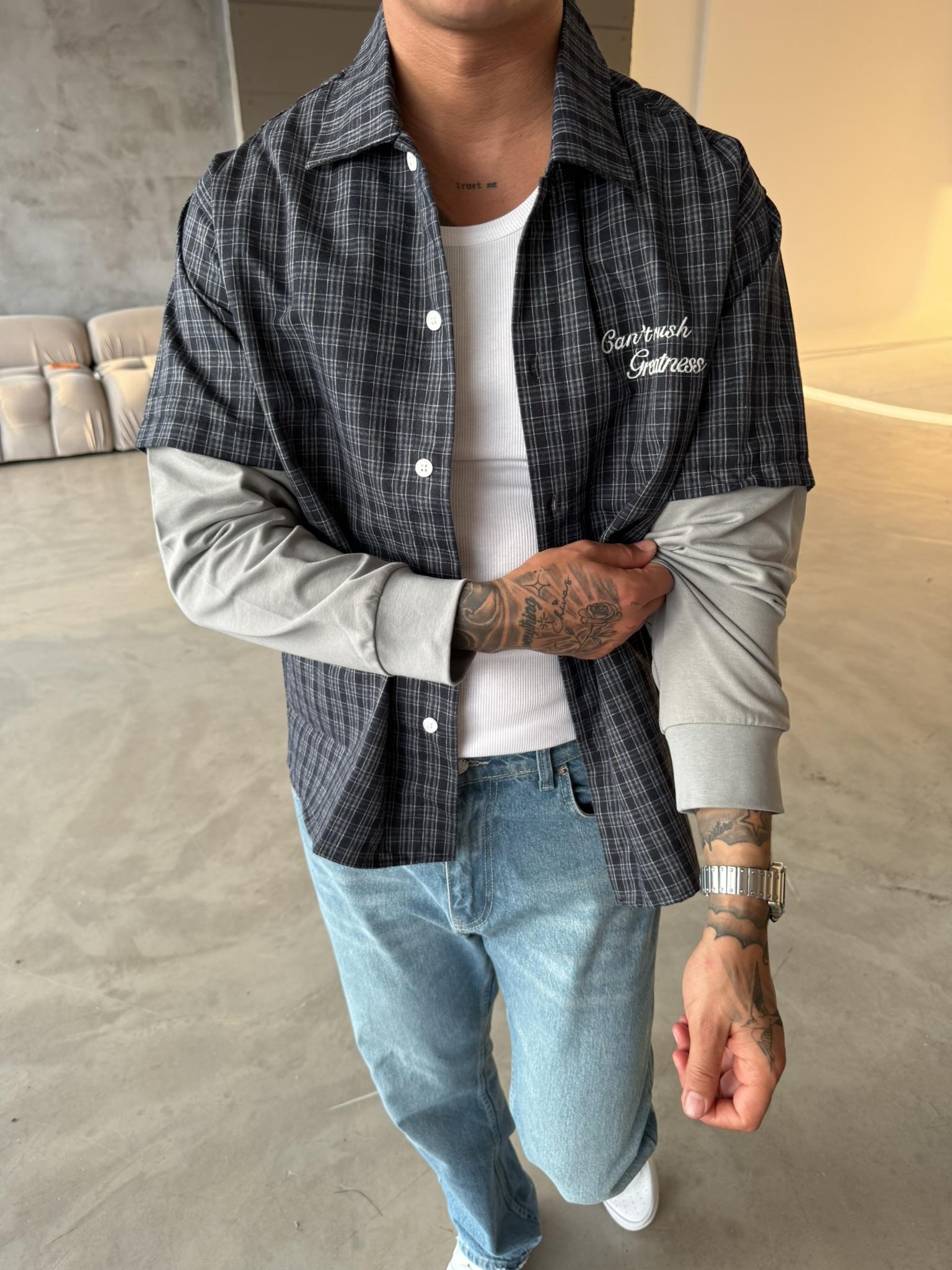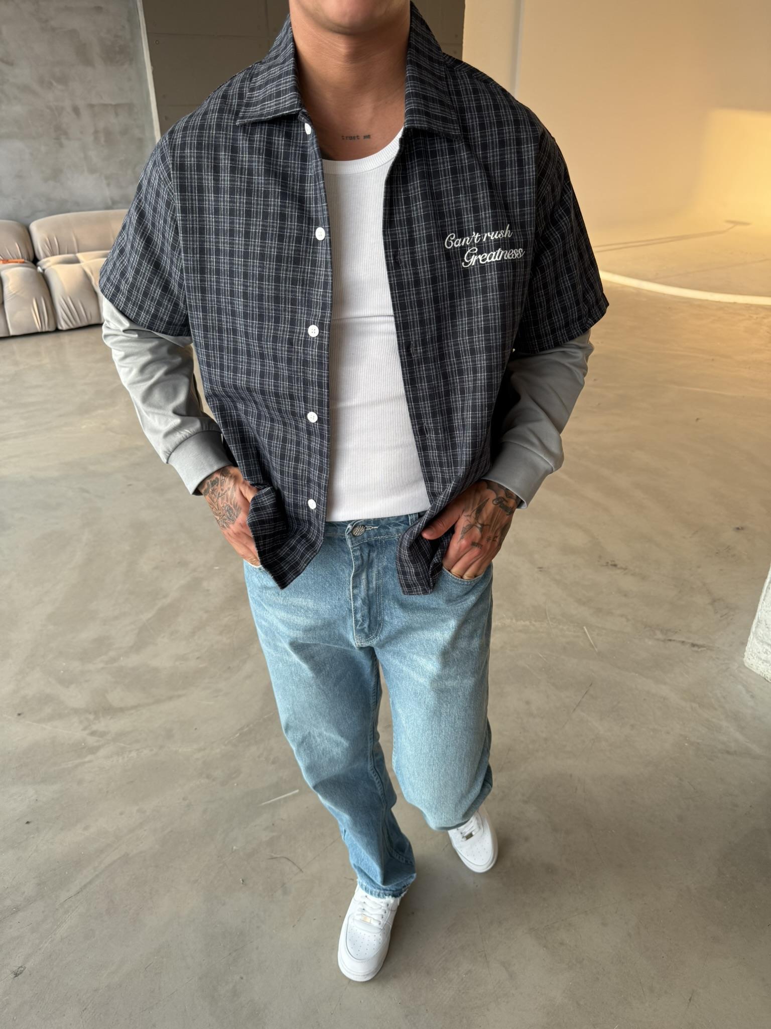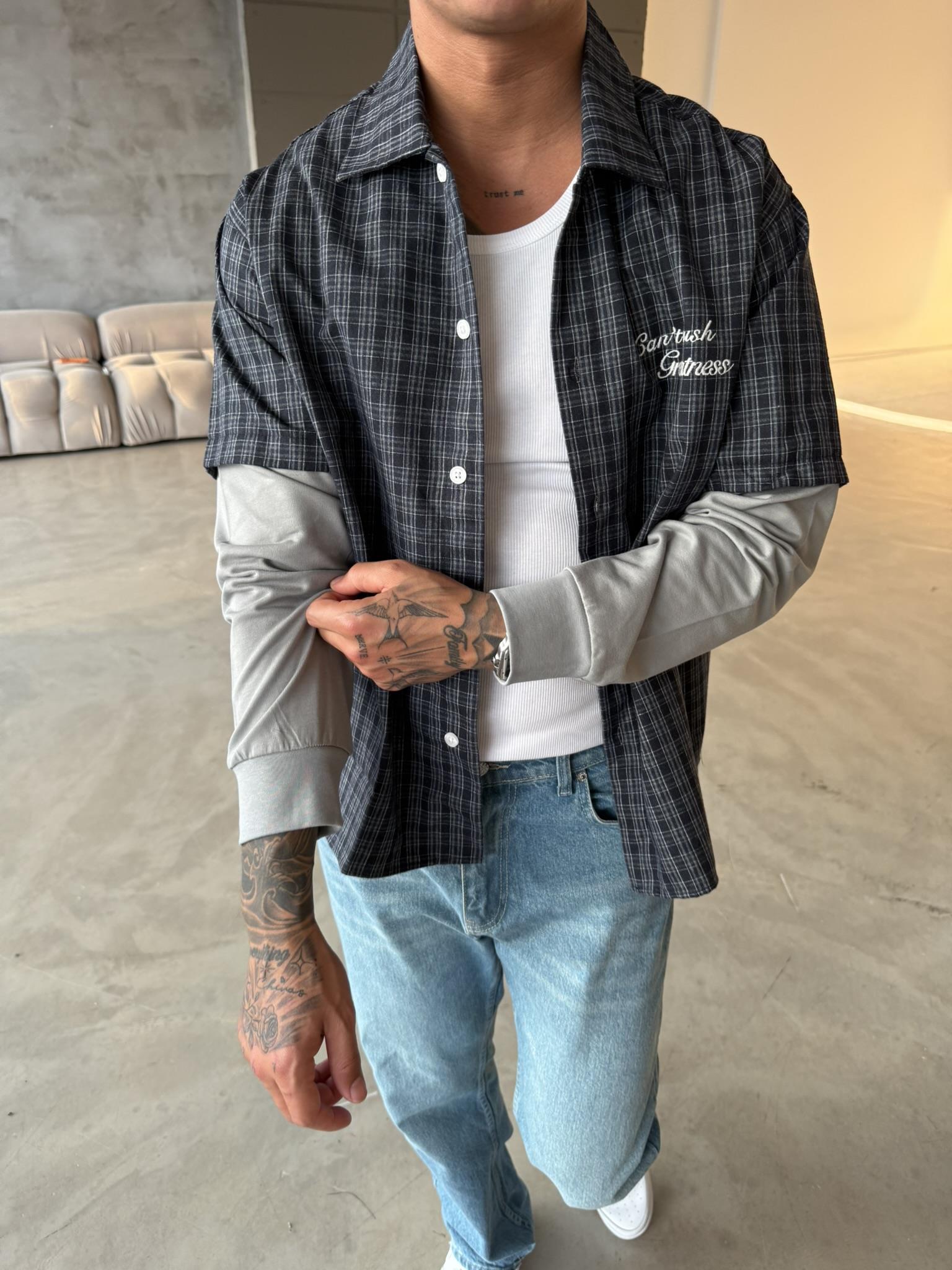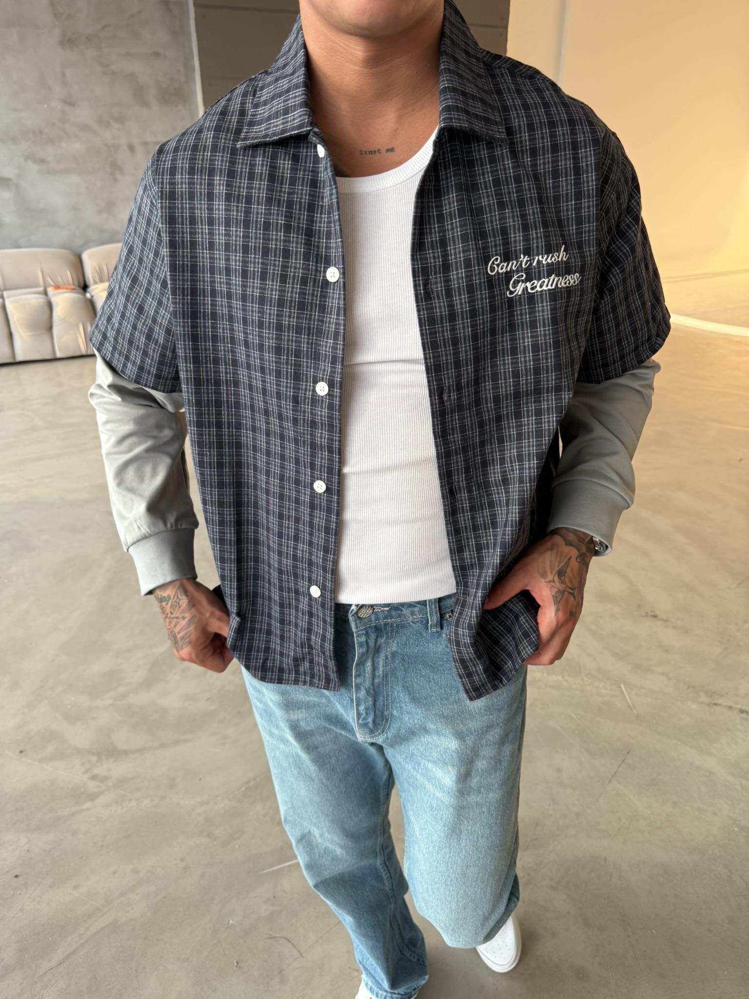 Ekose Eklem Kol Detaylı Gömlek - Mavi (GML.0040-Mavi-S)