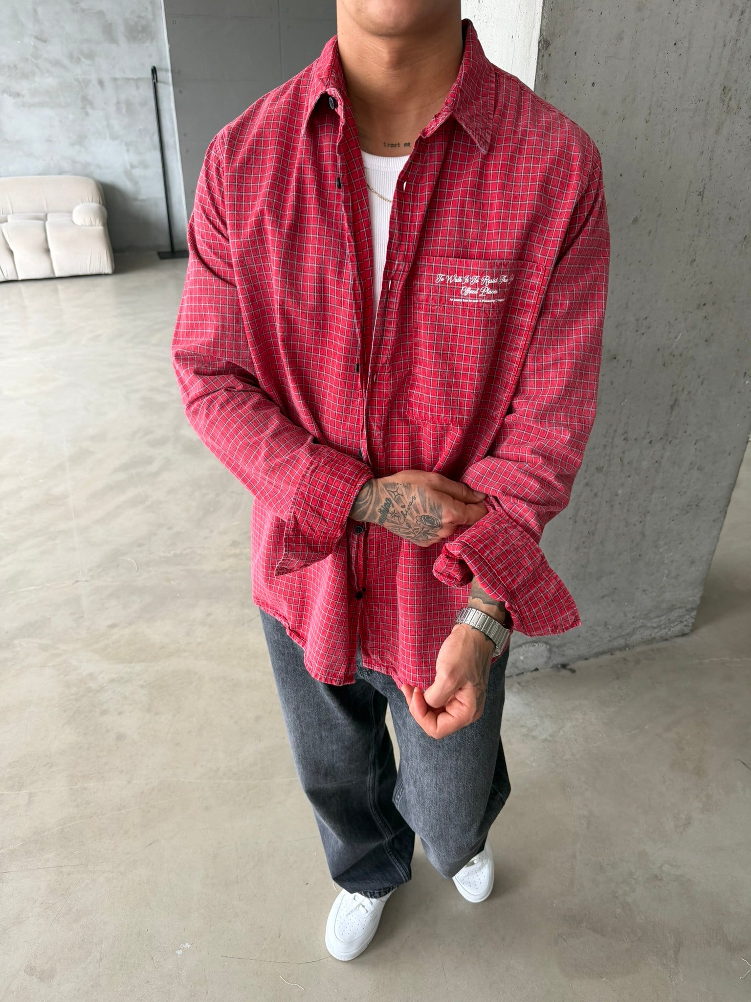 Ekose Premium Kumaş Gömlek - Kırmızı (GML.0051-Kırmızı-S)
