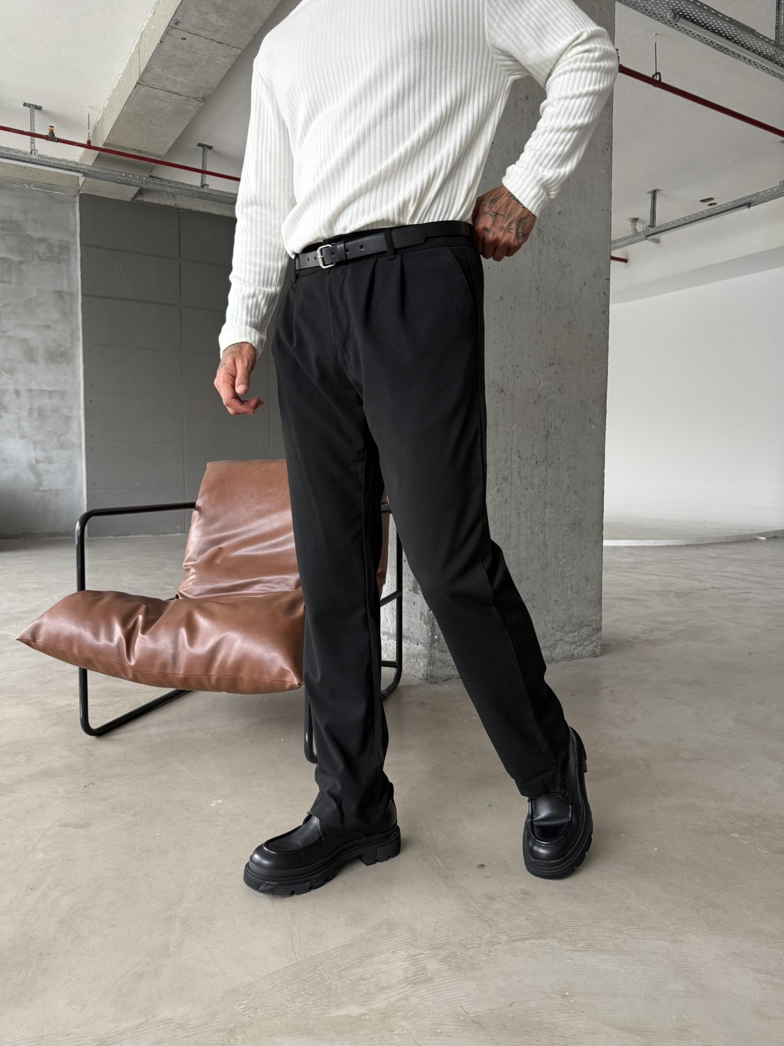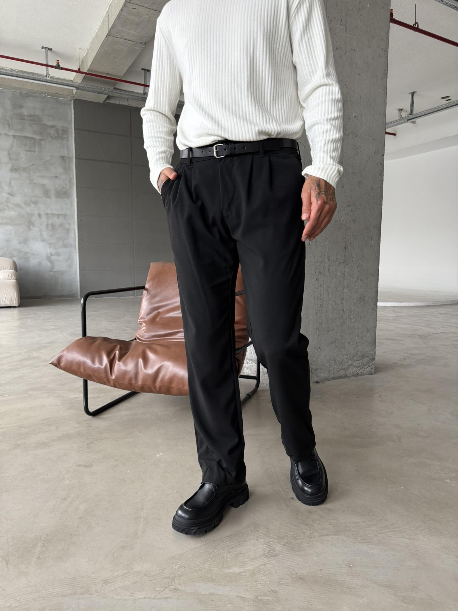 Erkek Baggy Basic Kumaş Pantolon - Siyah (PNT.0054-Siyah-S)