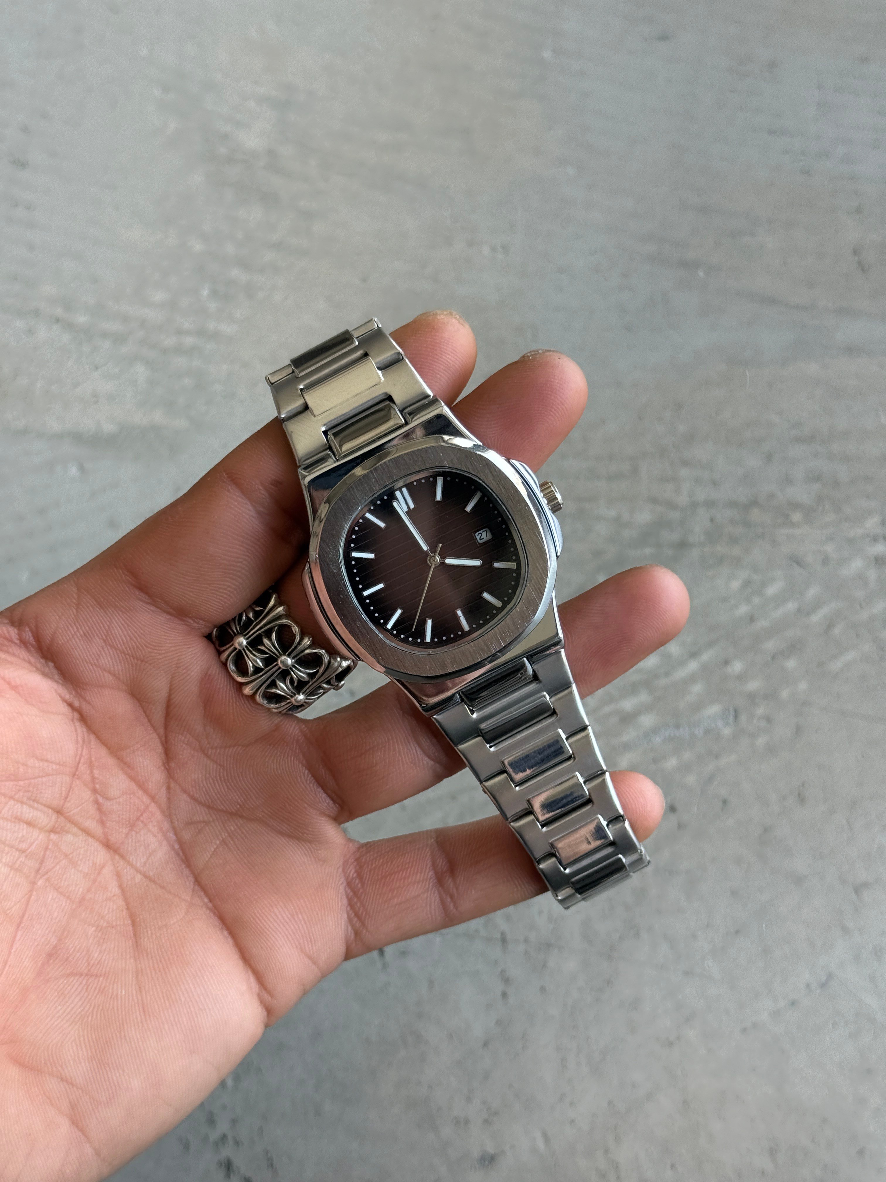 Erkek Silver Dawn Çelik Tasarım Saat - Kahve (STT.008-Kahve-STD)