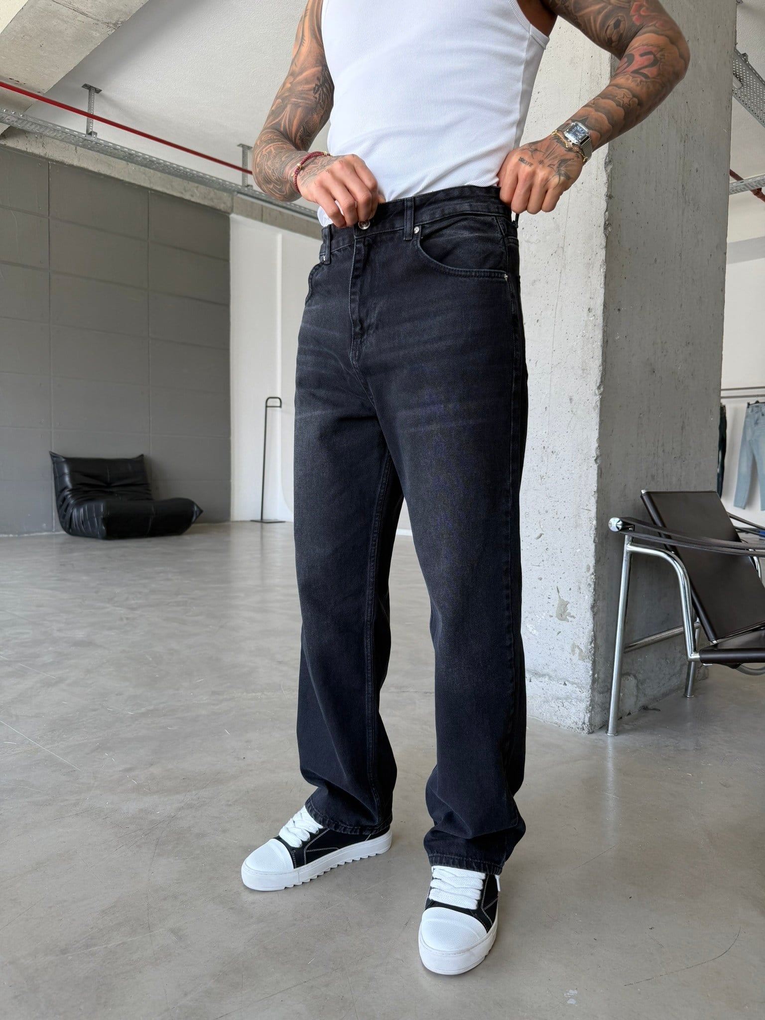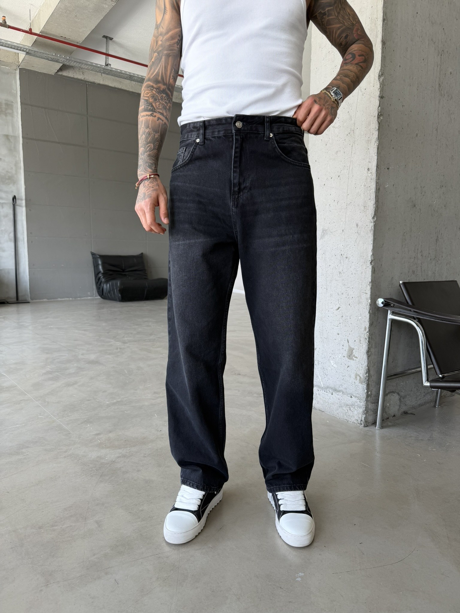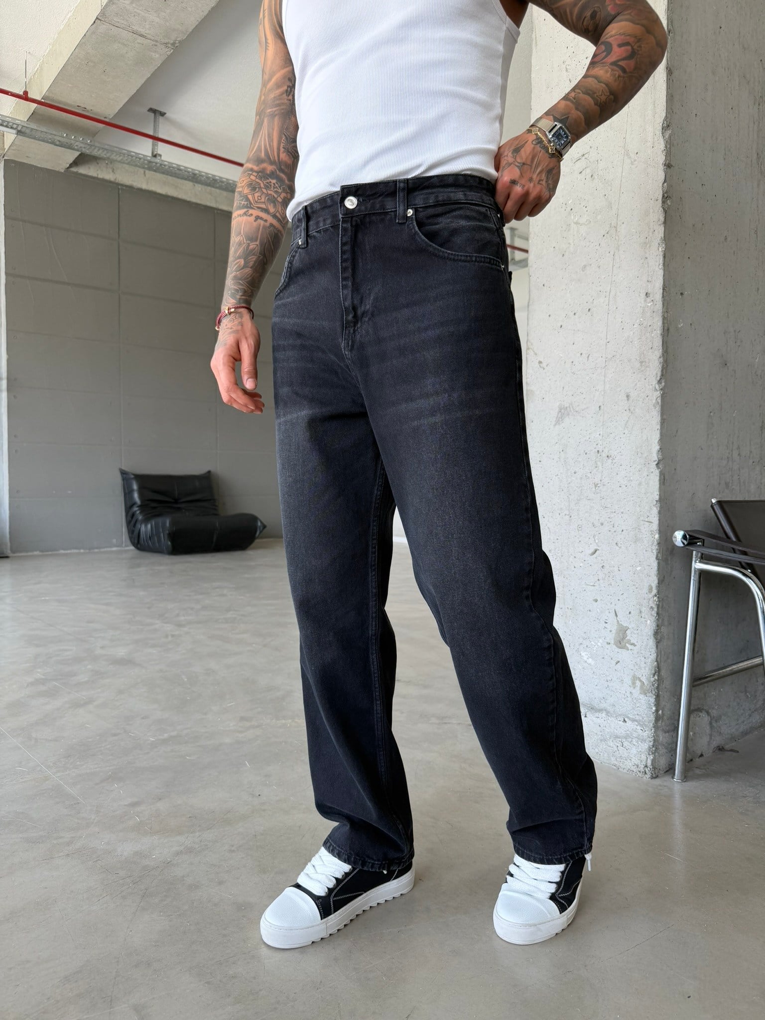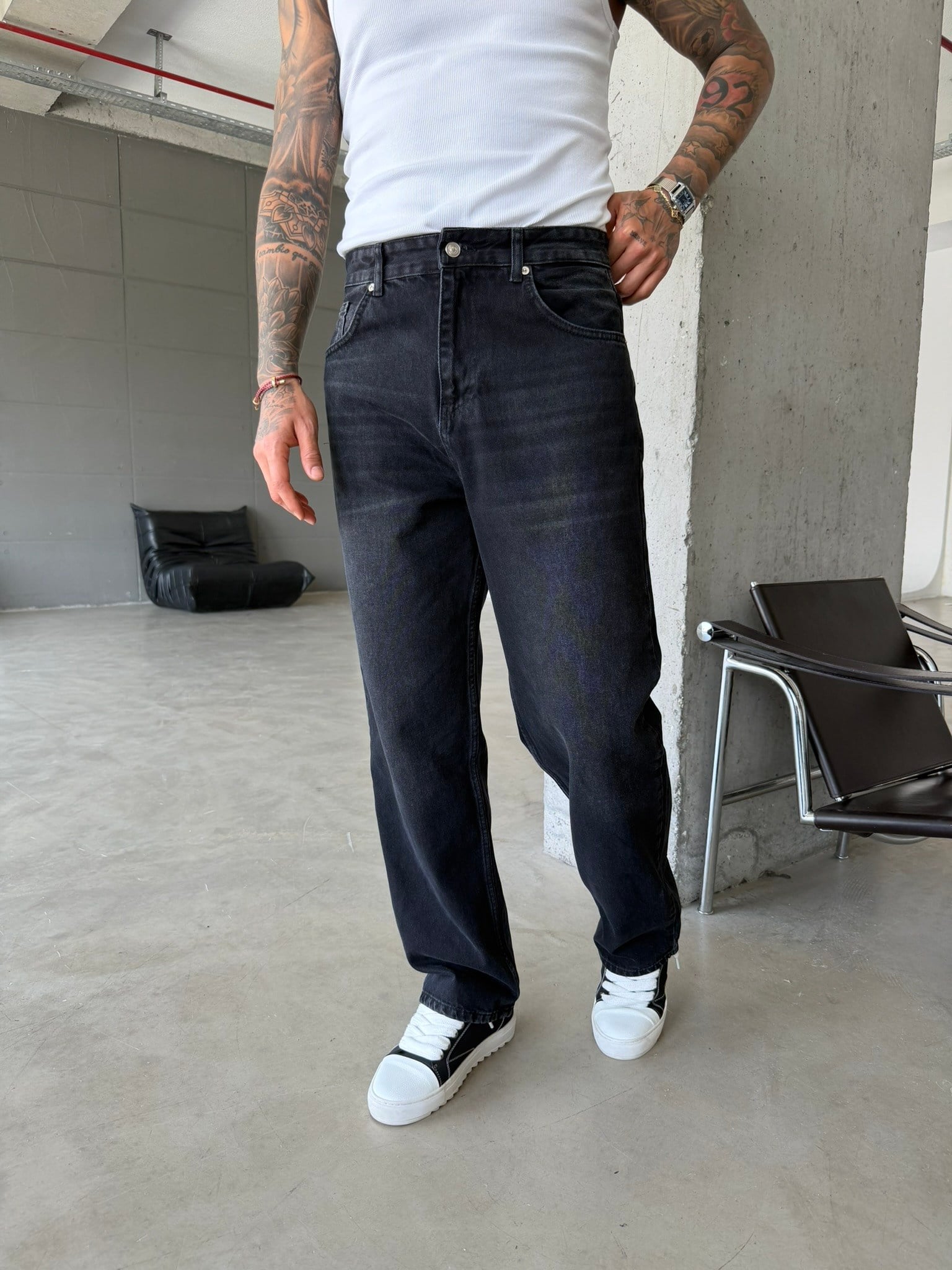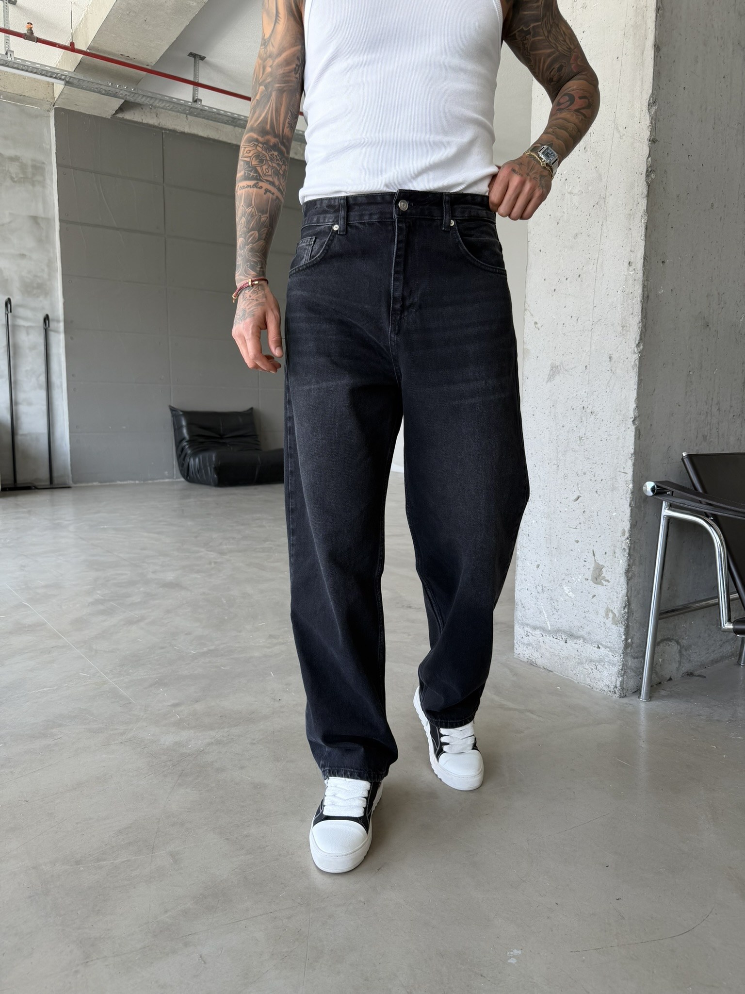 Eskitme Basic Relax Fit Baggy Pantolon - Siyah (PNT.0149-Siyah-29)