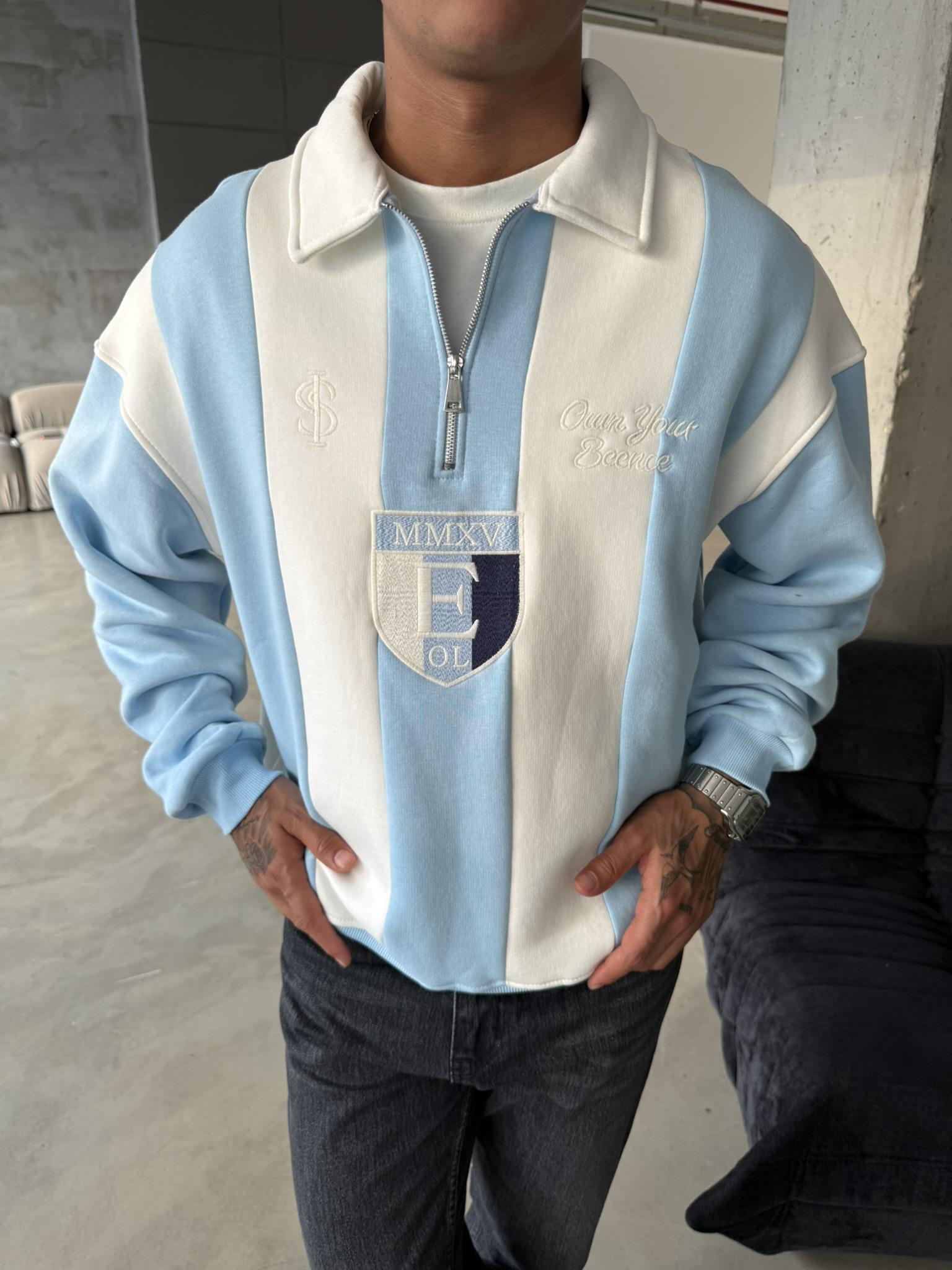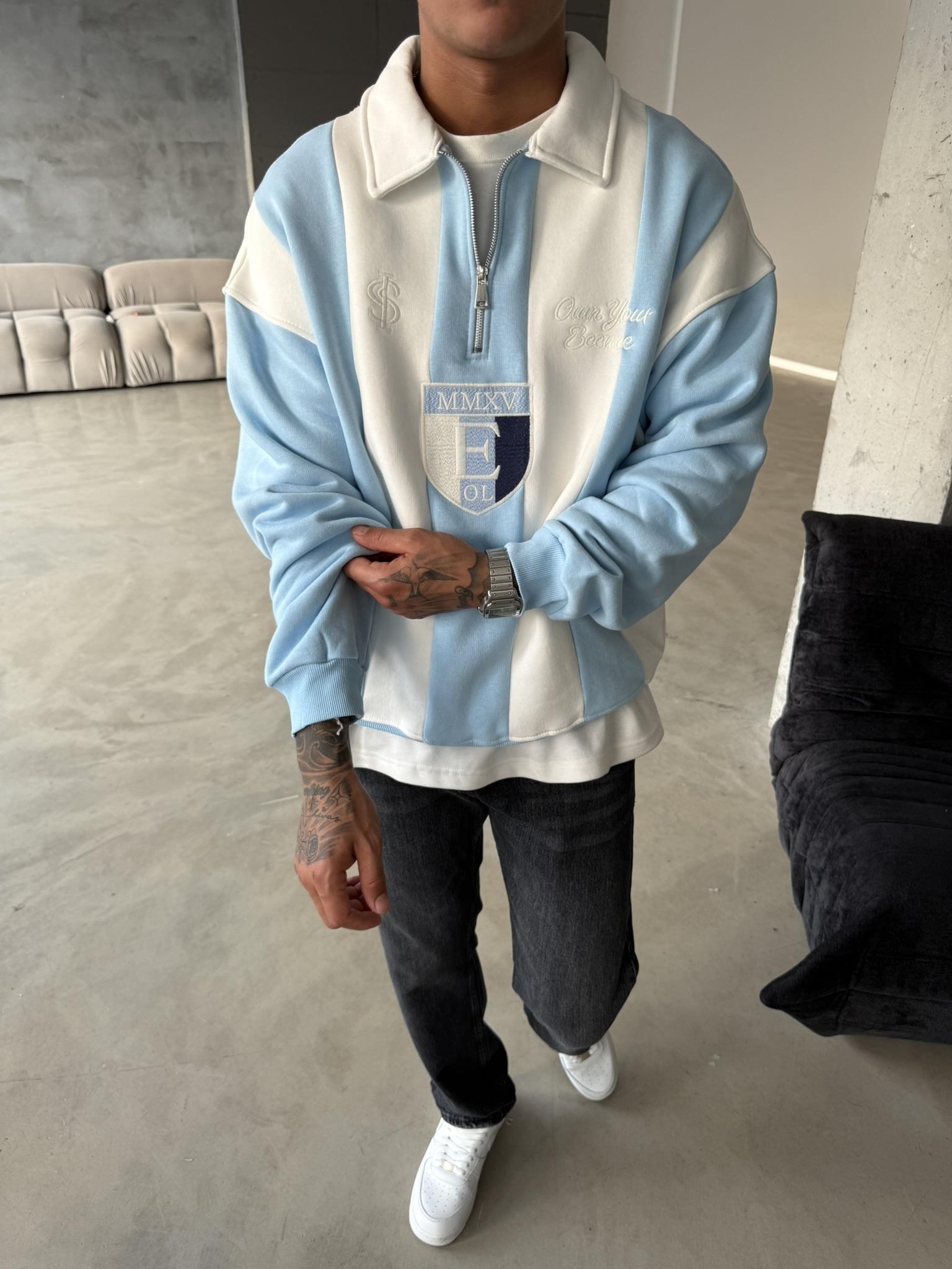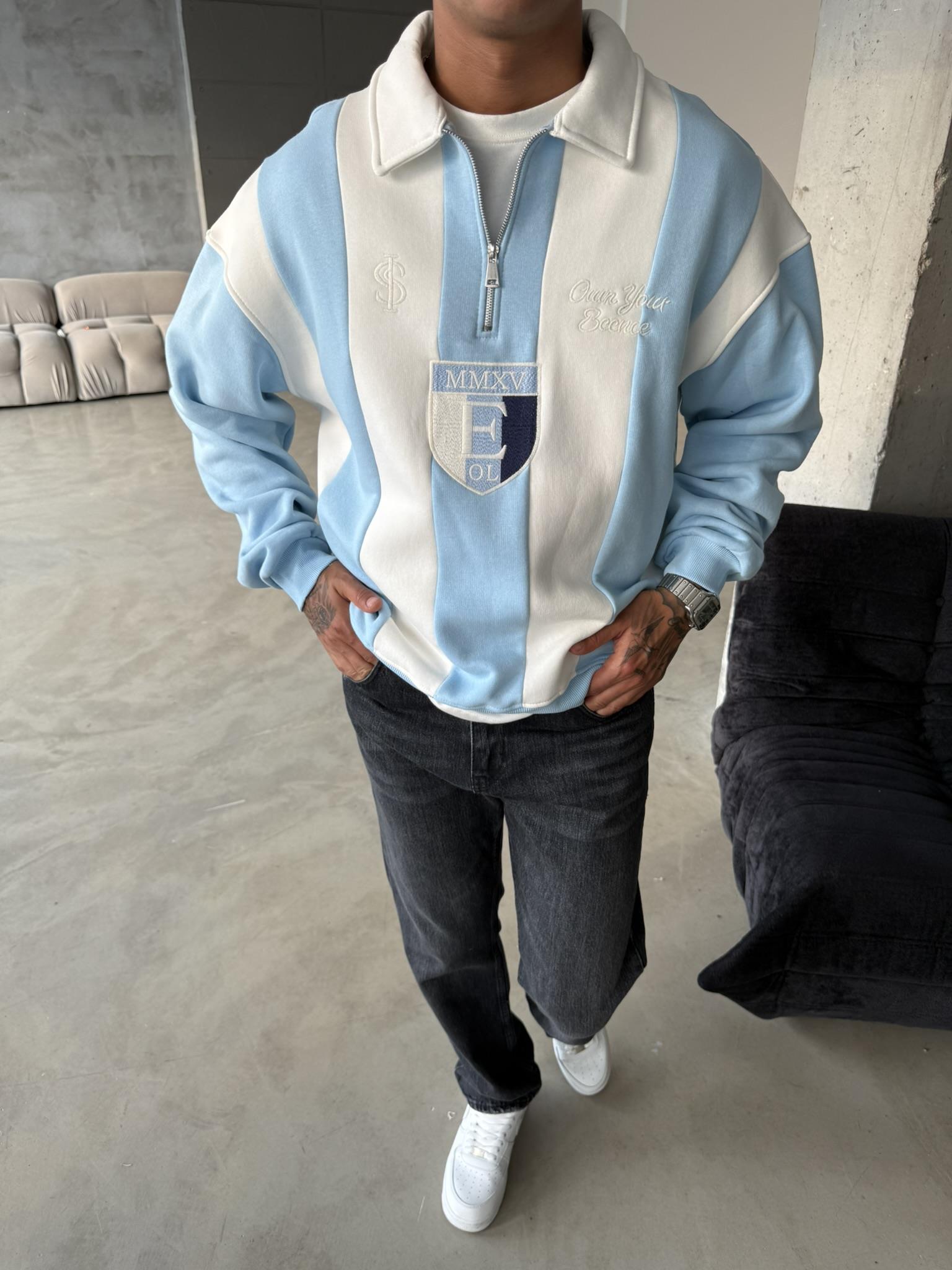 Essence Cizgili Yarım Fermuar Sweat - Bebe Mavi (SWT.0046-Bebe Mavi-S)