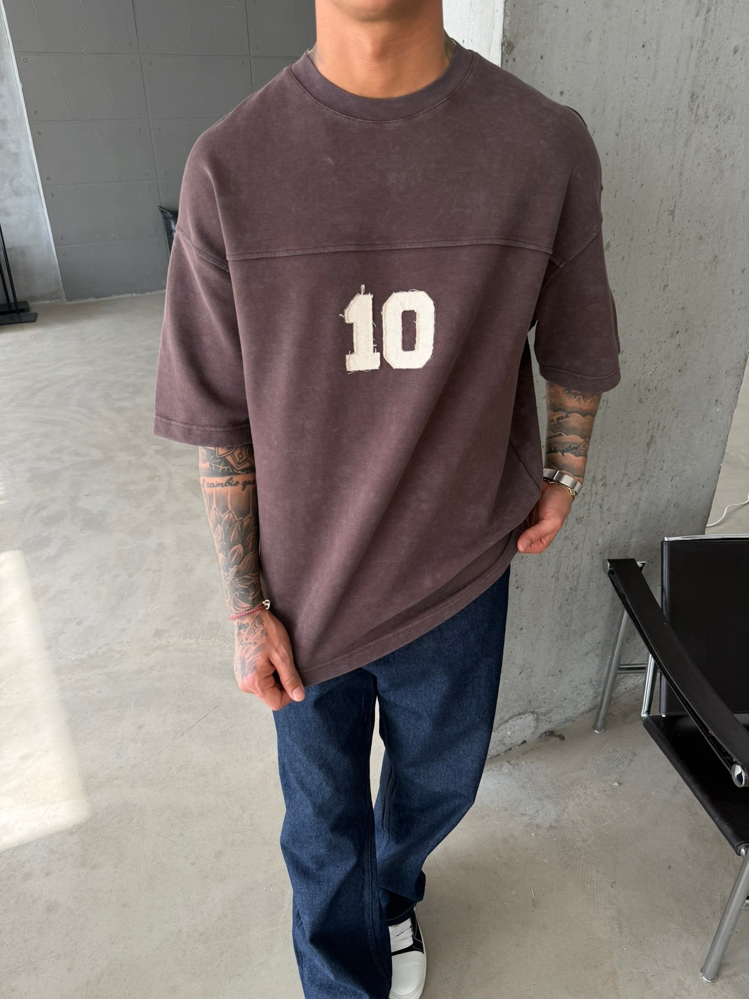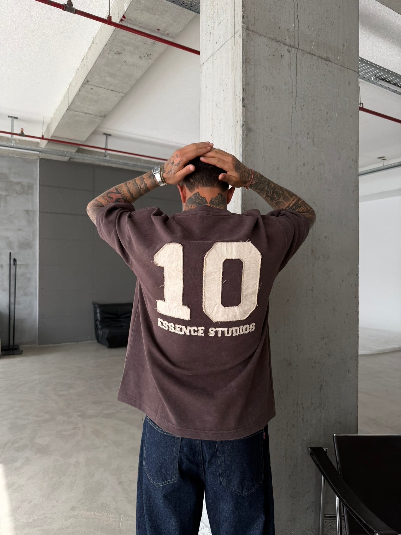 Essence Studio 10 Nakışlı Premium T-Shirt - Kahve (TST.0187-Kahve-S)