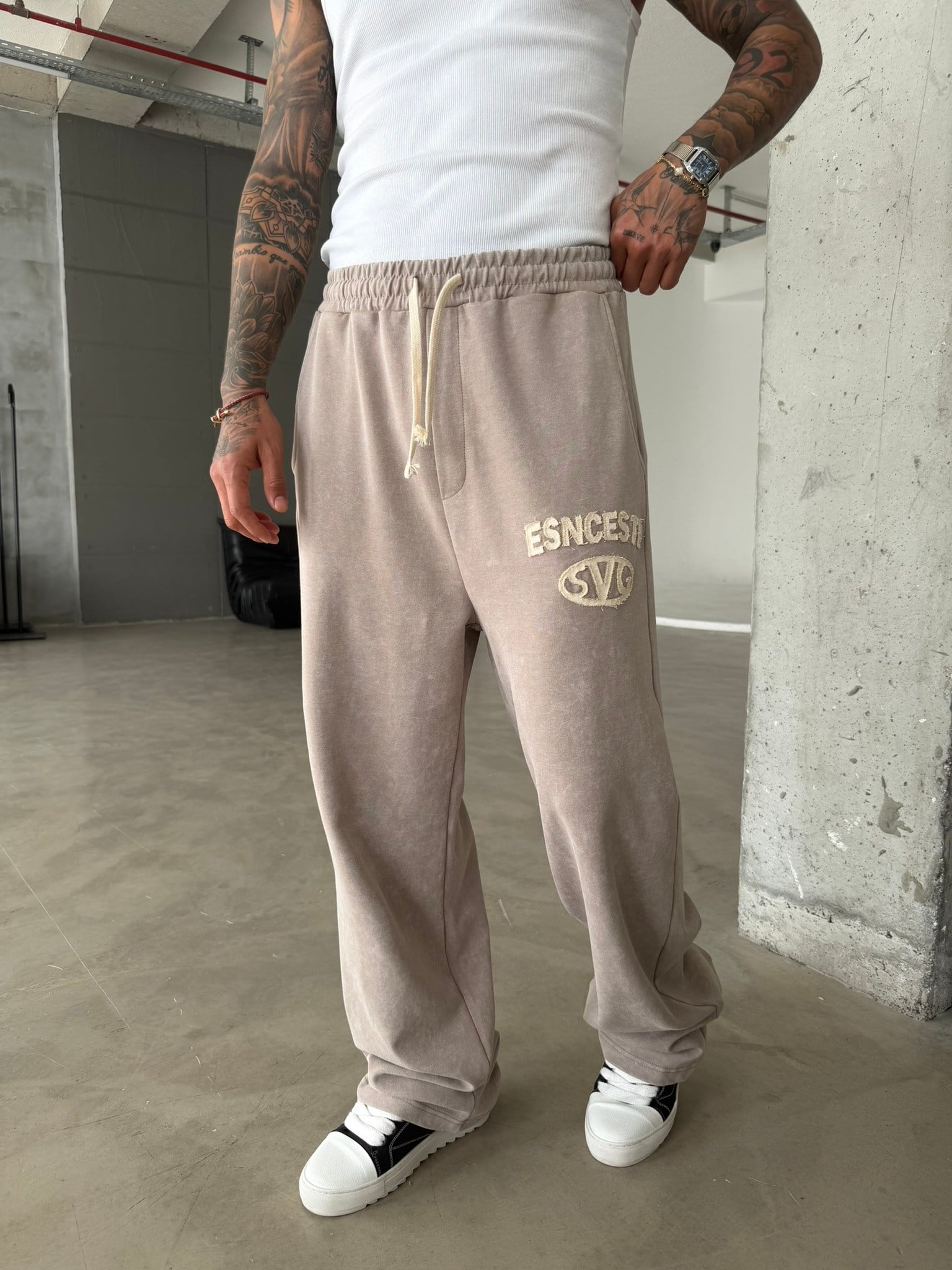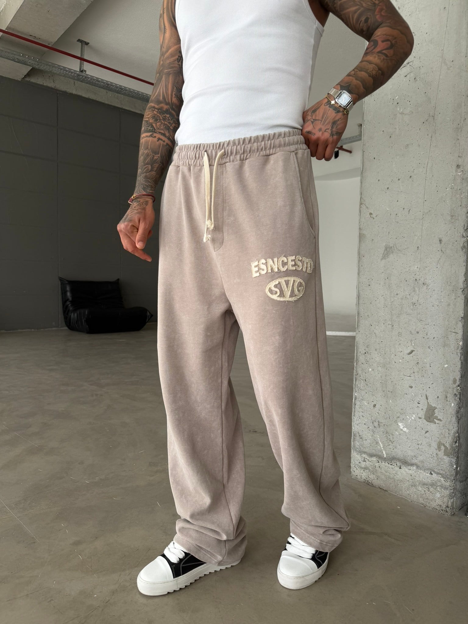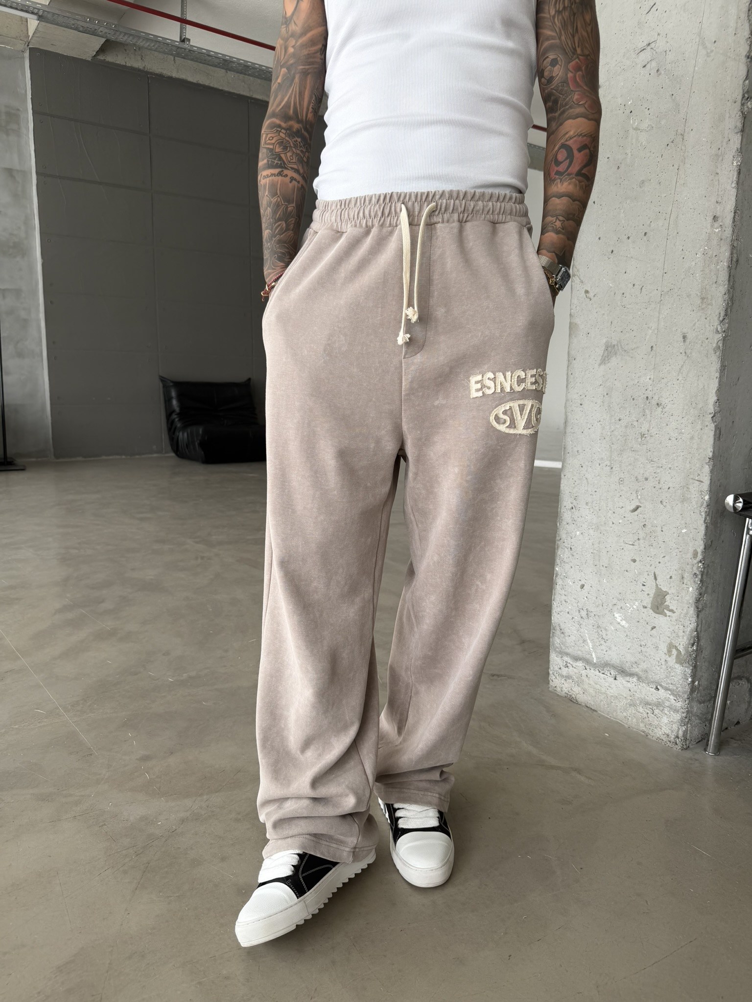 Essence Yıkamalı Premium Nakışlı Eşofman - Bej (EŞF.0071-Bej-S)