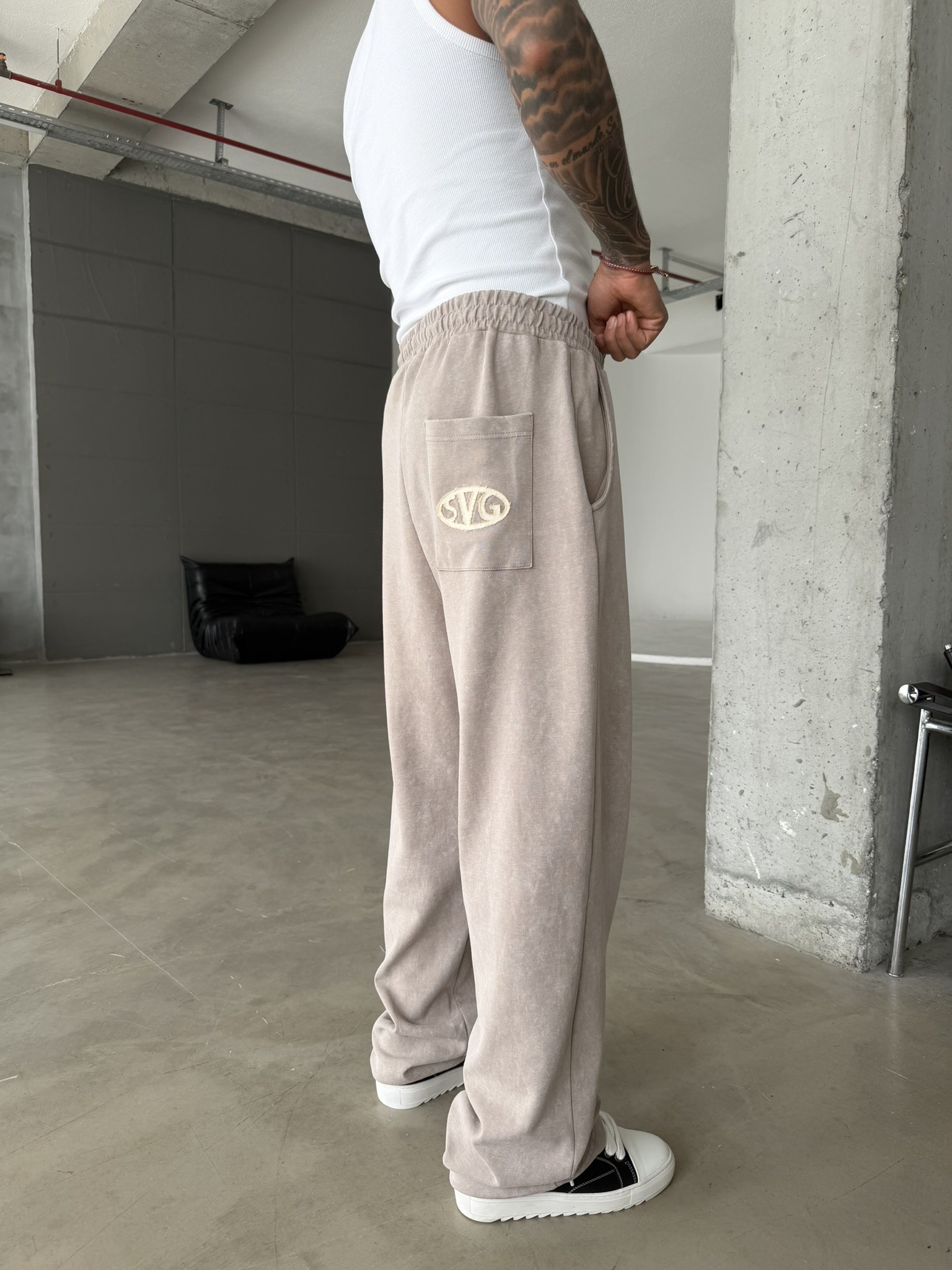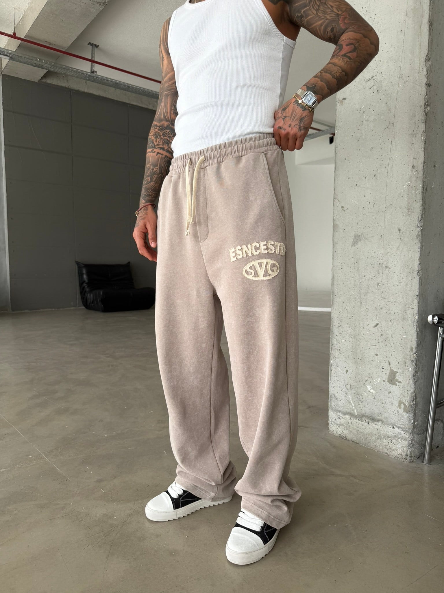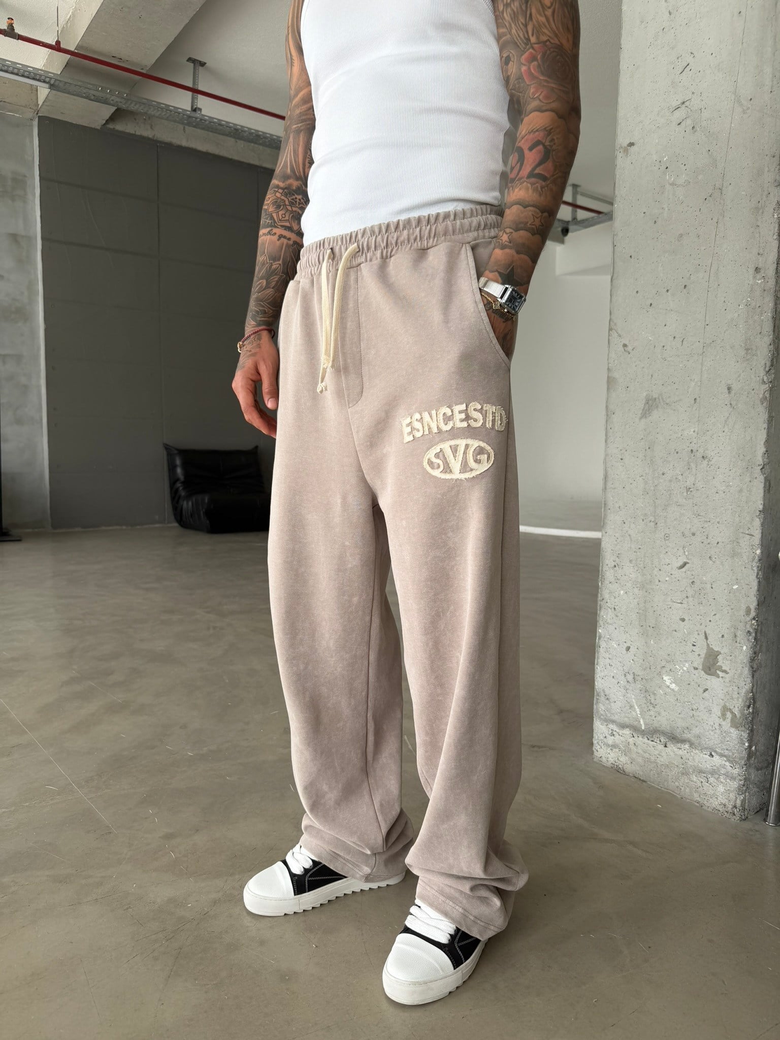 Essence Yıkamalı Premium Nakışlı Eşofman - Bej (EŞF.0071-Bej-S)