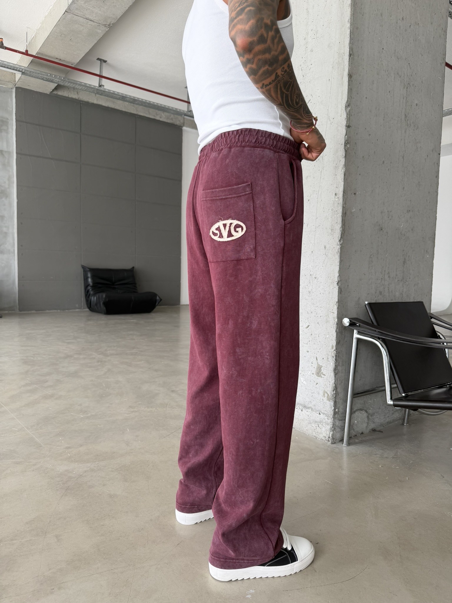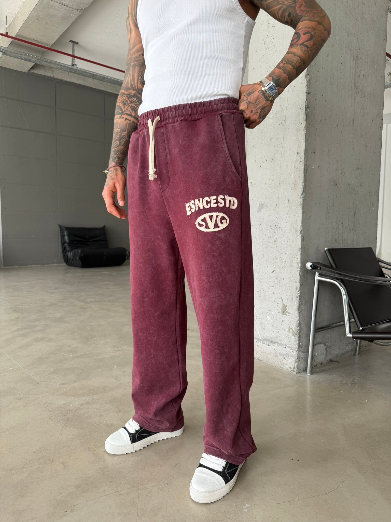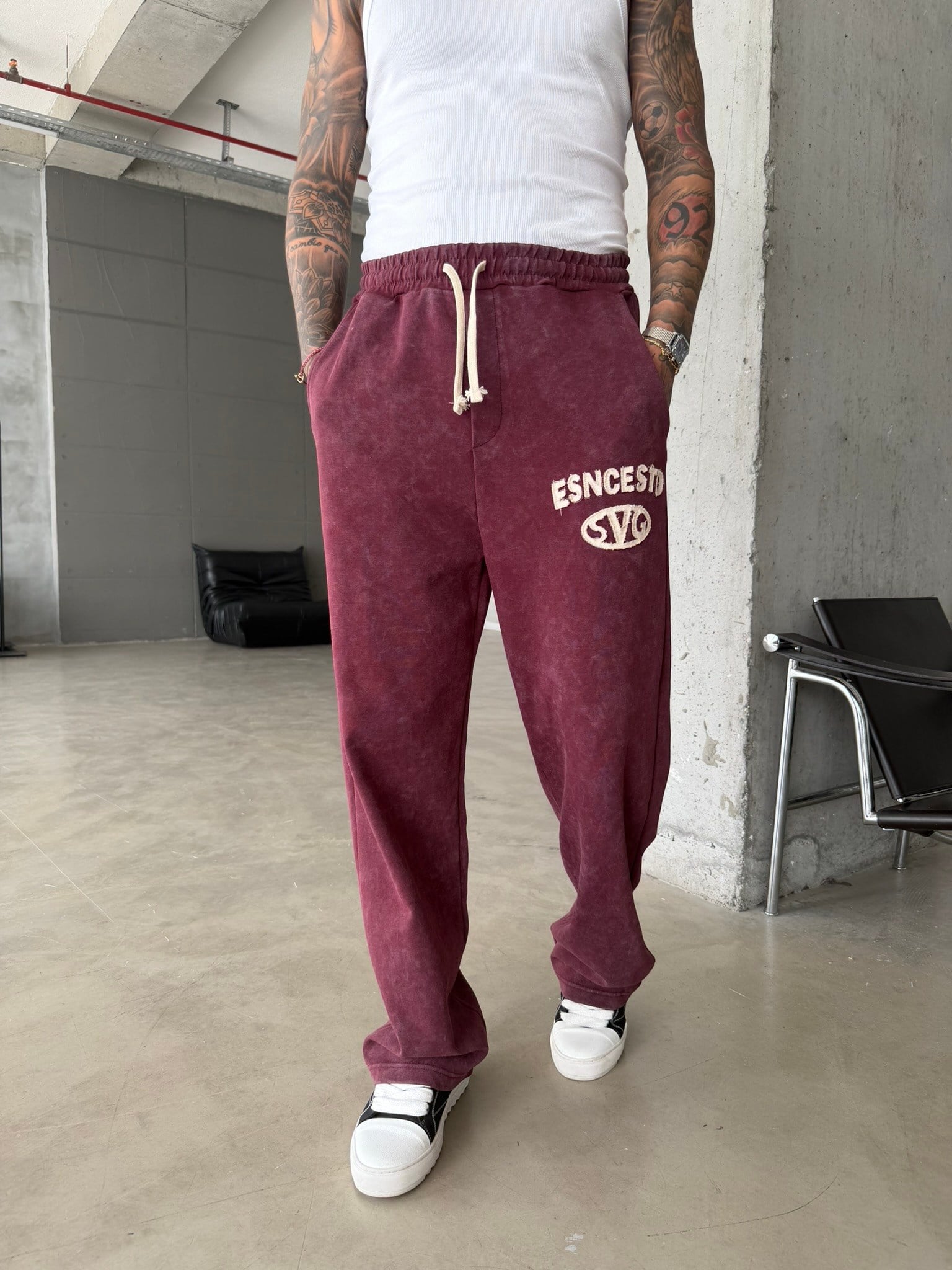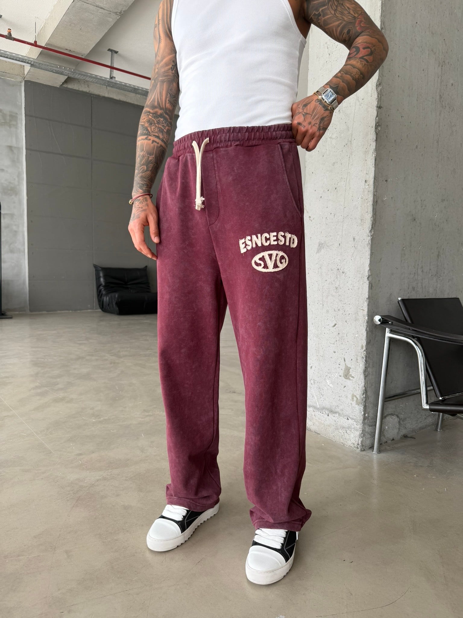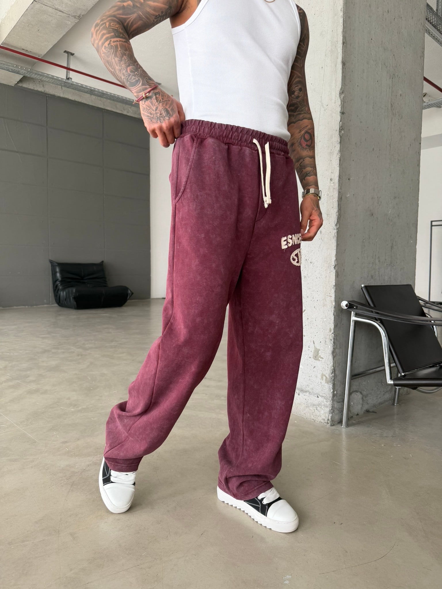 Essence Yıkamalı Premium Nakışlı Eşofman - Bordo (EŞF.0071-Bordo-S)