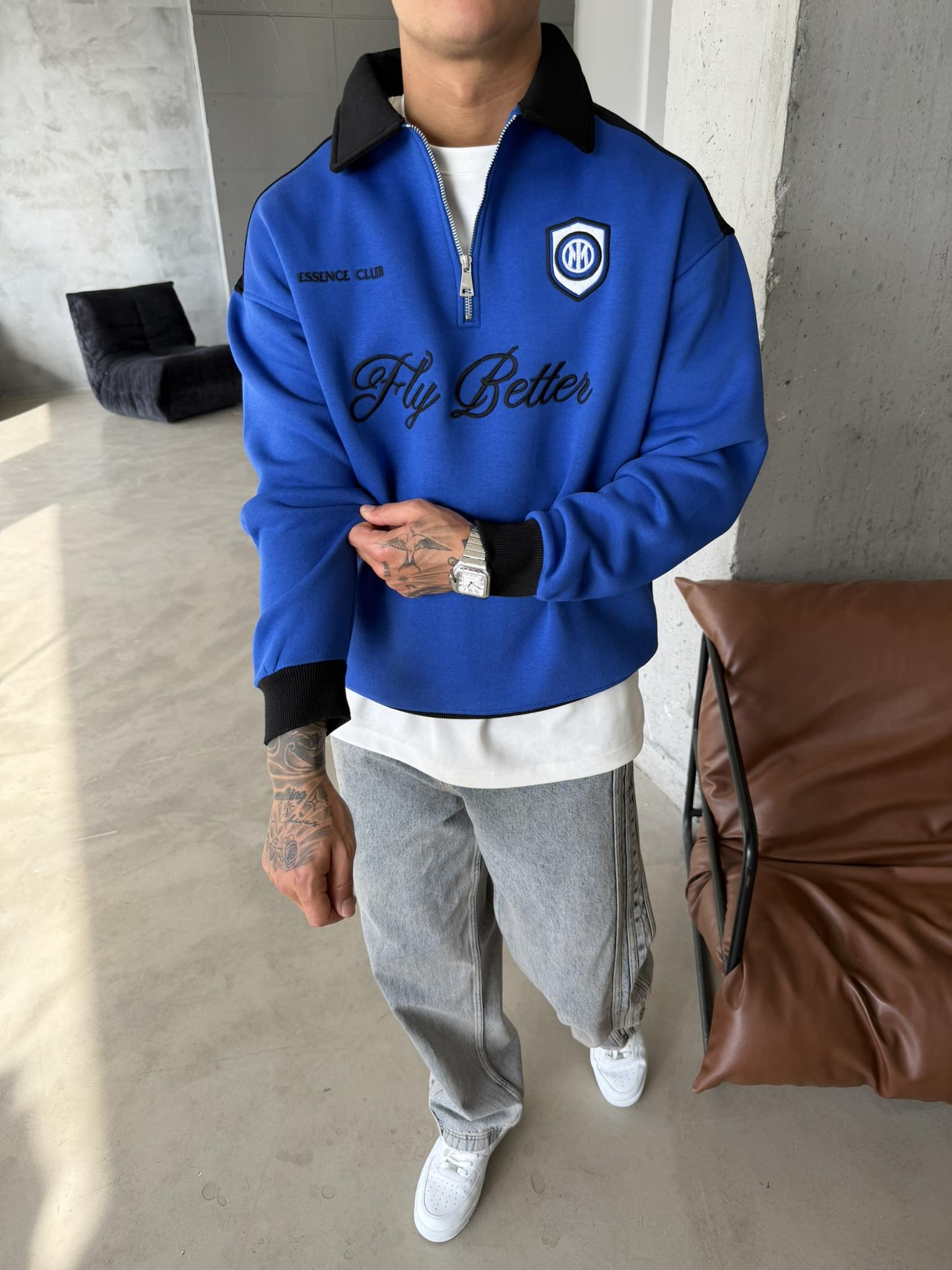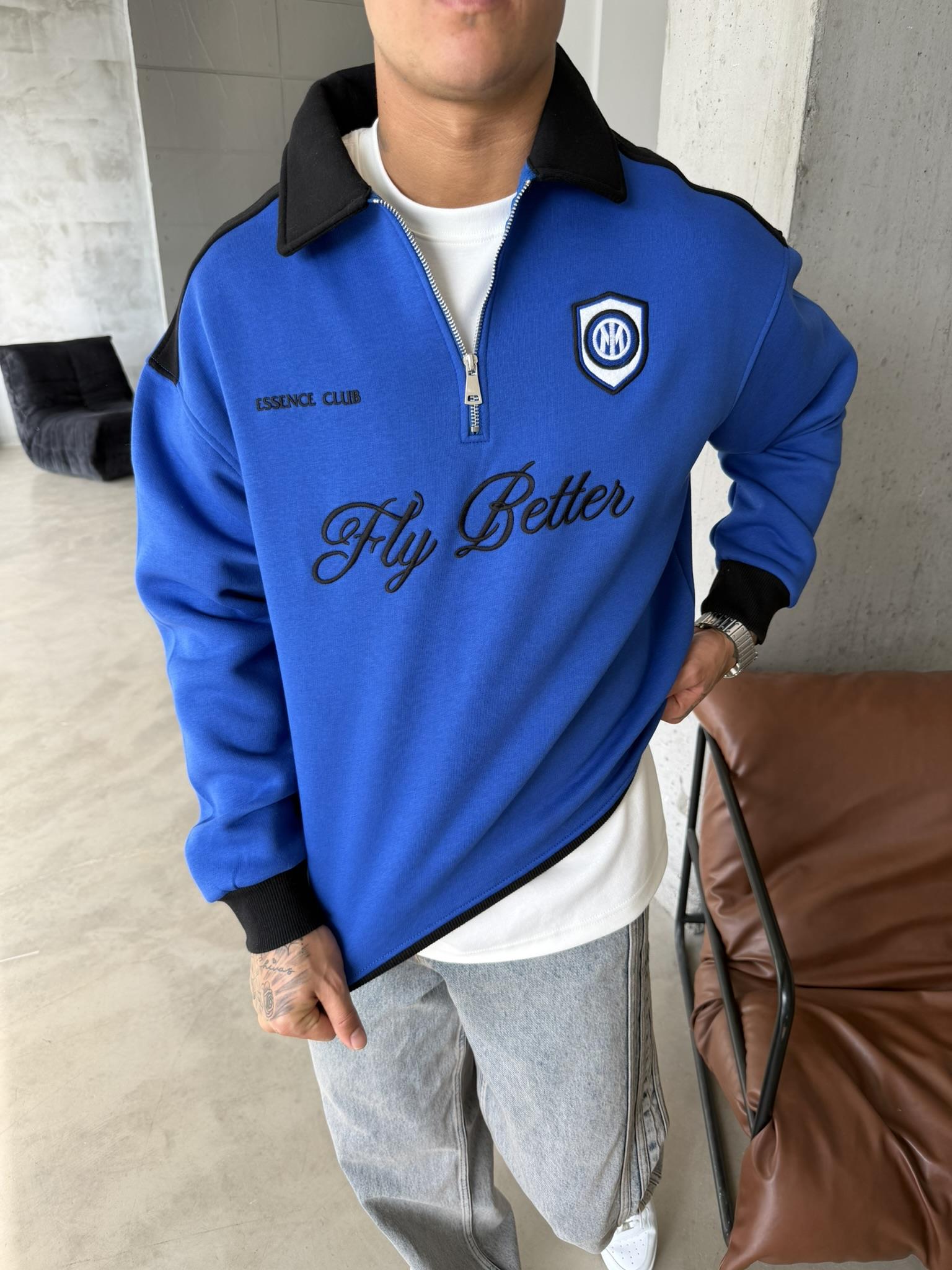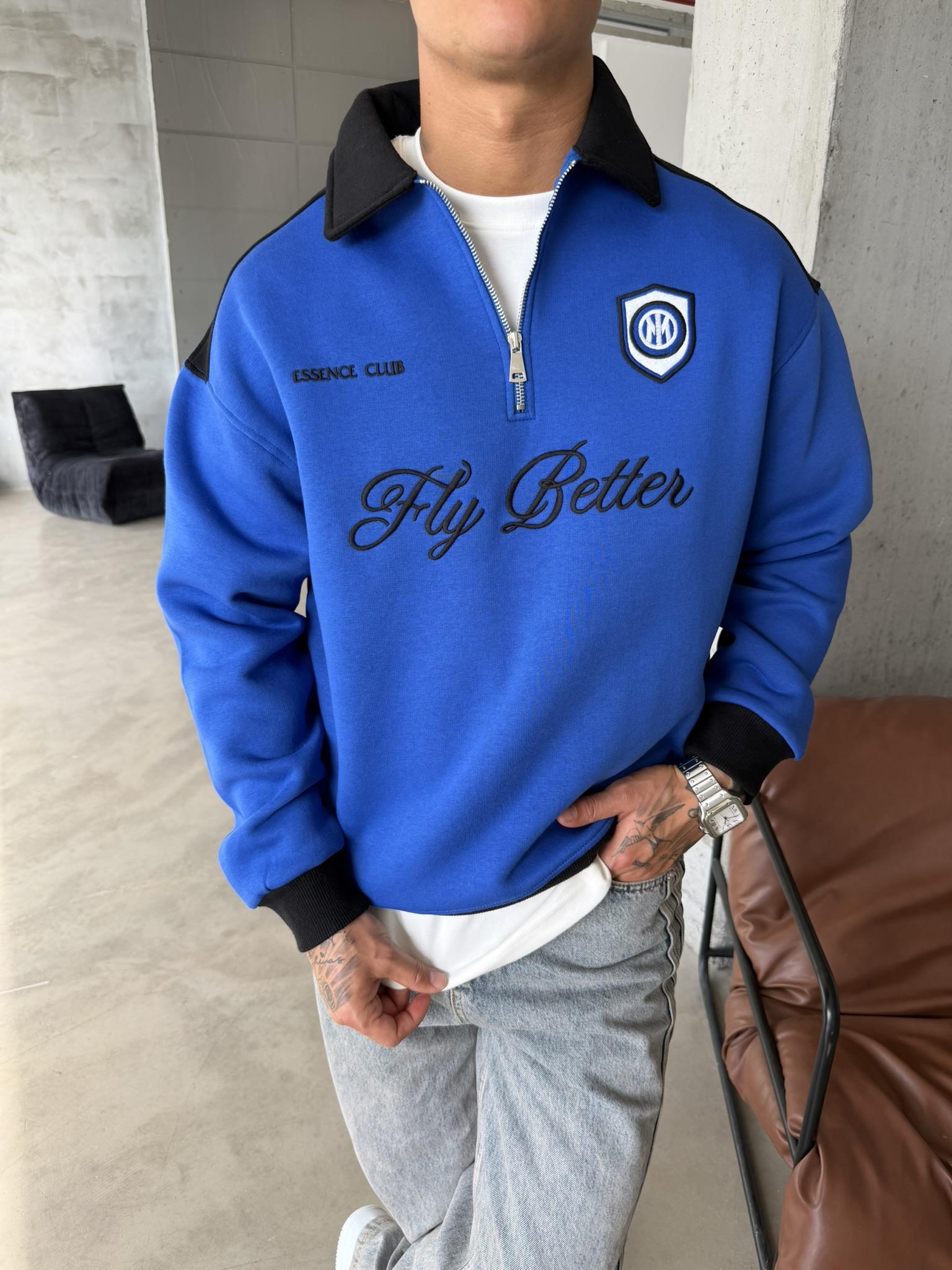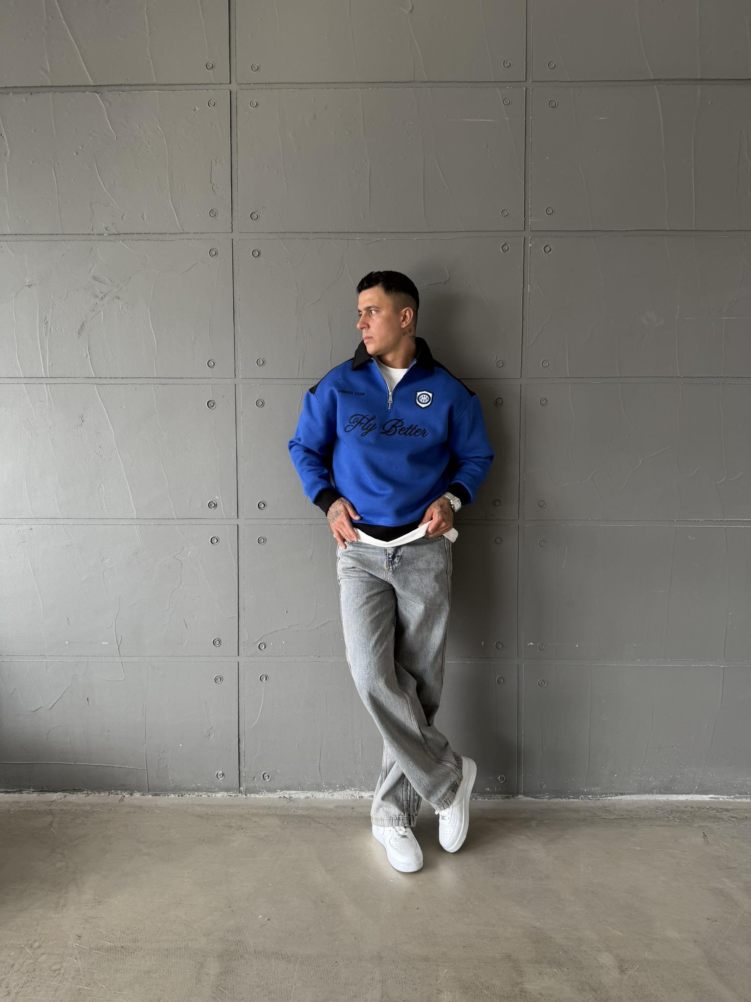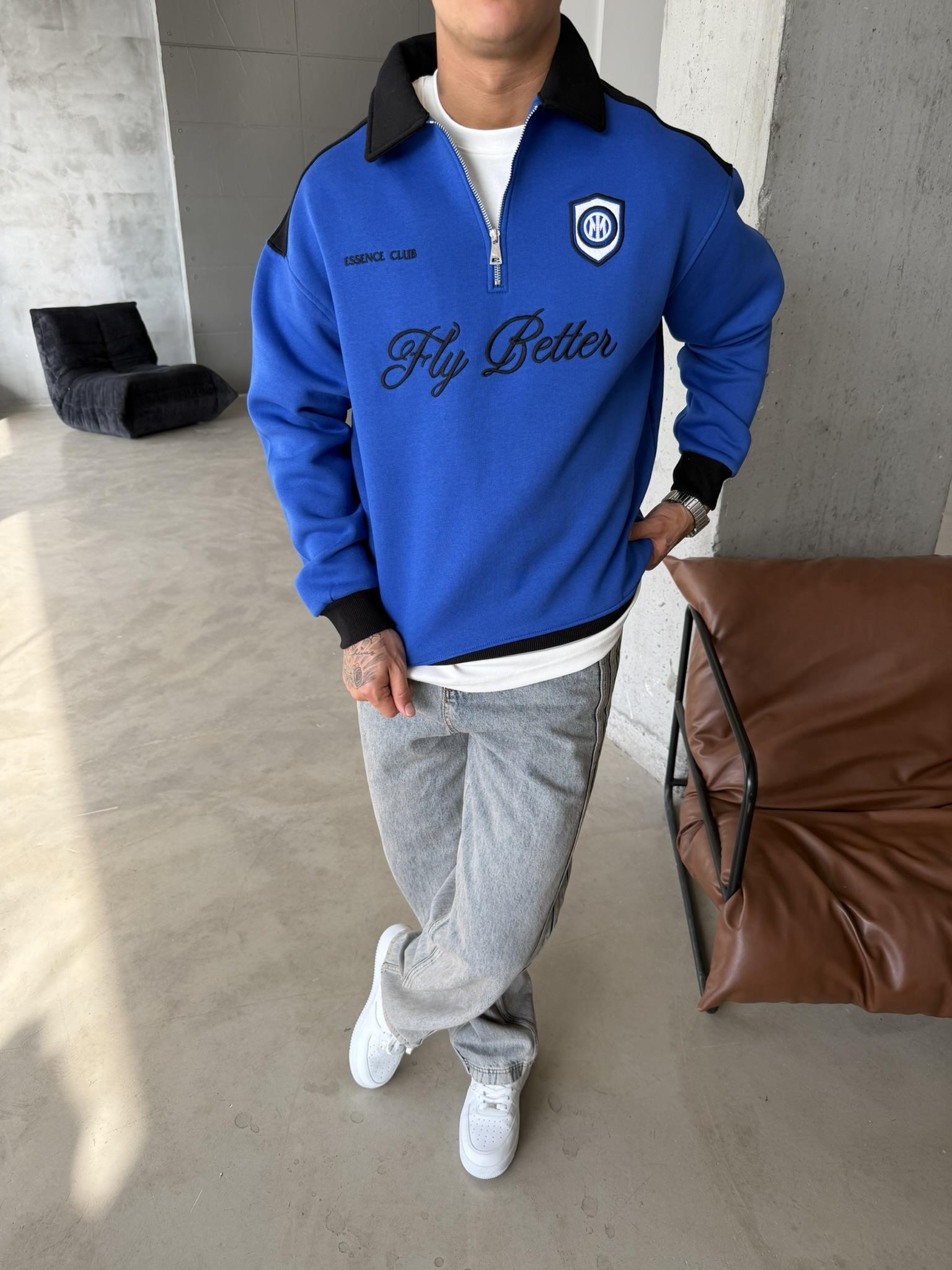 Fly Better Yarım Fermuar Sweat - Mavi (SWT.0059-Mavi-S)