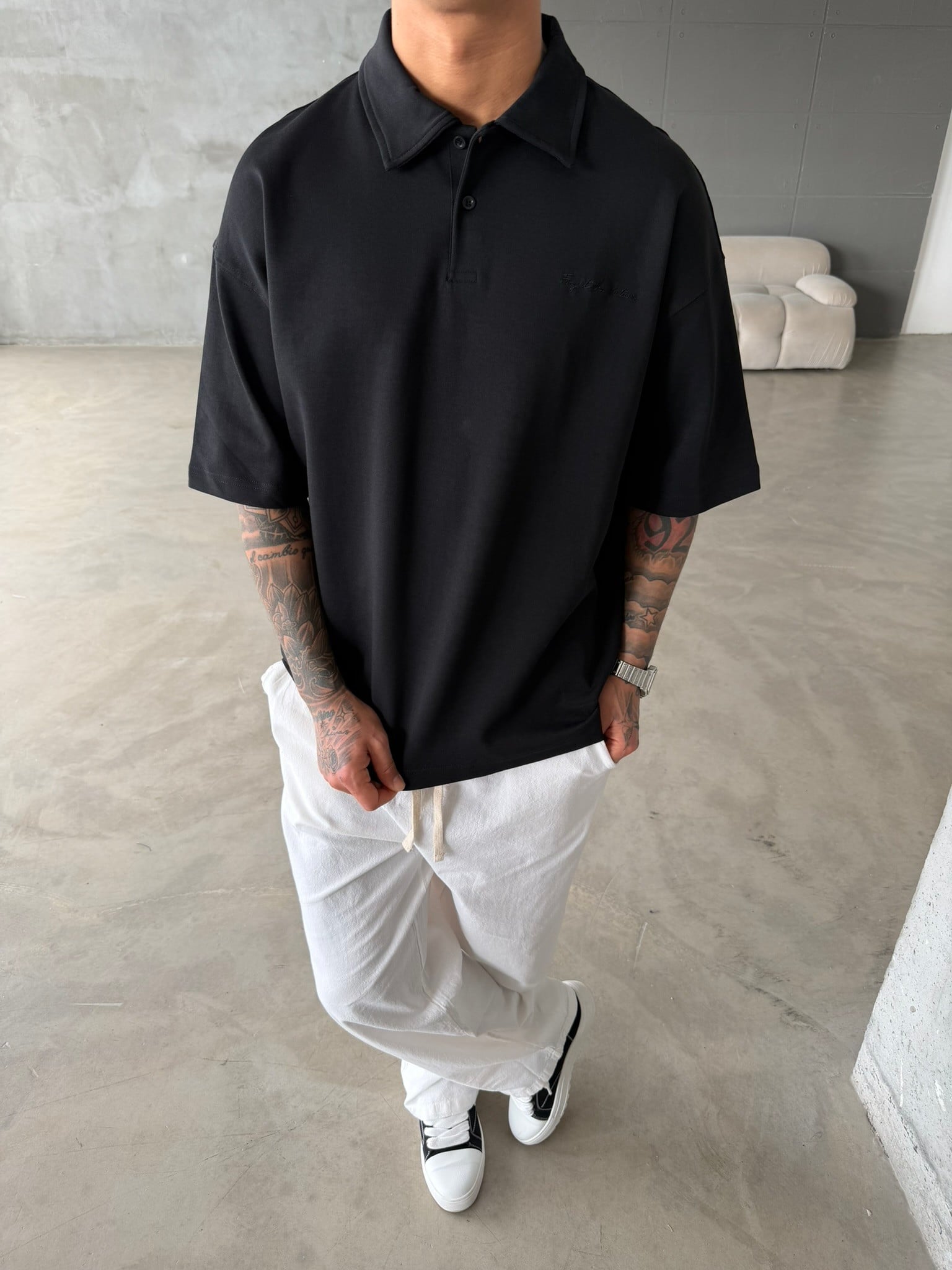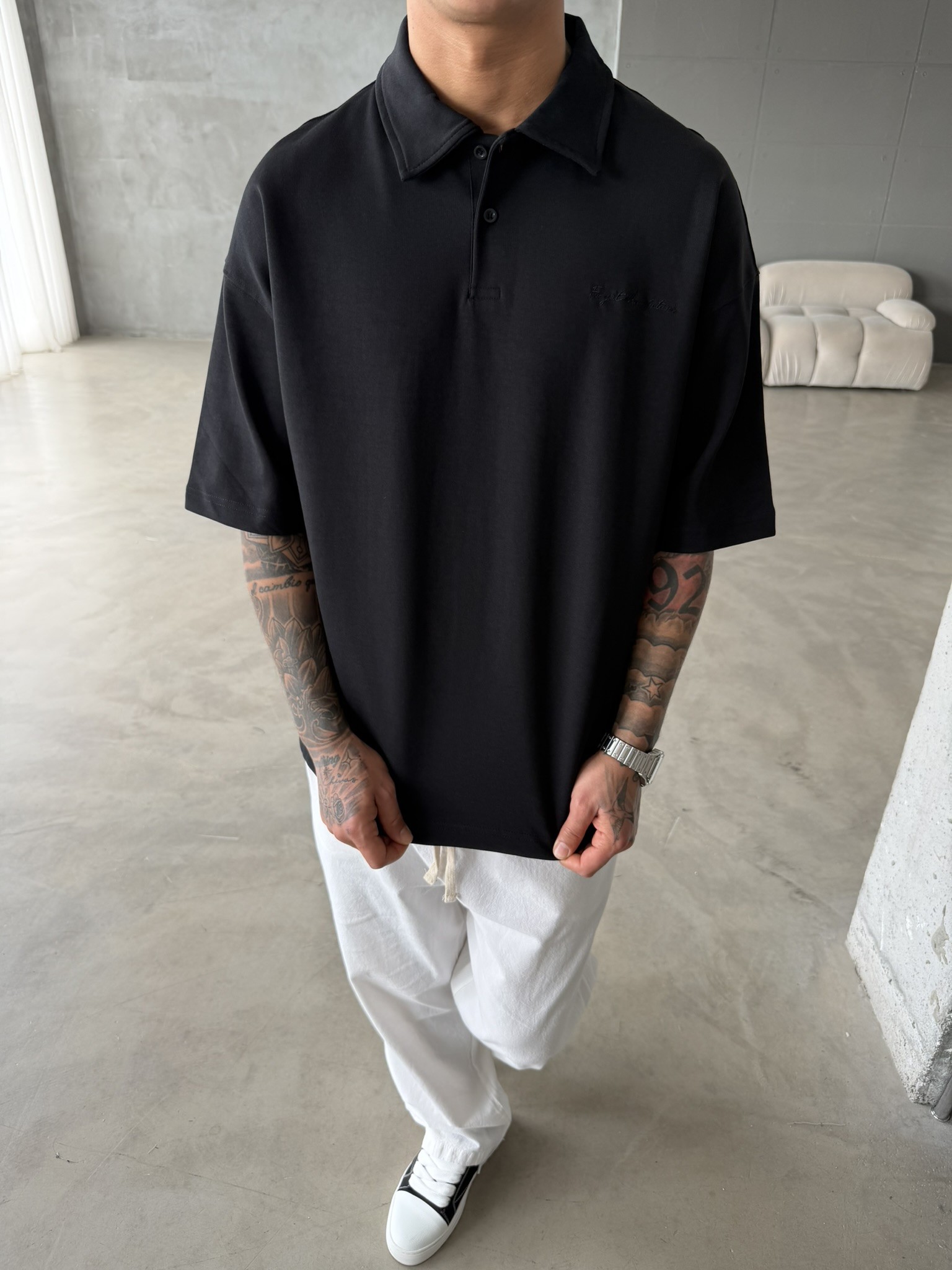 Forget The Future Nakışlı Basic Polo Yaka - Siyah (TST.0144-Siyah-S)