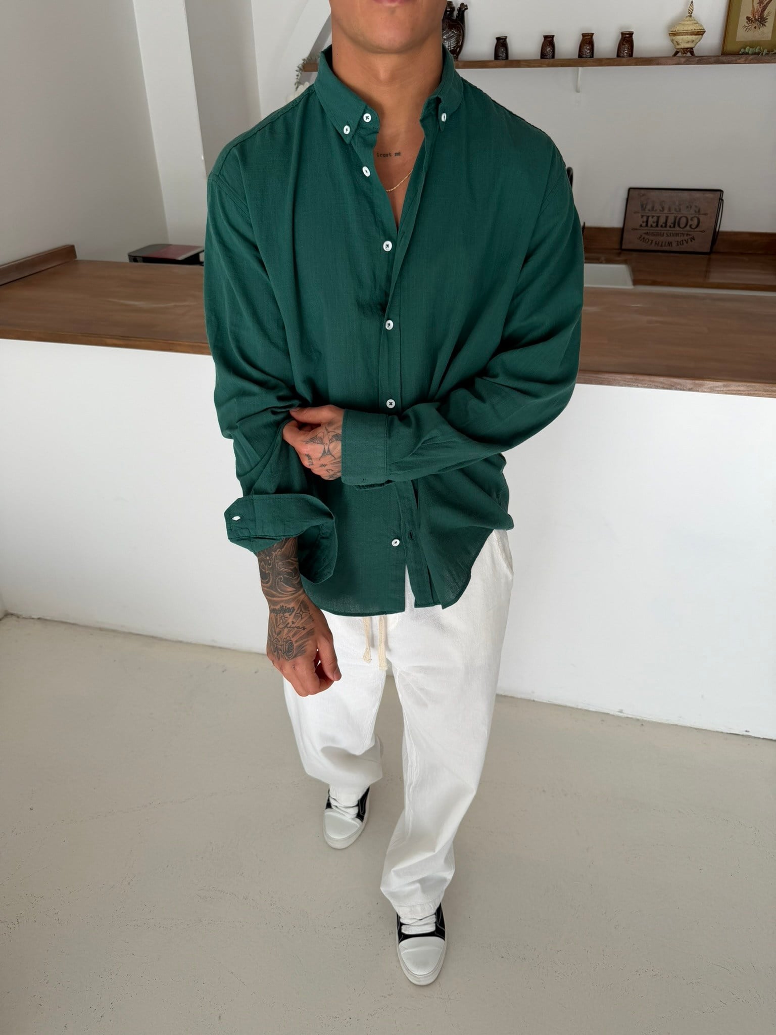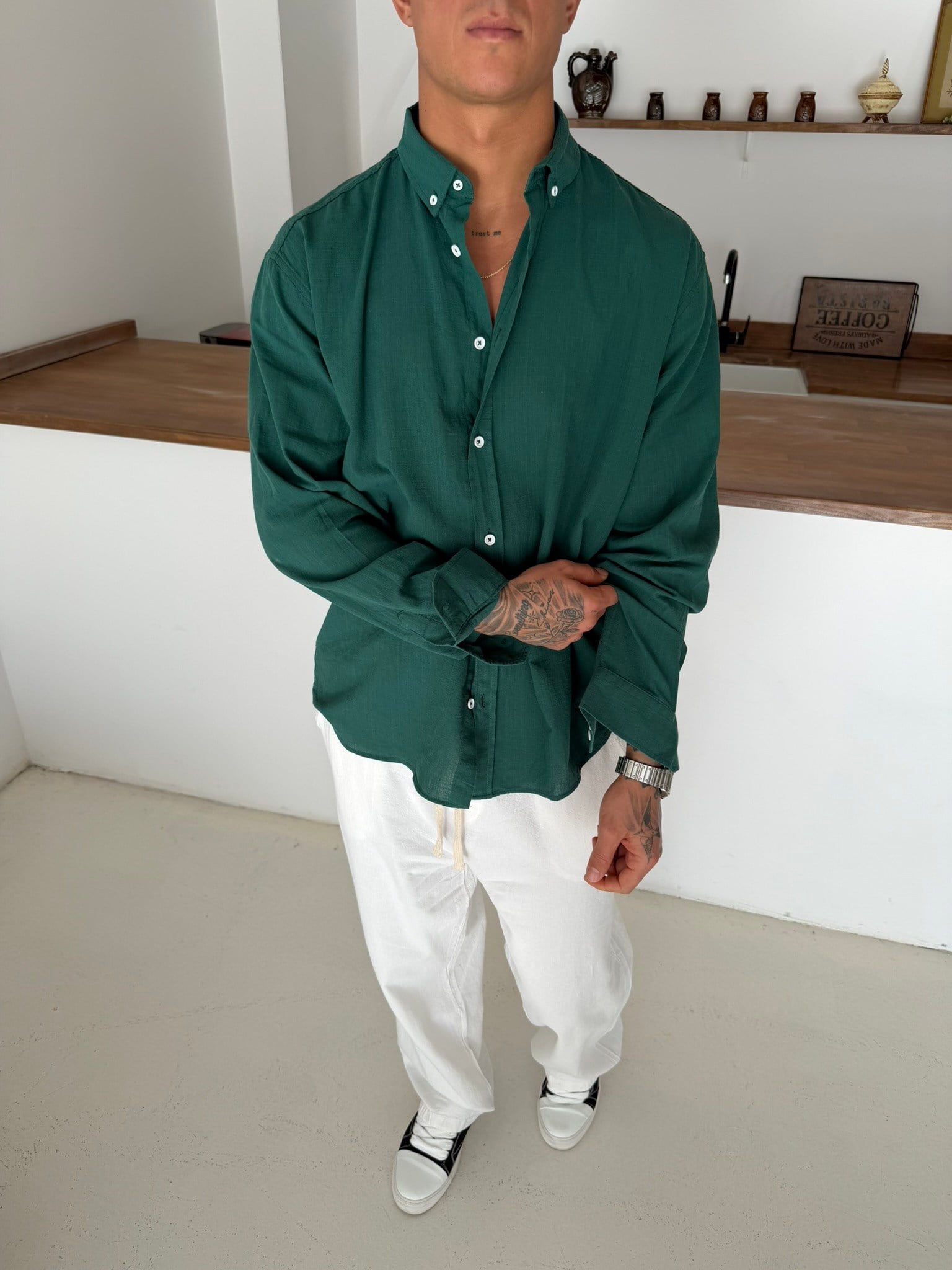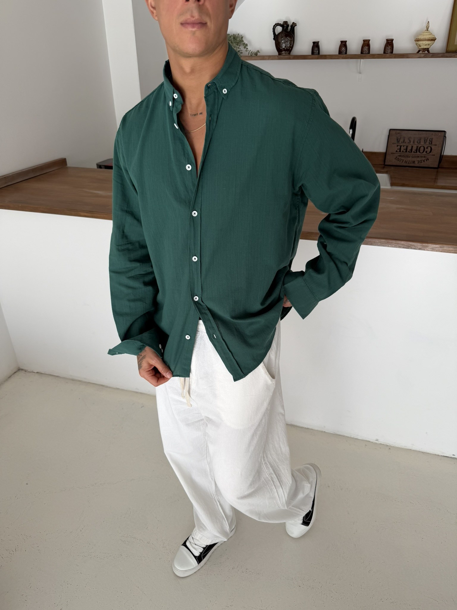 Fresh Keten Gömlek - Zümrüt (GML.0043-Zümrüt-S)