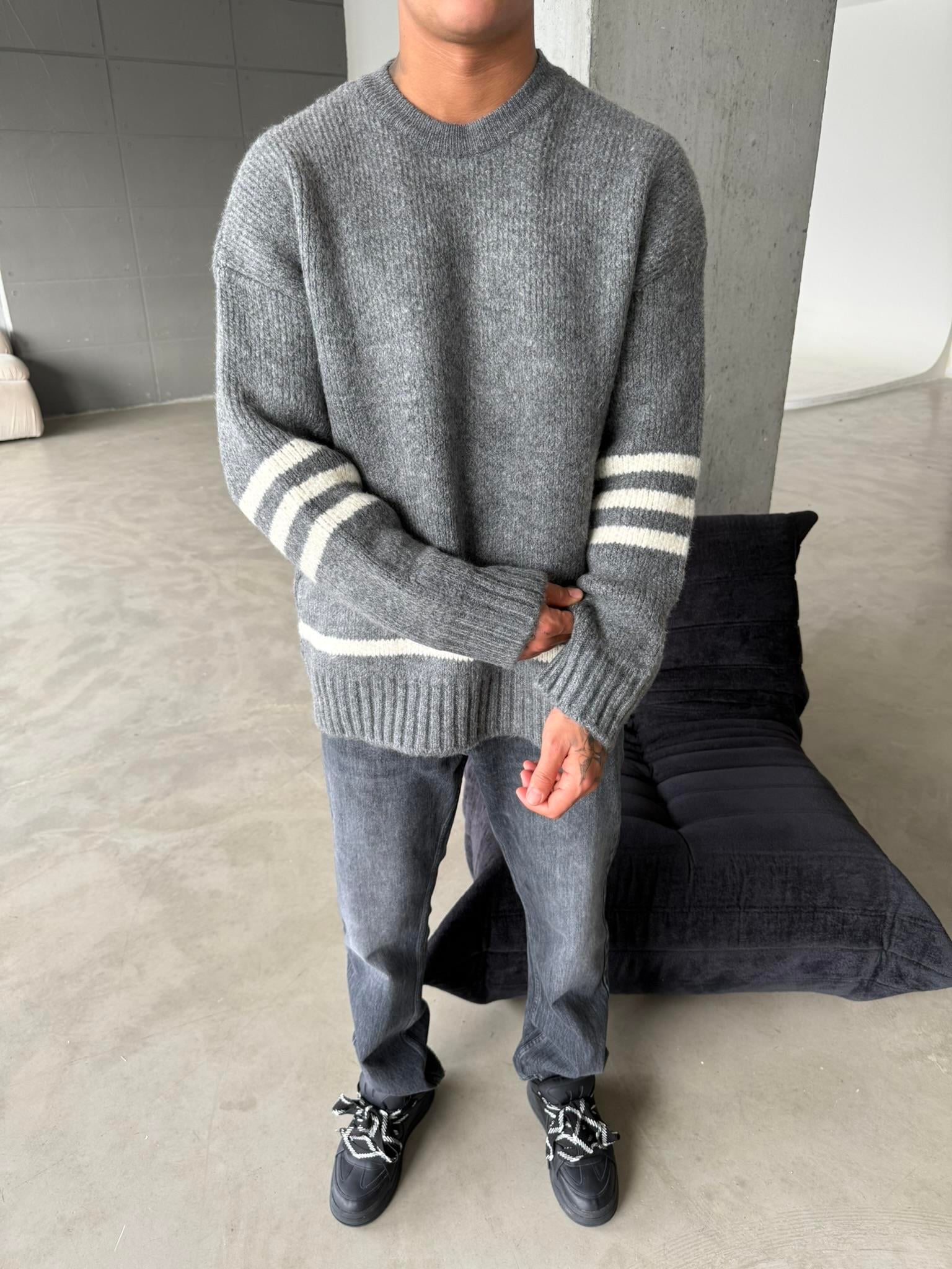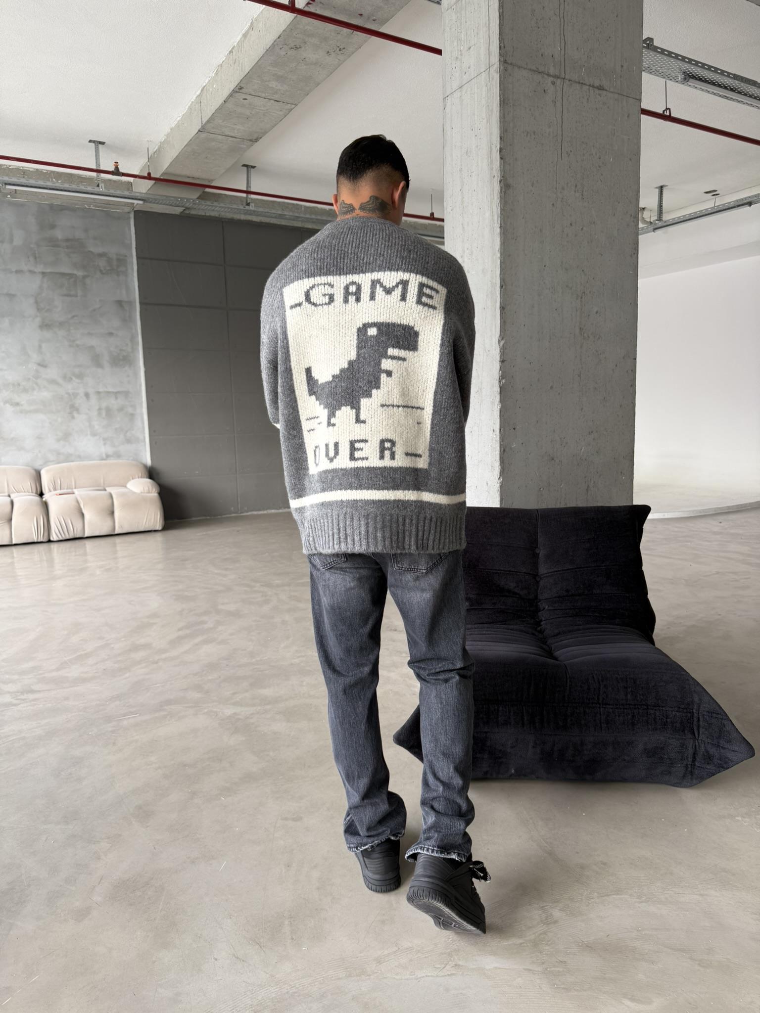 Gameover Örme Triko Kazak - Gri (SWT.0050-Gri-S)