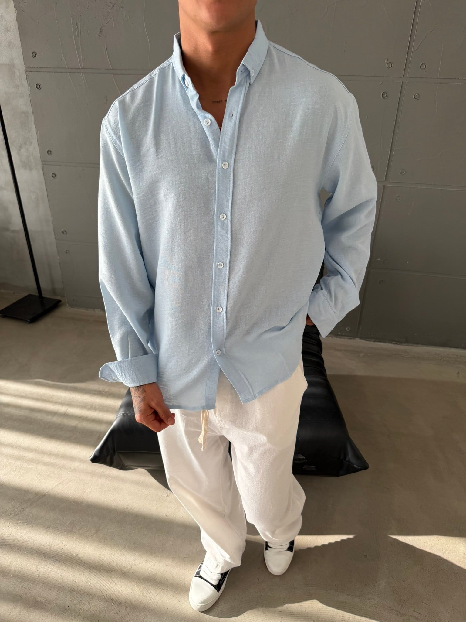 Gobis Basic Keten Gömlek - Bebe Mavi (GML.0044-Bebe Mavi-S)