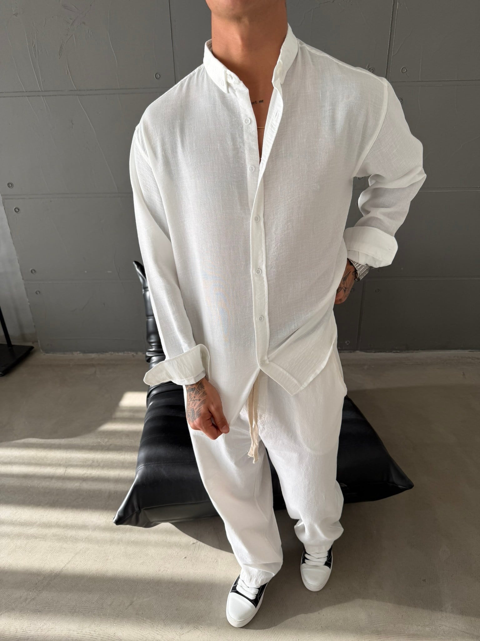 Gobis Basic Keten Gömlek - Beyaz (GML.0044-Beyaz-S)