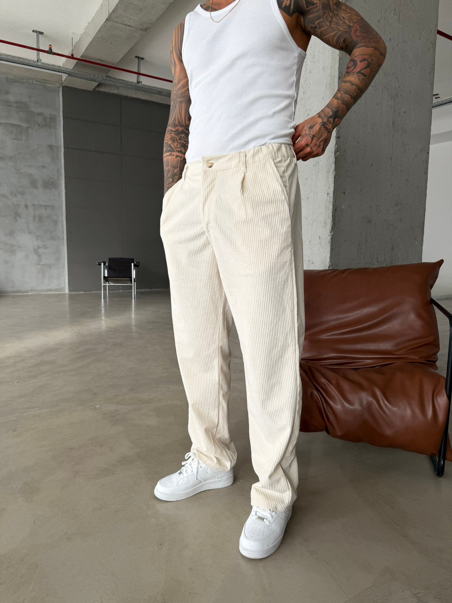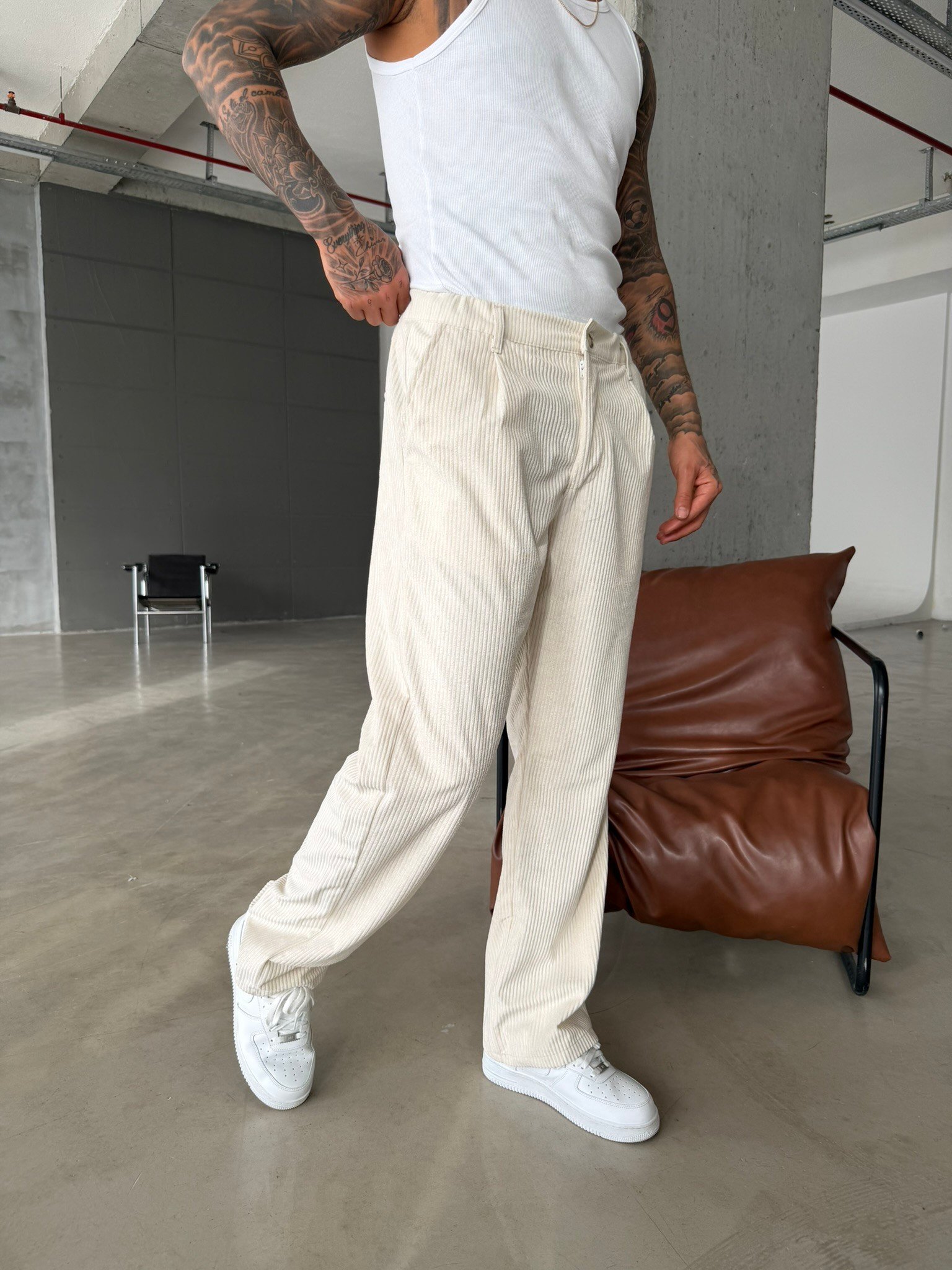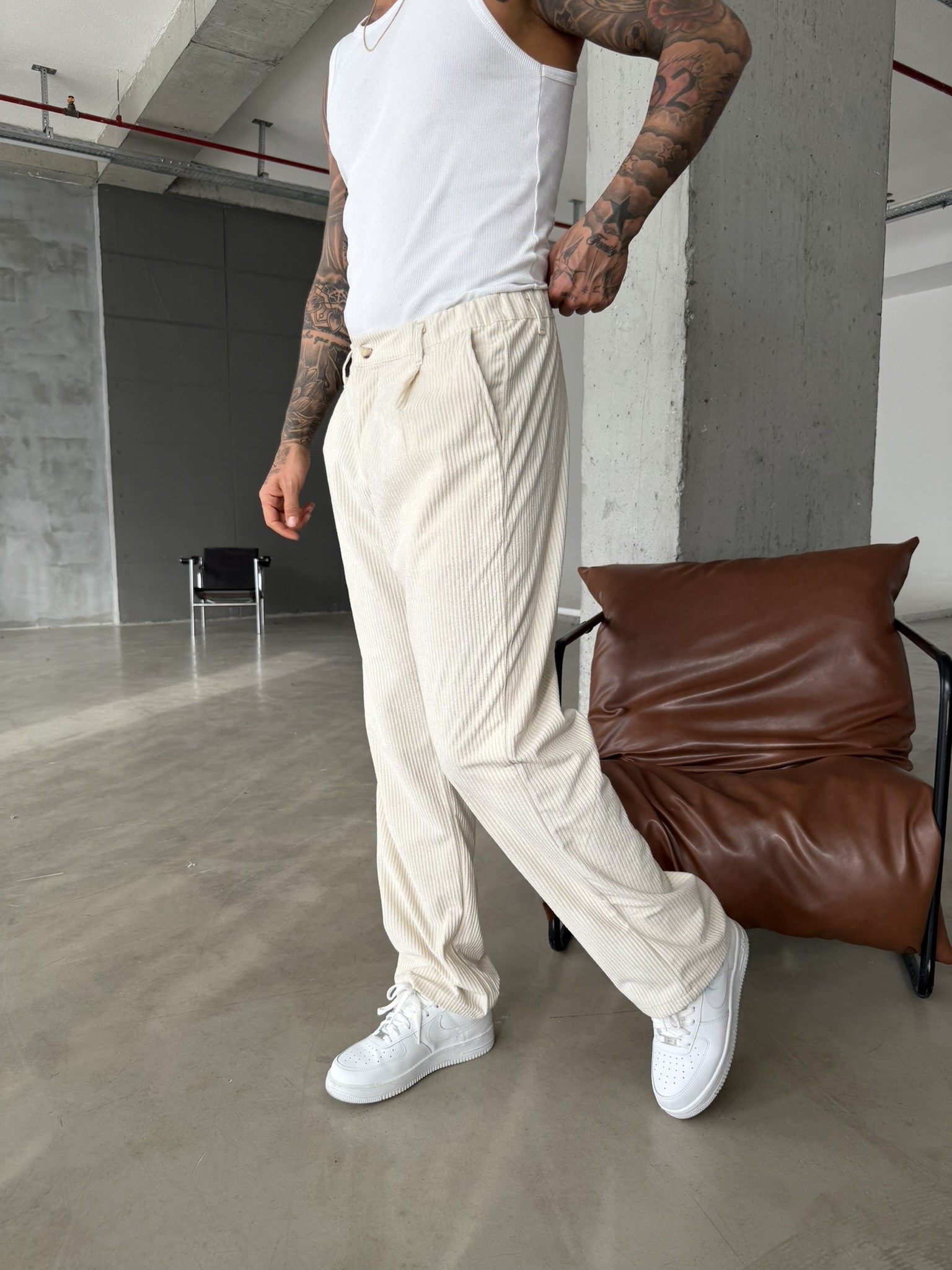 Kadife Basic Baggy Pantolon - Bej (PNT.0097-Bej-S)
