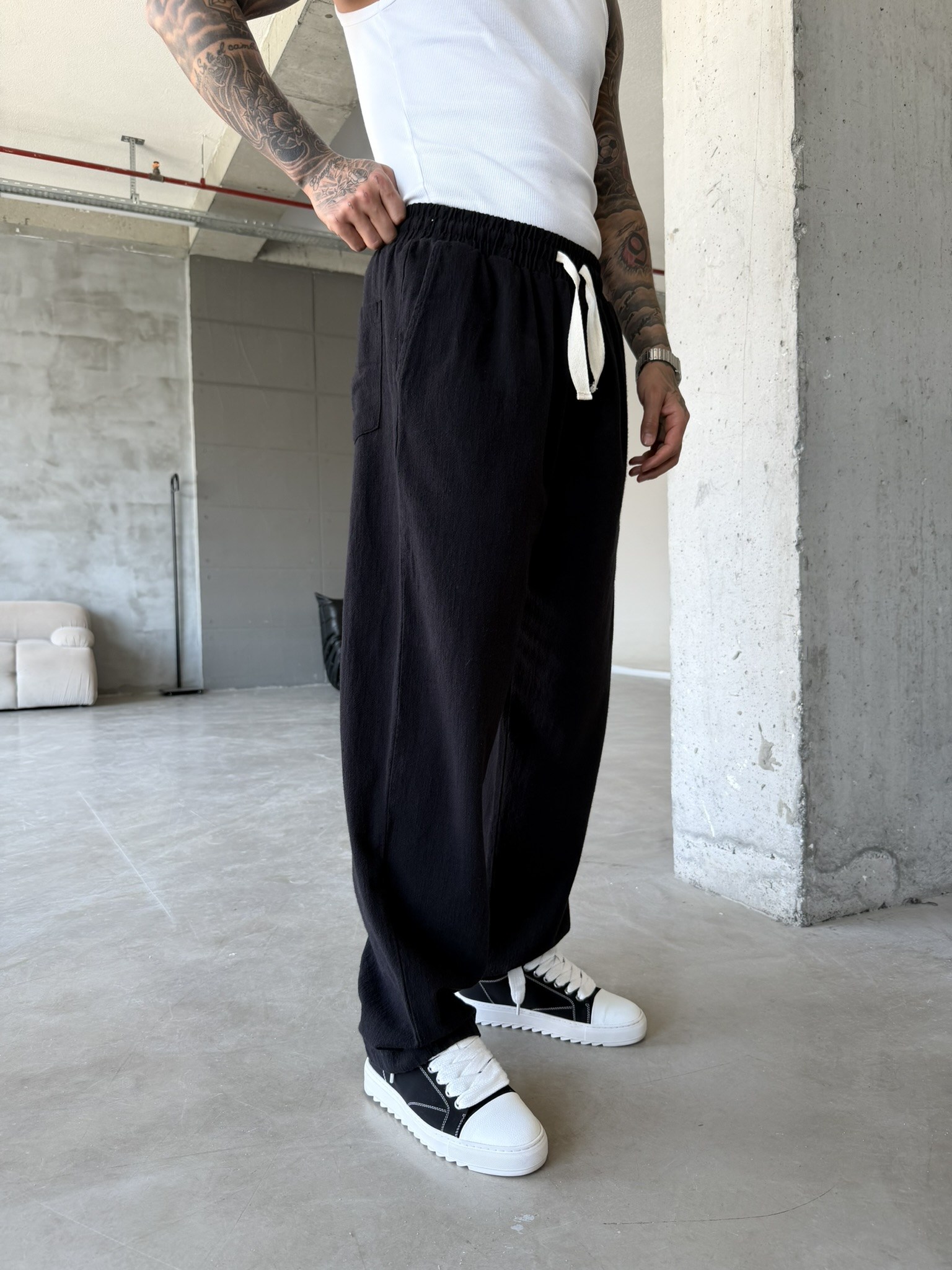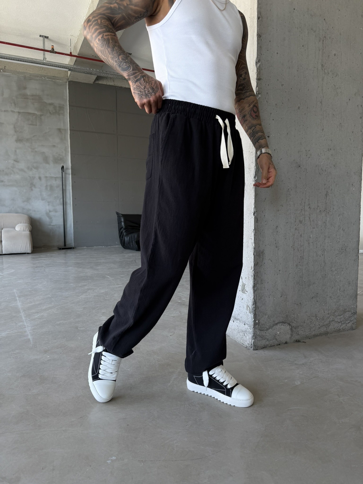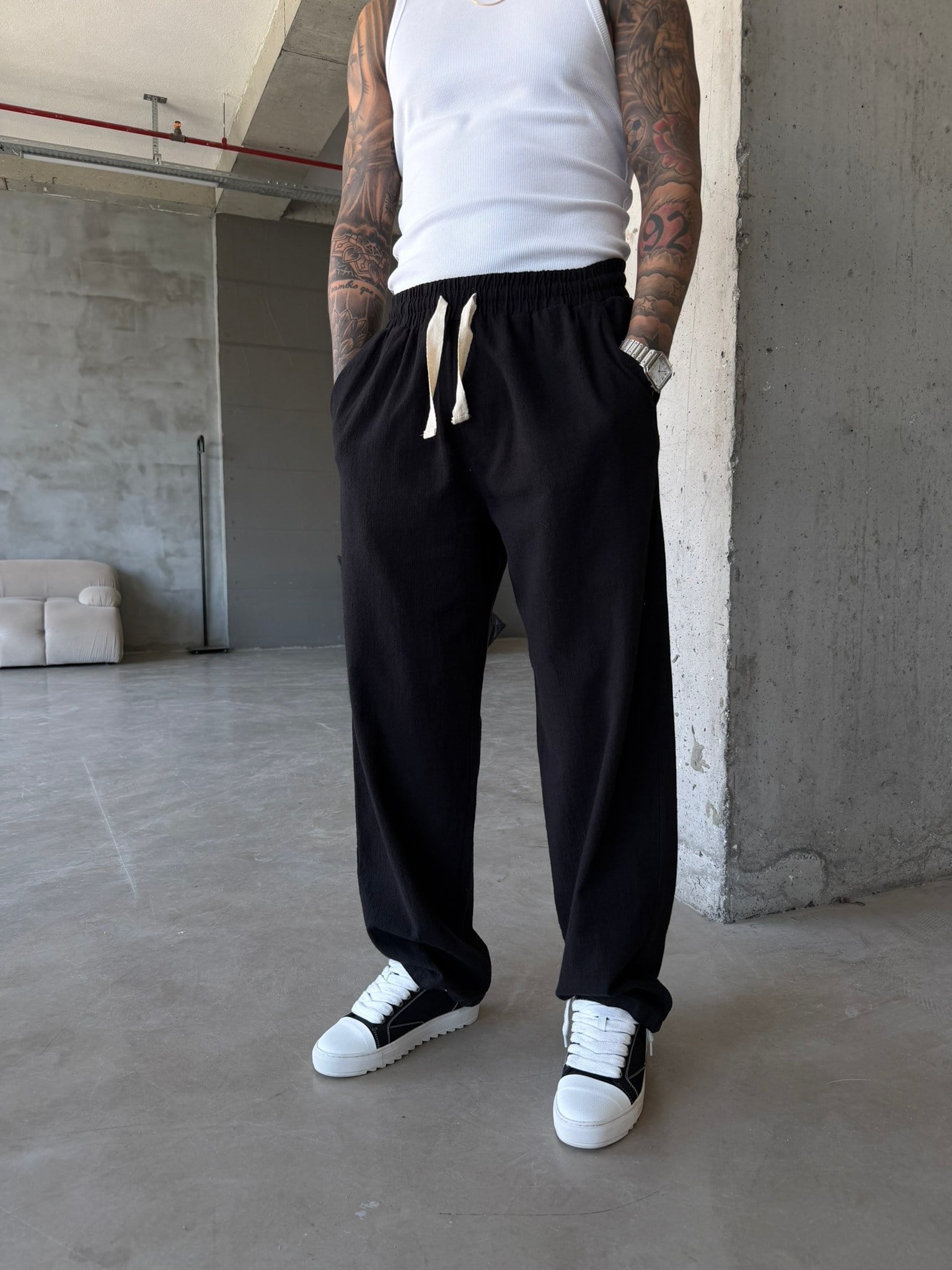 Linen Basic Baggy Pantolon - Siyah (PNT.0133-Siyah-S)