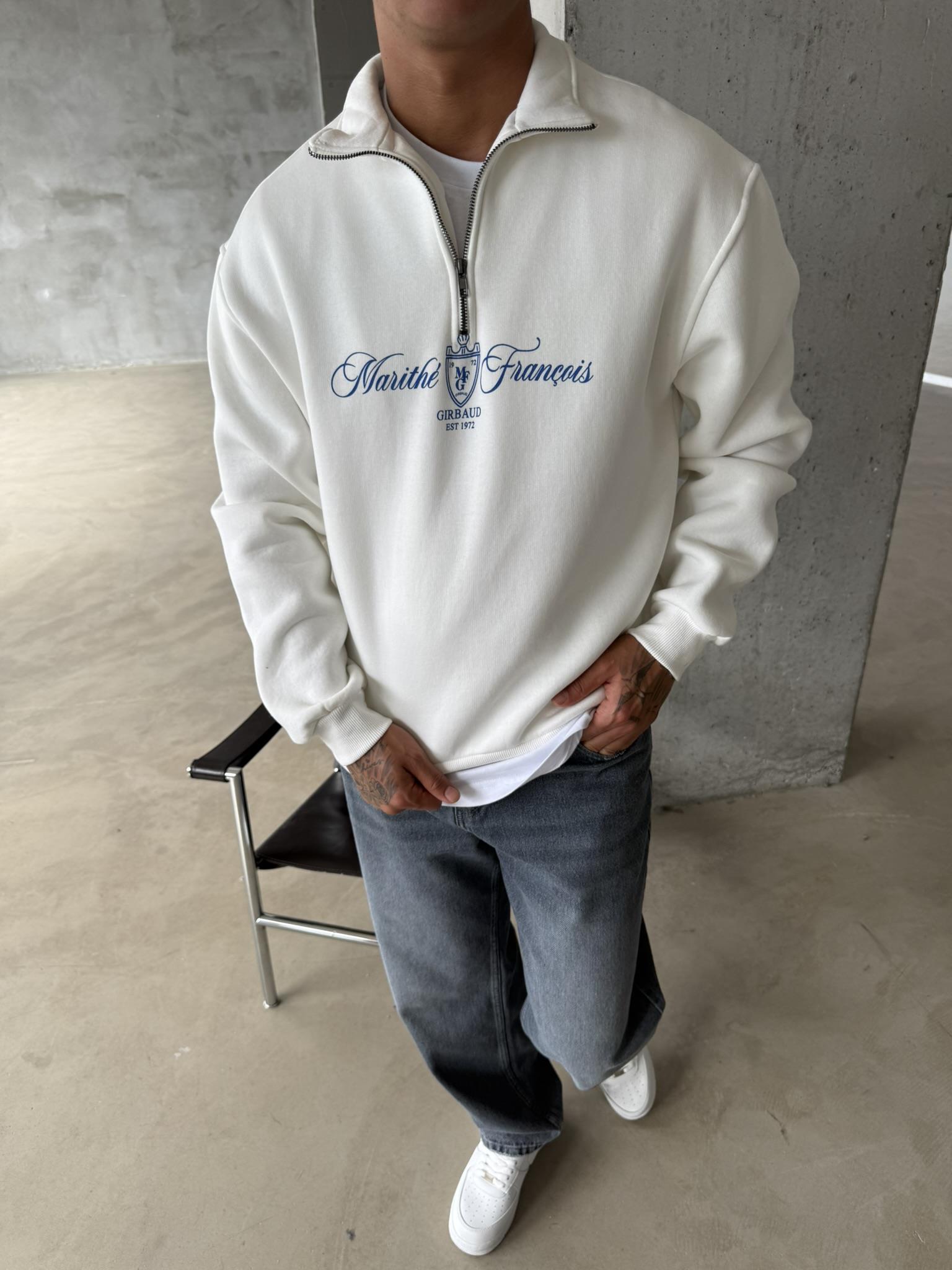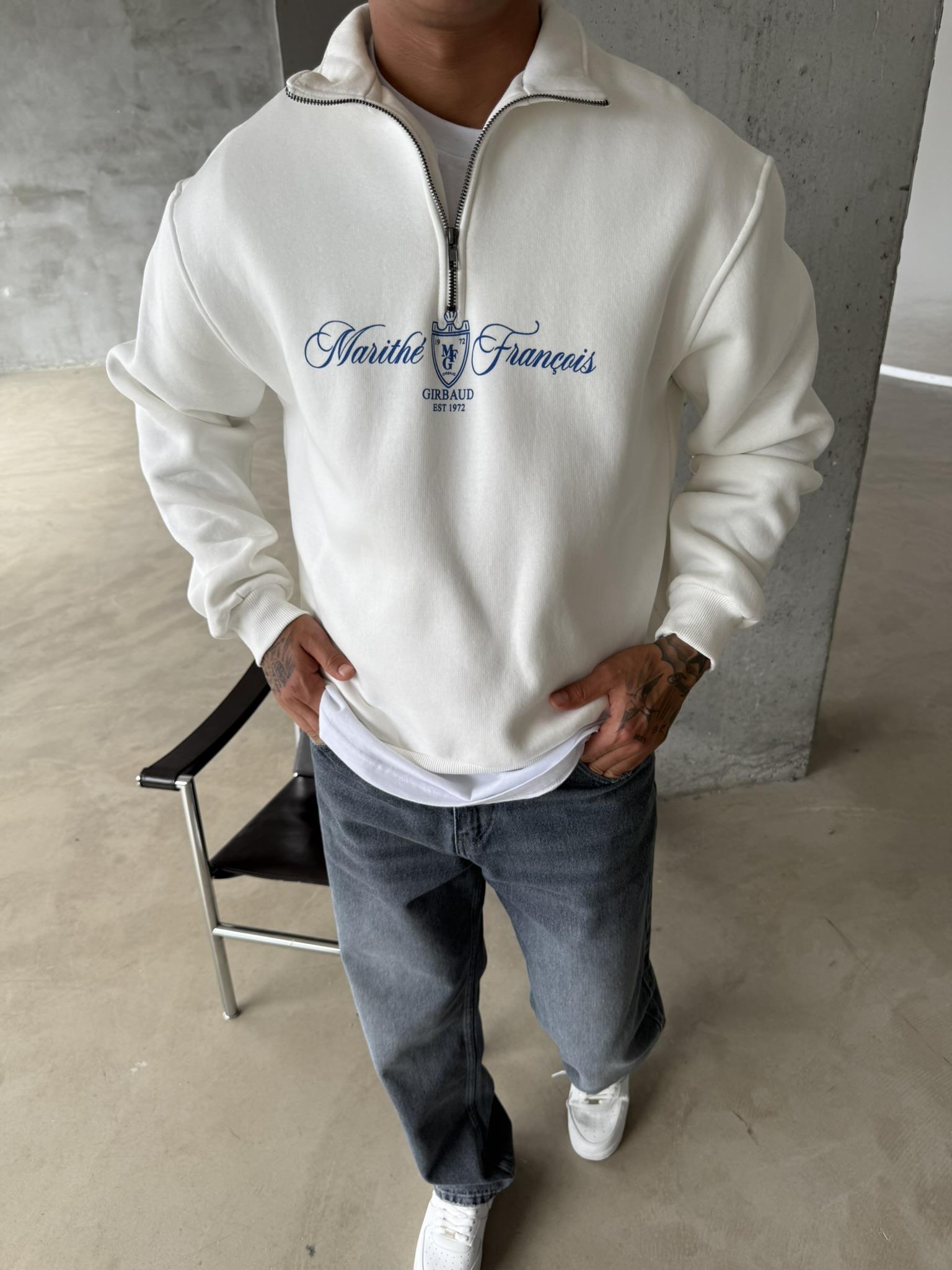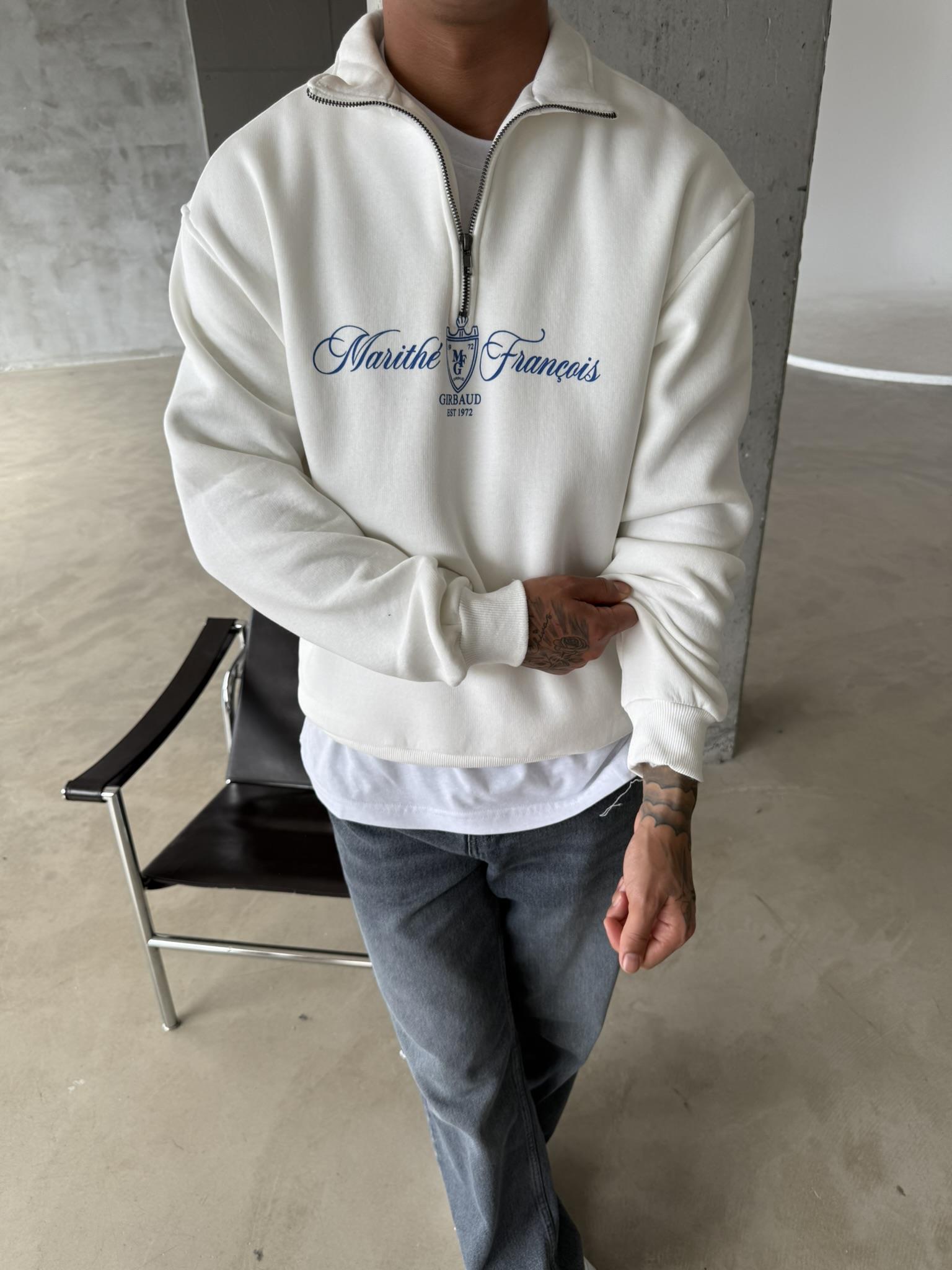 Masithe François Yarım Fermuar Zip - Beyaz (SWT.0013-Beyaz-S)