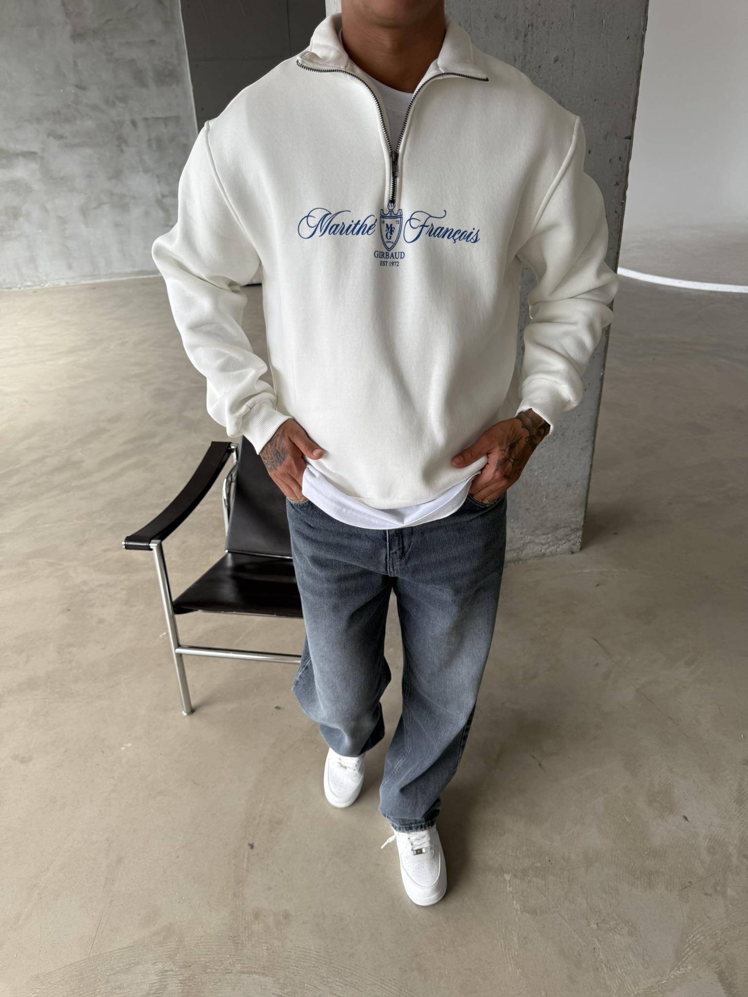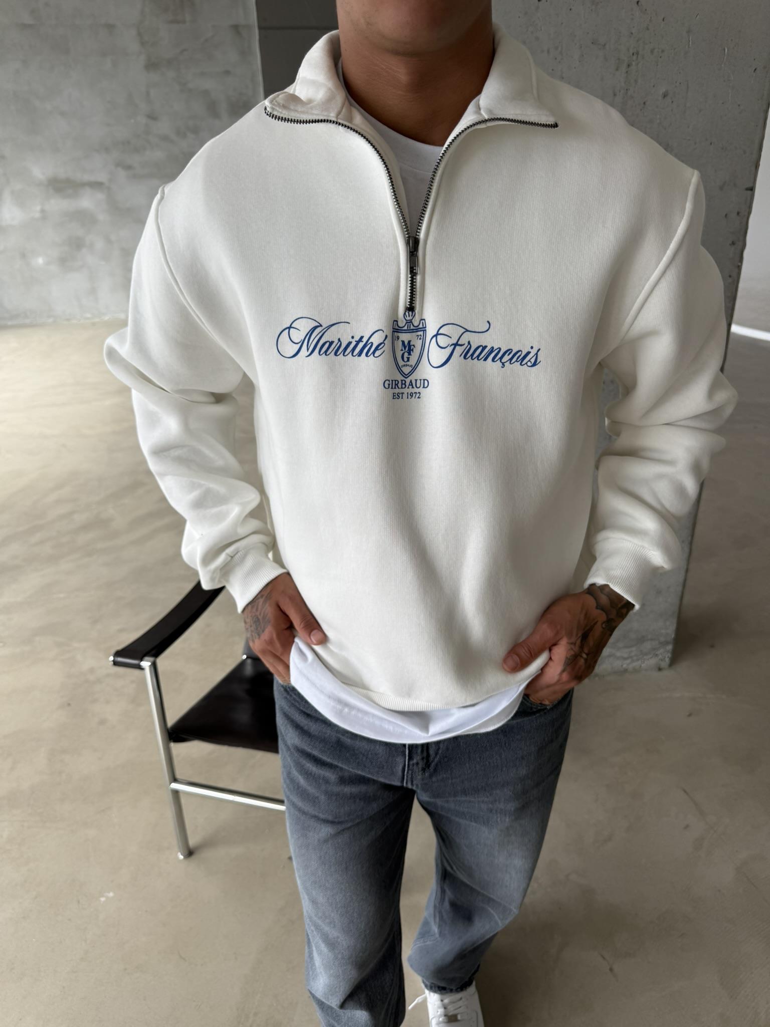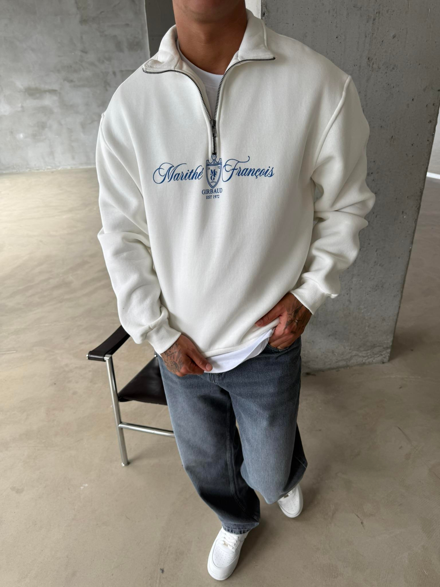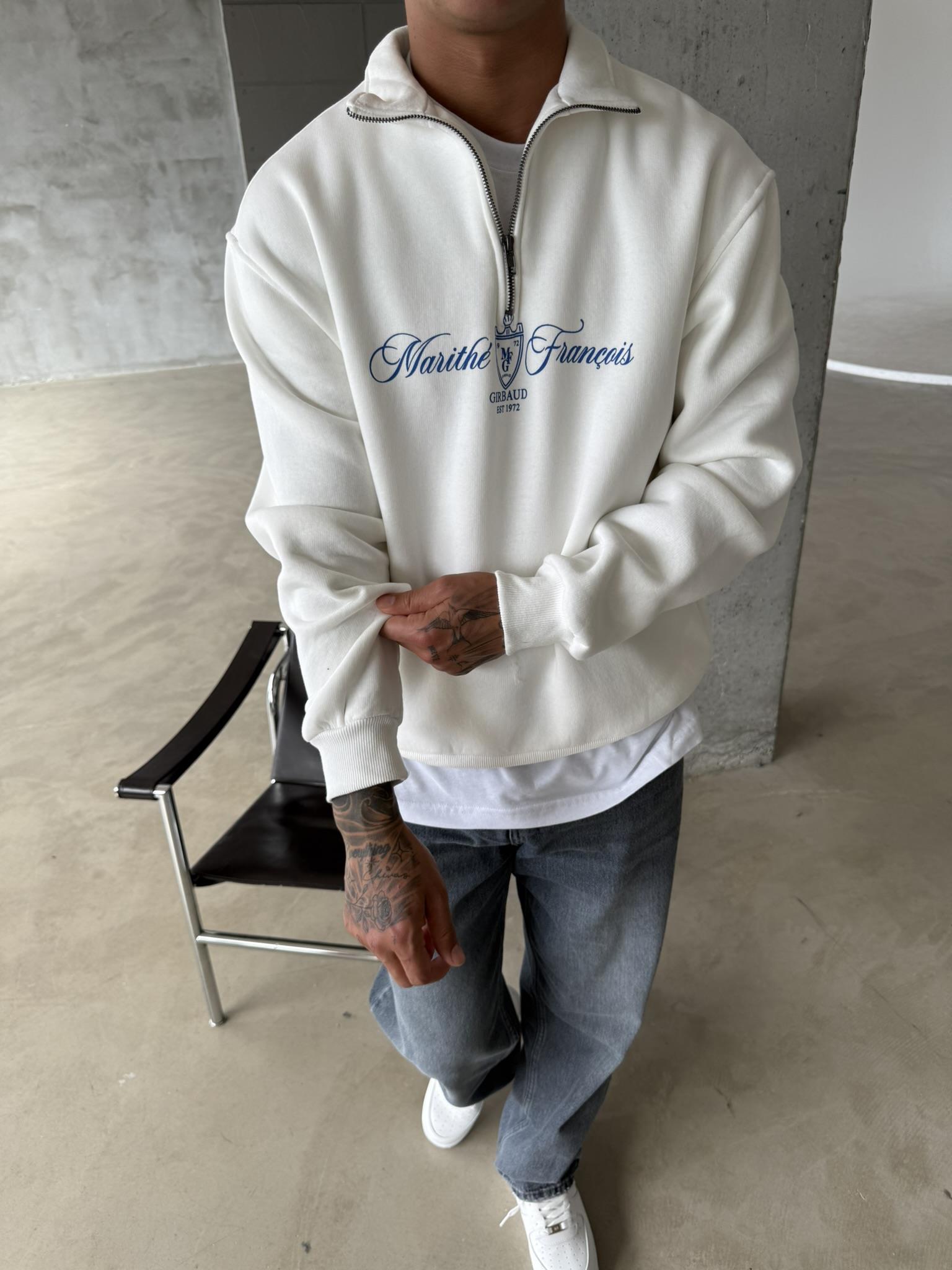 Masithe François Yarım Fermuar Zip - Beyaz (SWT.0013-Beyaz-S)