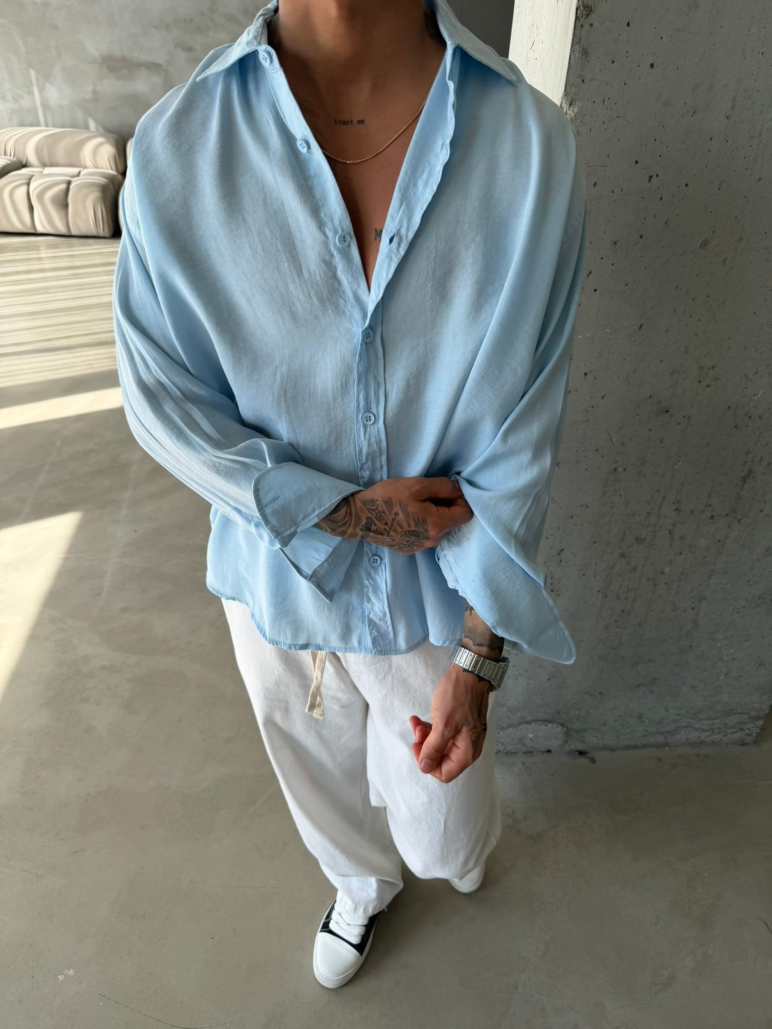Modal Kumaş Basic Gömlek - Bebe Mavi (GML.0049-Bebe Mavi-S)