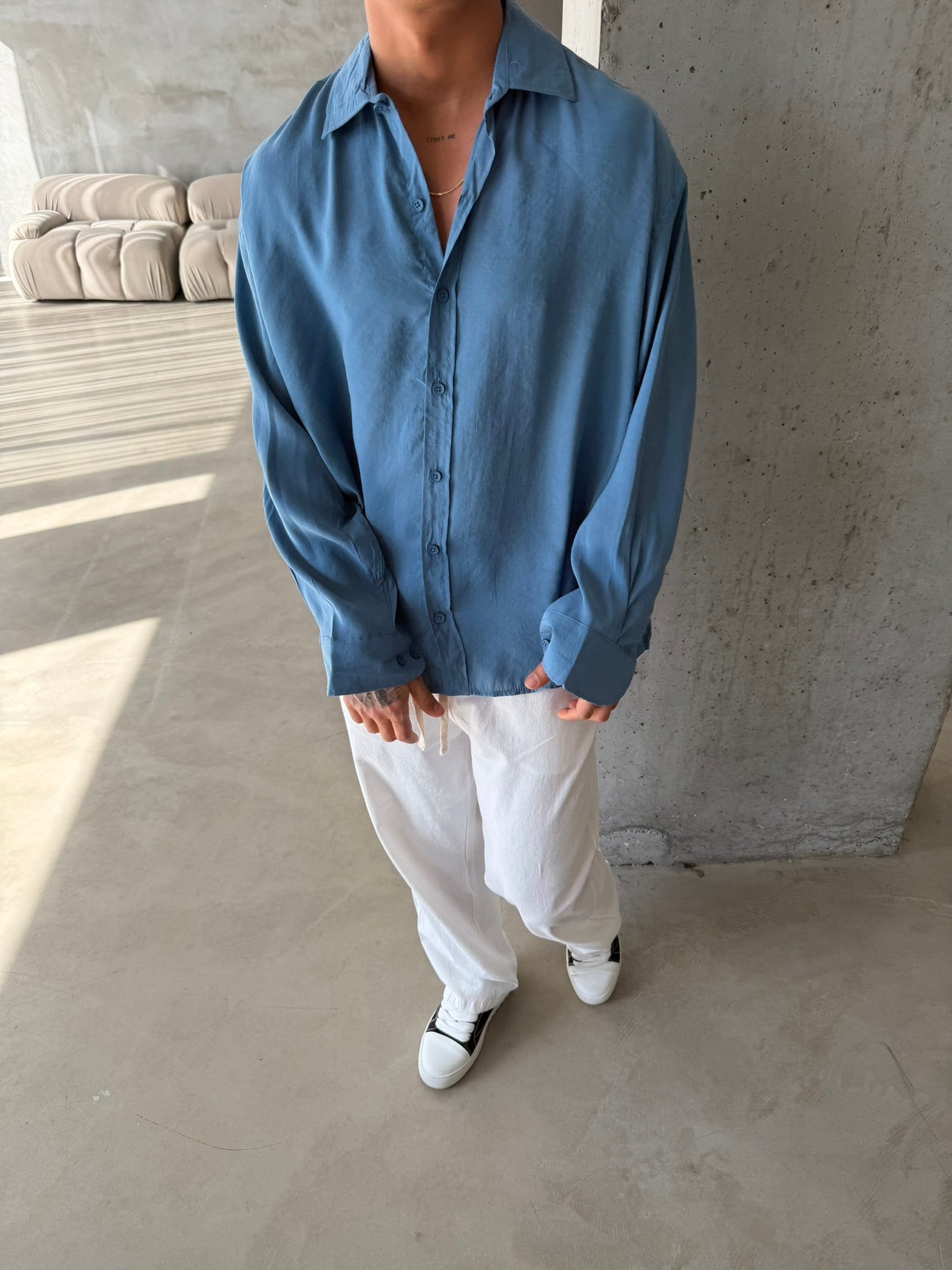 Modal Kumaş Basic Gömlek - İndigo (GML.0049-İndigo-S)
