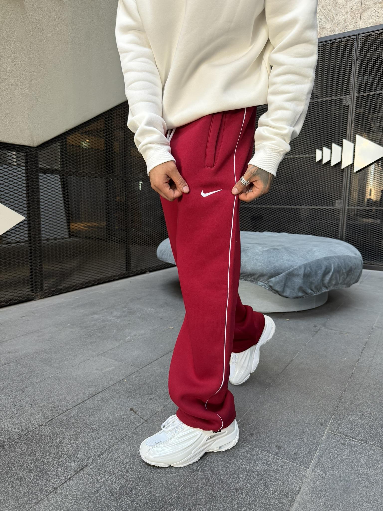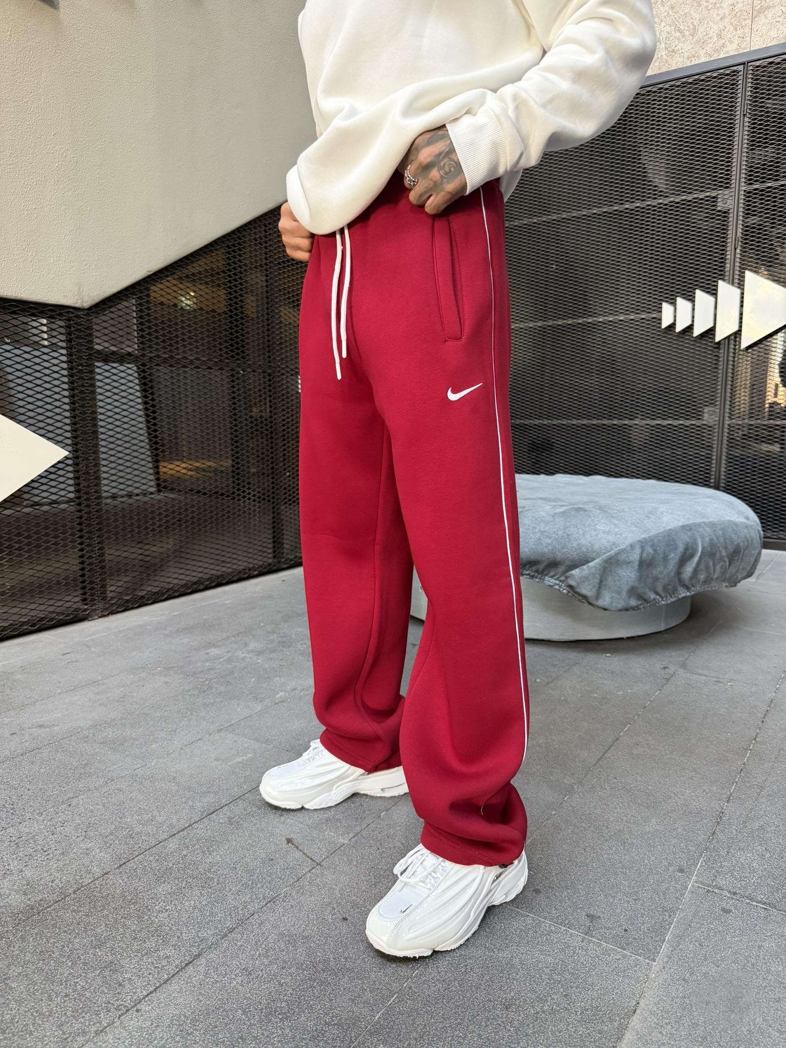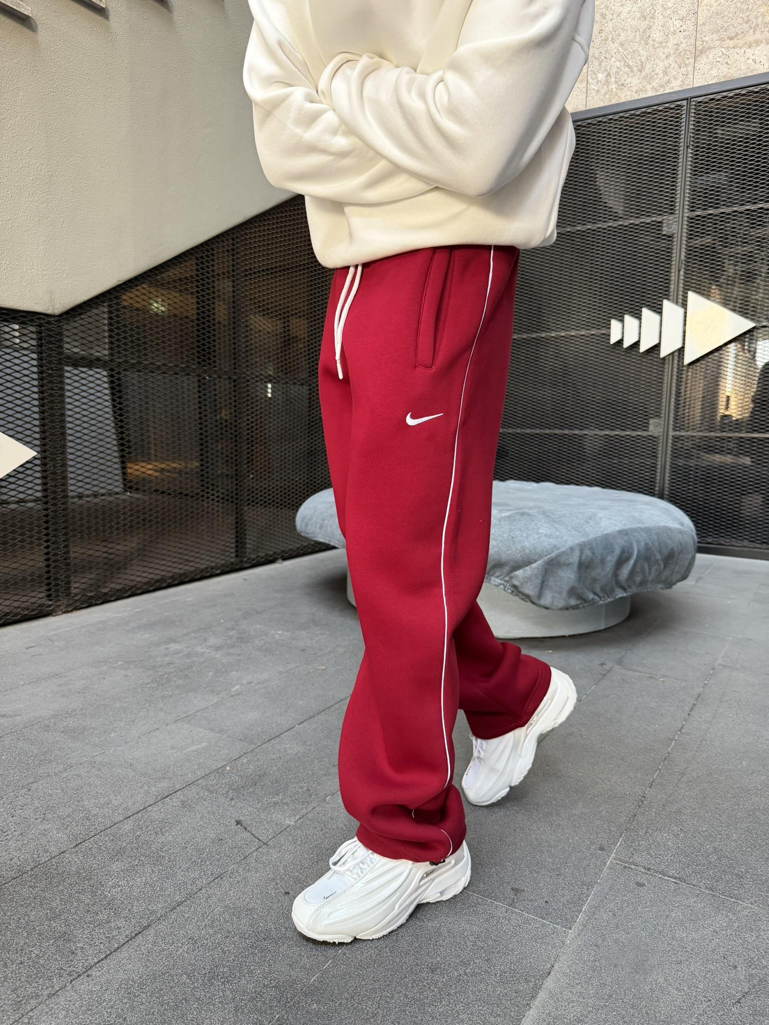 NK' Nakışlı Çizgili Lastikli Stoper Paça Baggy Eşofman - Bordo (ST00495-Bordo-S)