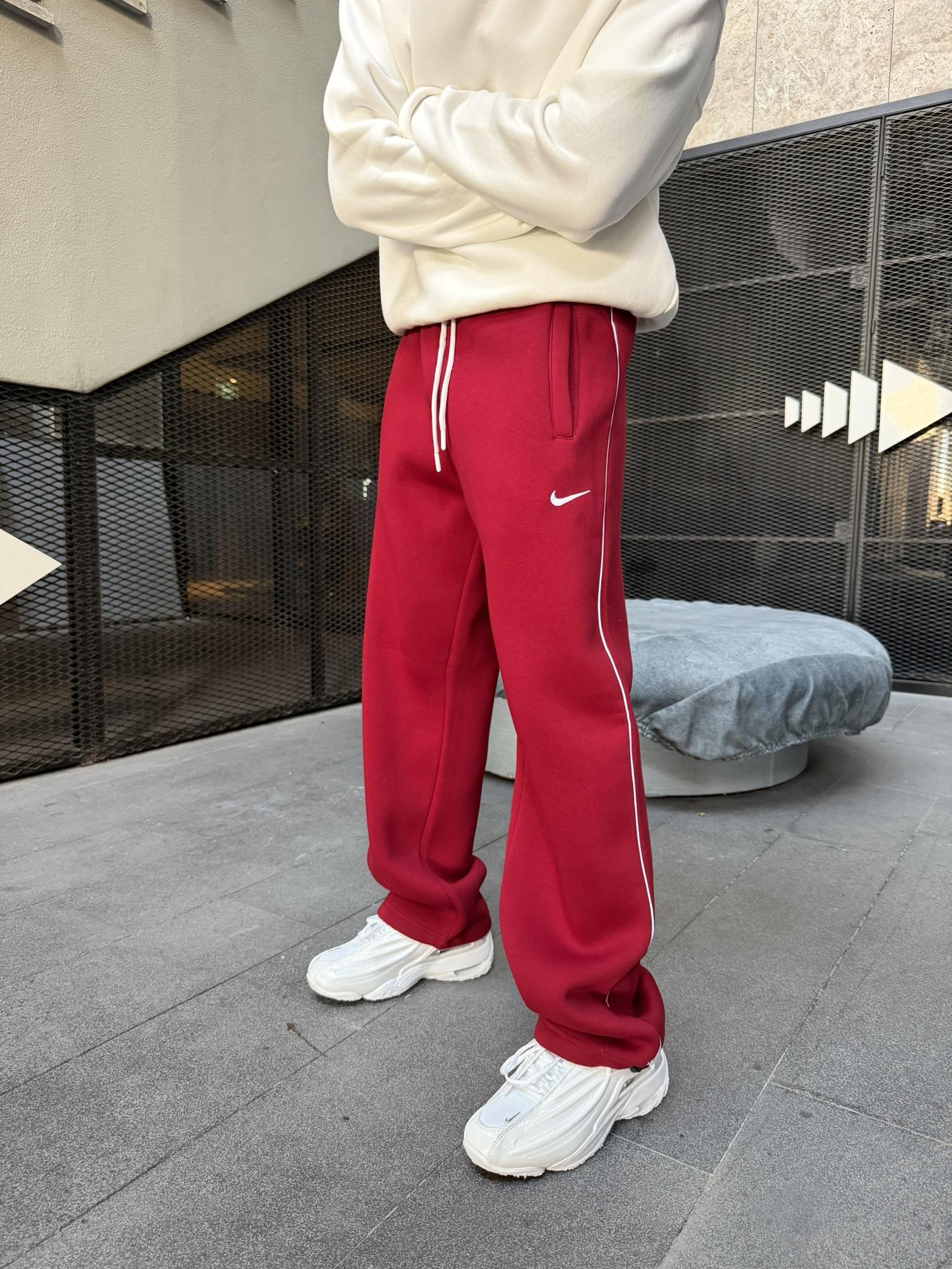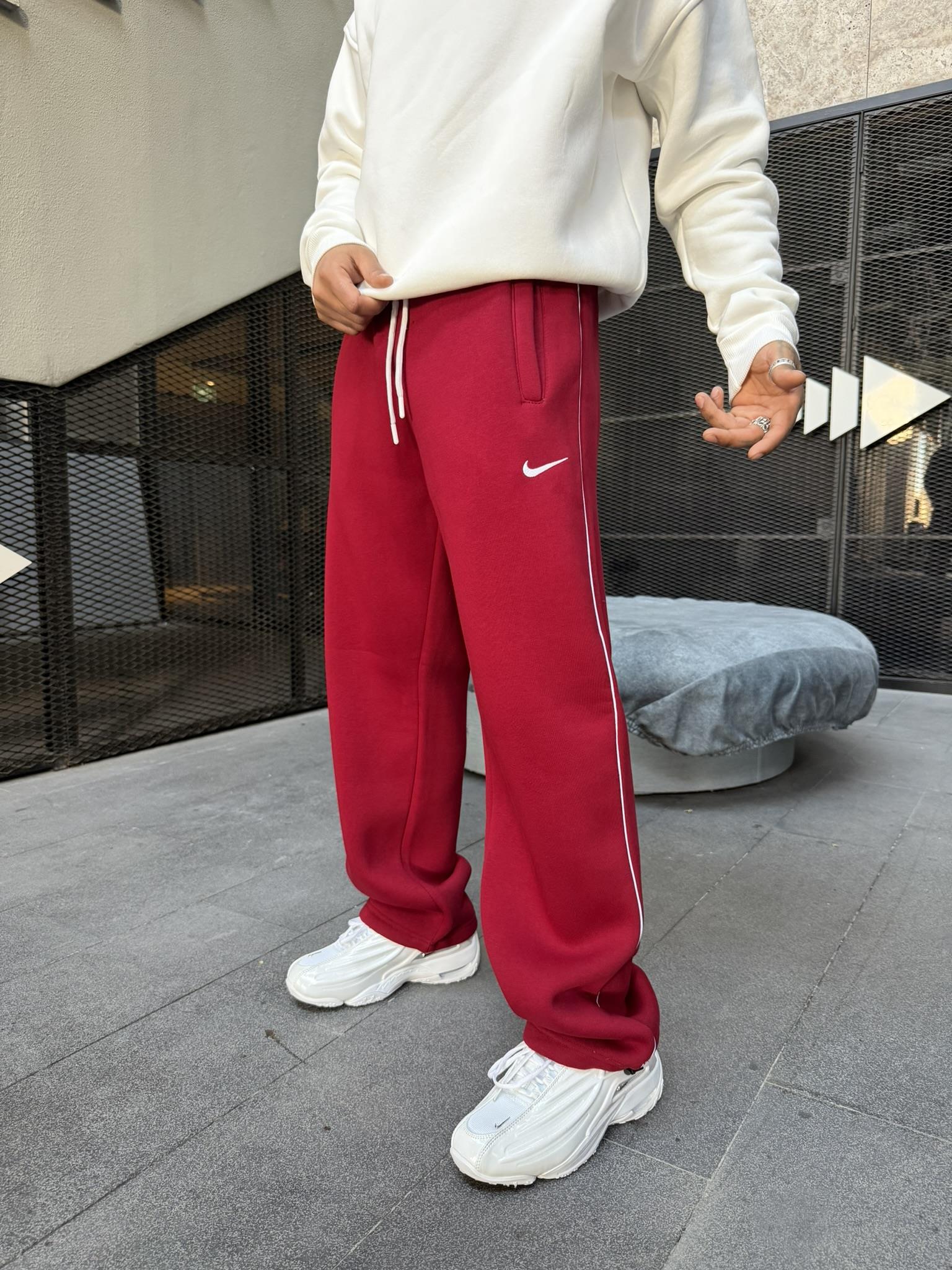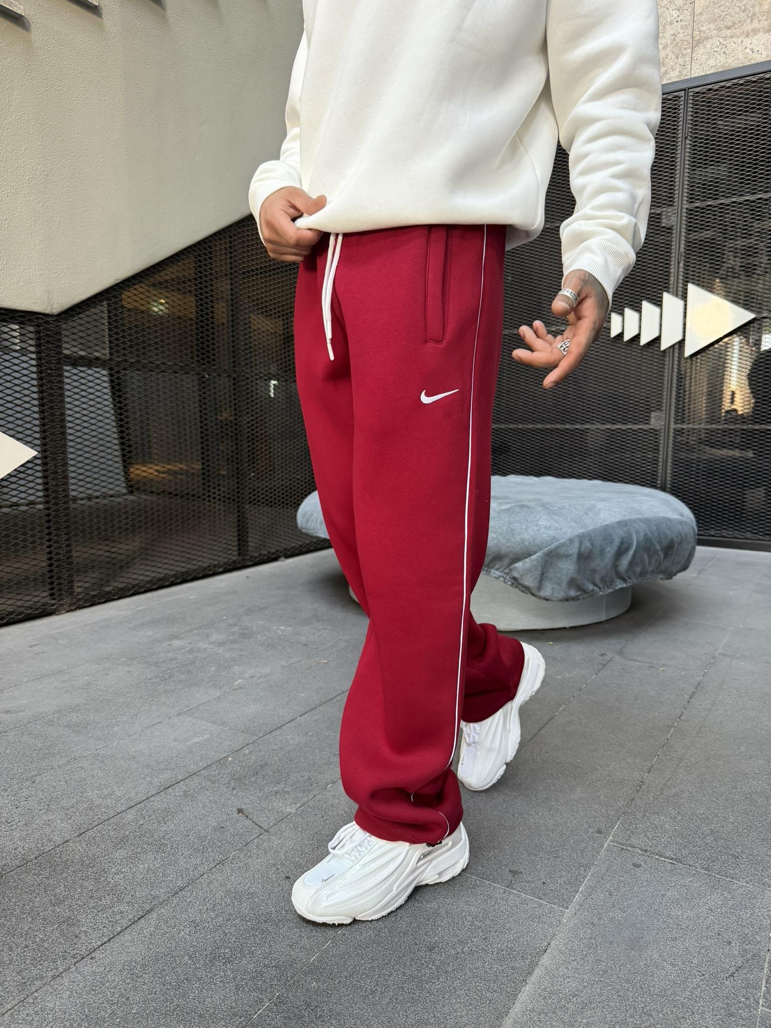 NK' Nakışlı Çizgili Lastikli Stoper Paça Baggy Eşofman - Bordo (ST00495-Bordo-S)