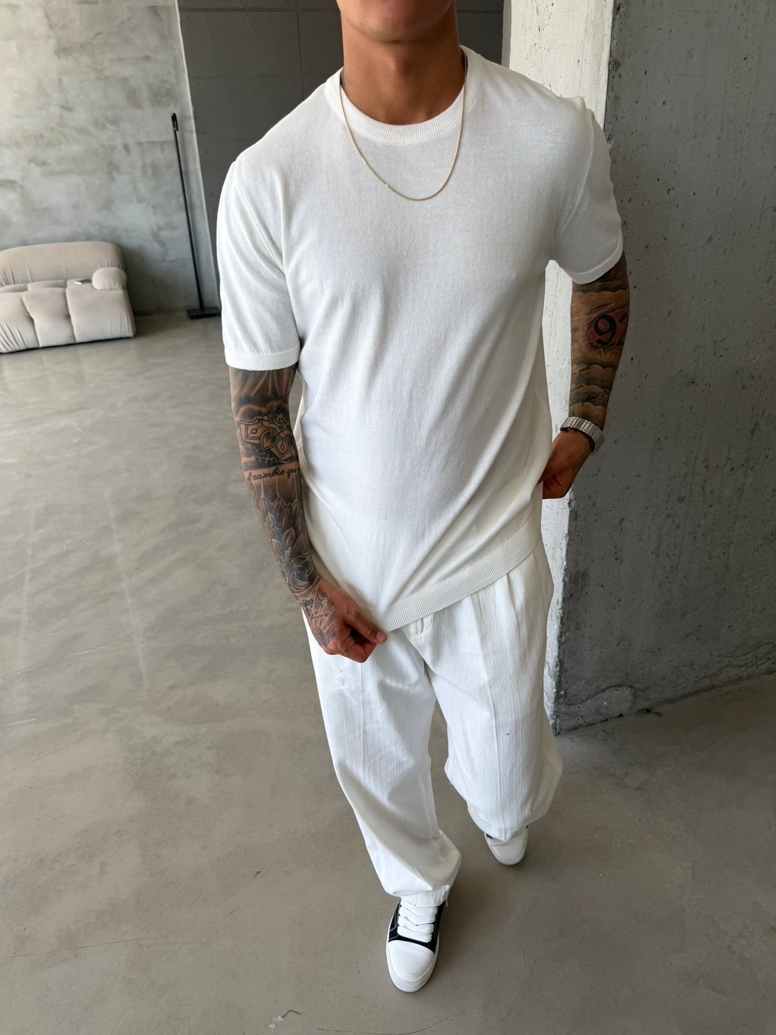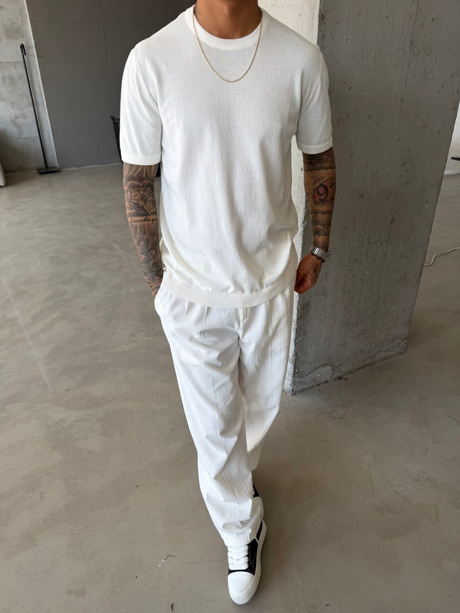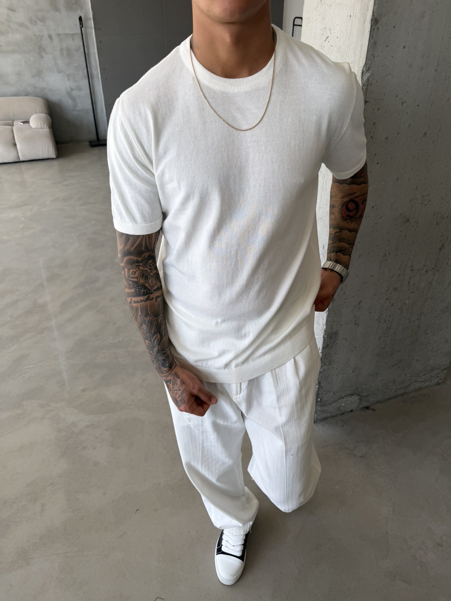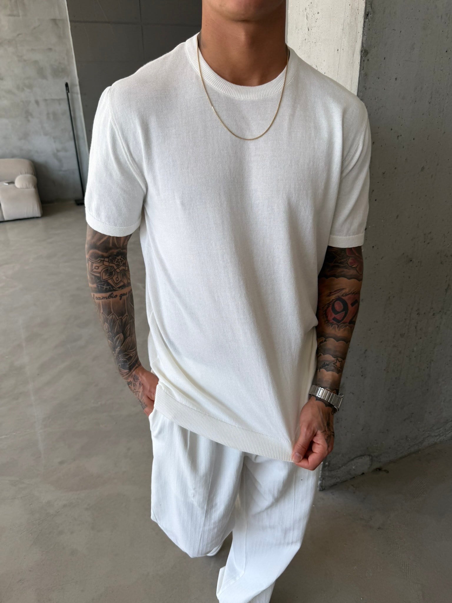 Old Money Basic Triko T-Shirt - Beyaz (TST.0173-Beyaz-S)