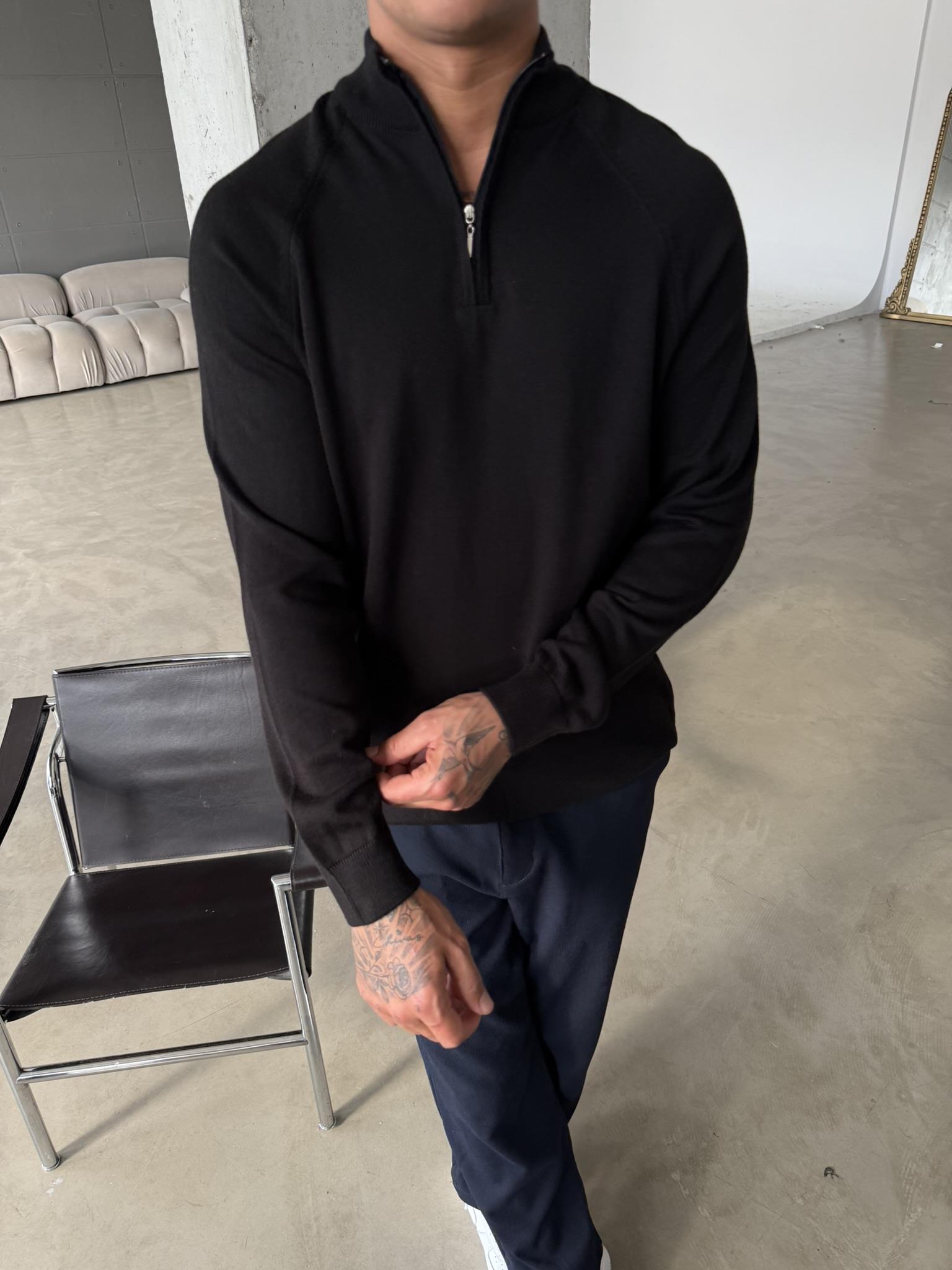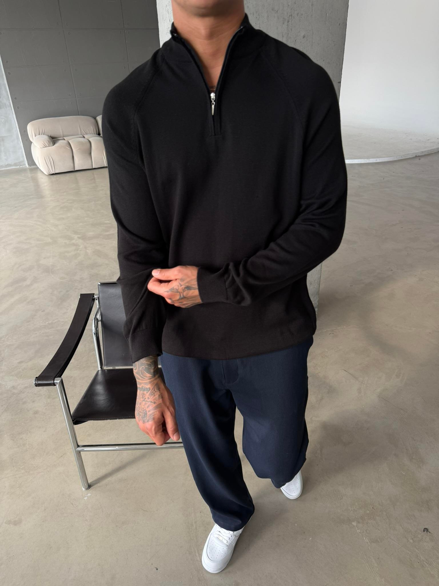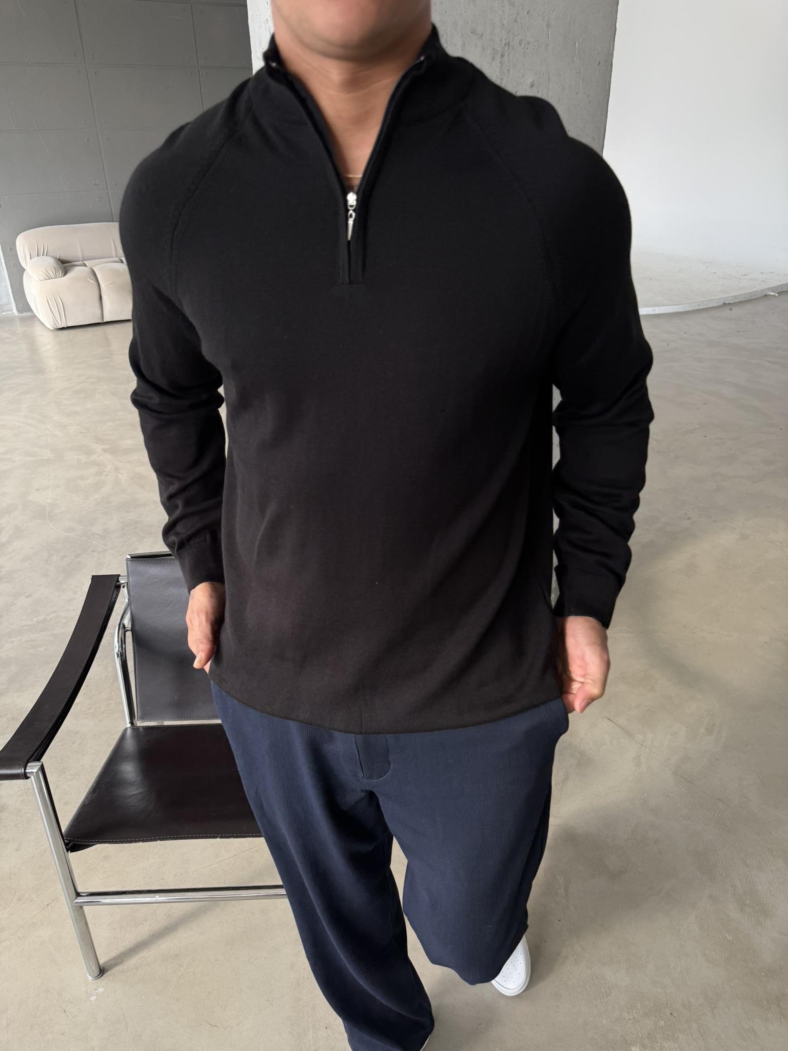 Old Money Half Zip Uzun Kol - Siyah (SWT.0035-Siyah-S)