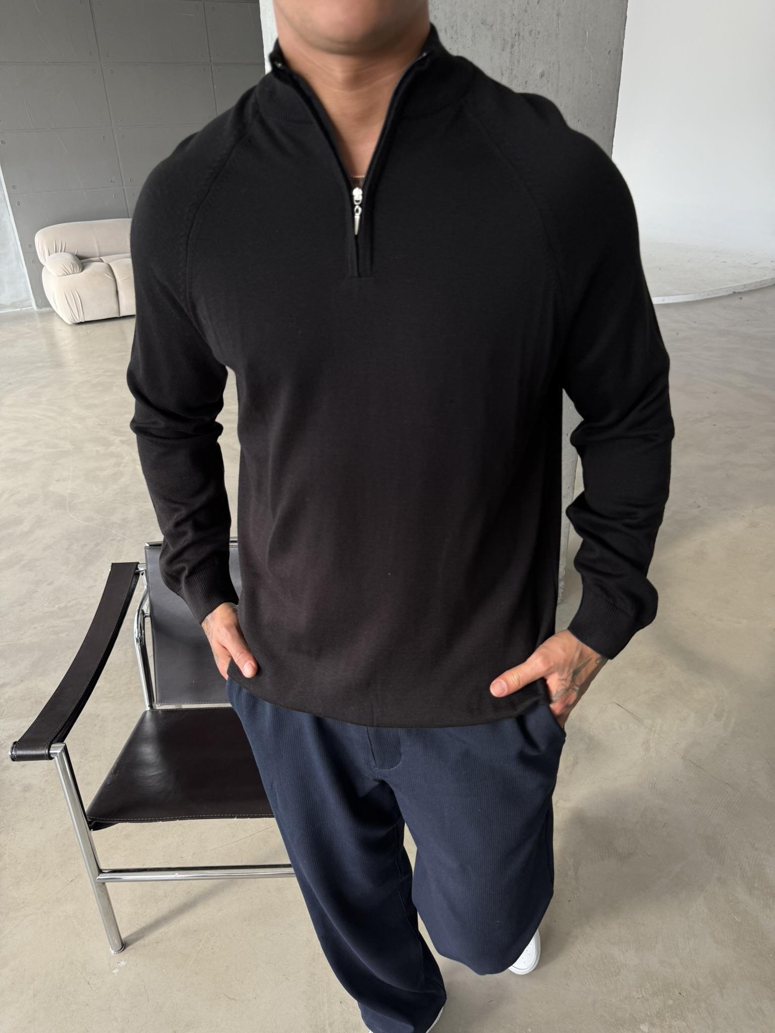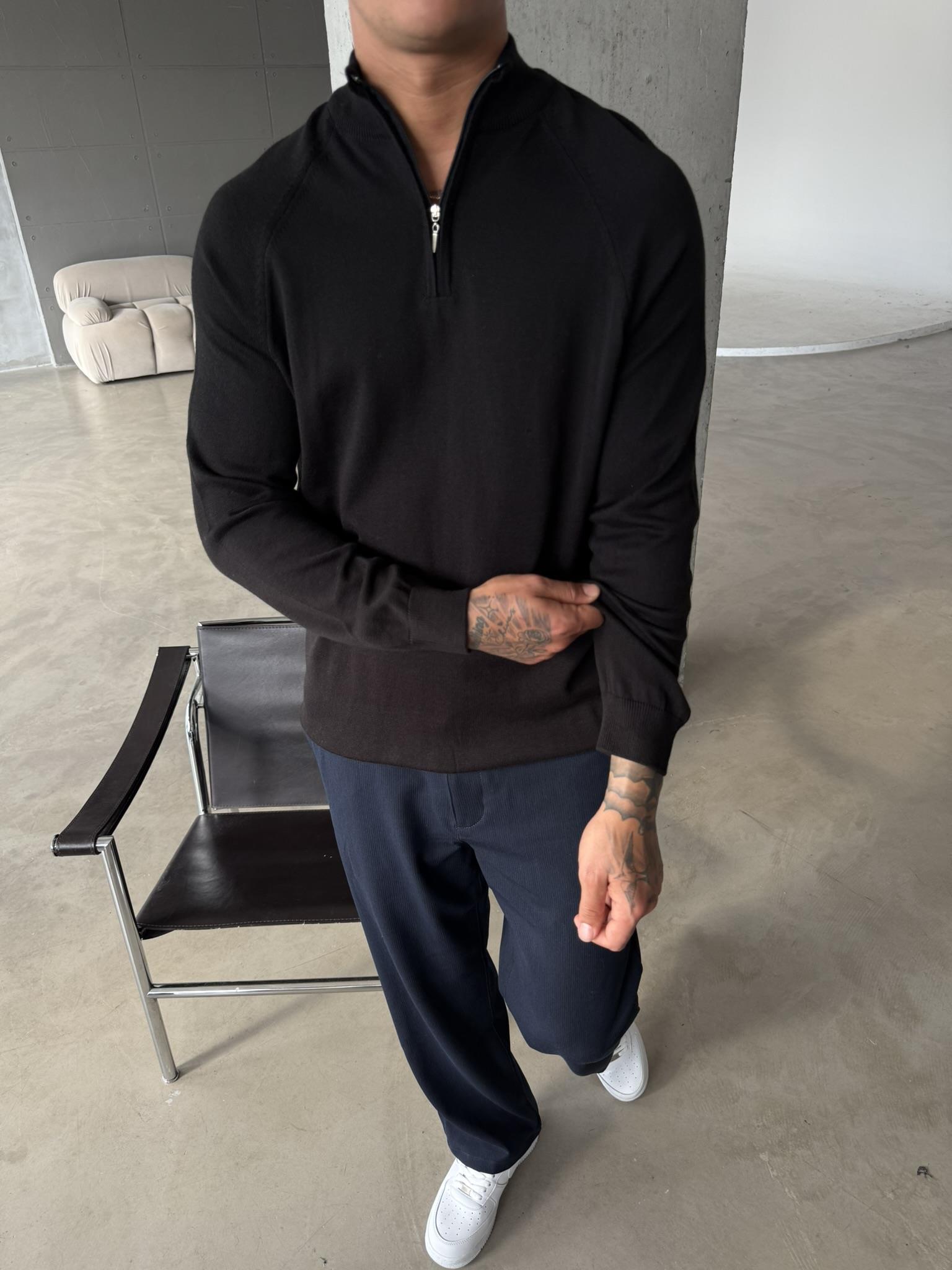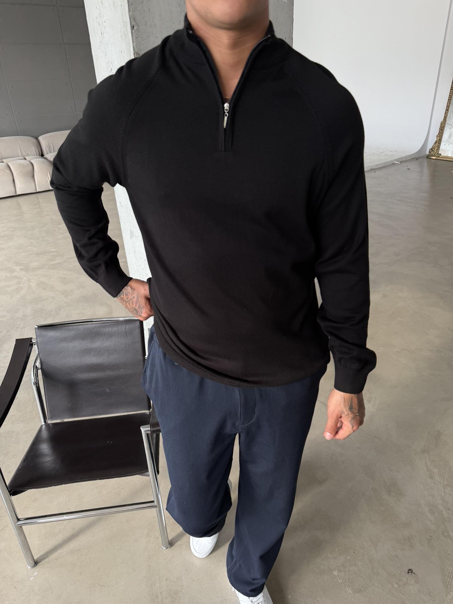 Old Money Half Zip Uzun Kol - Siyah (SWT.0035-Siyah-S)