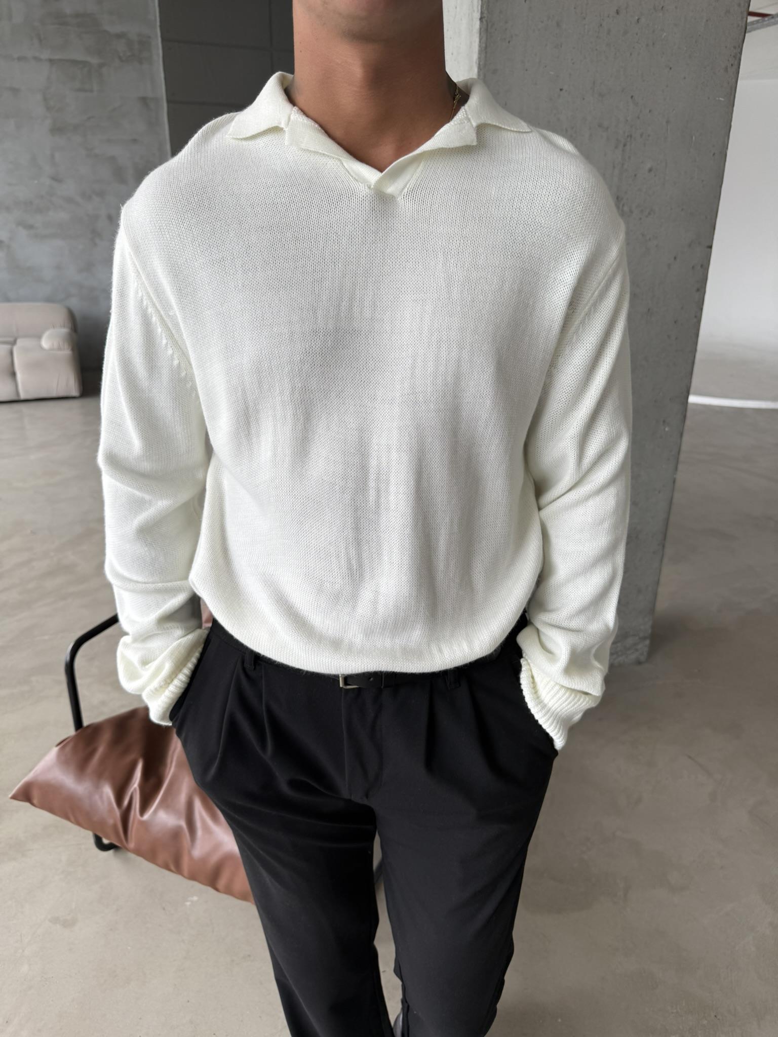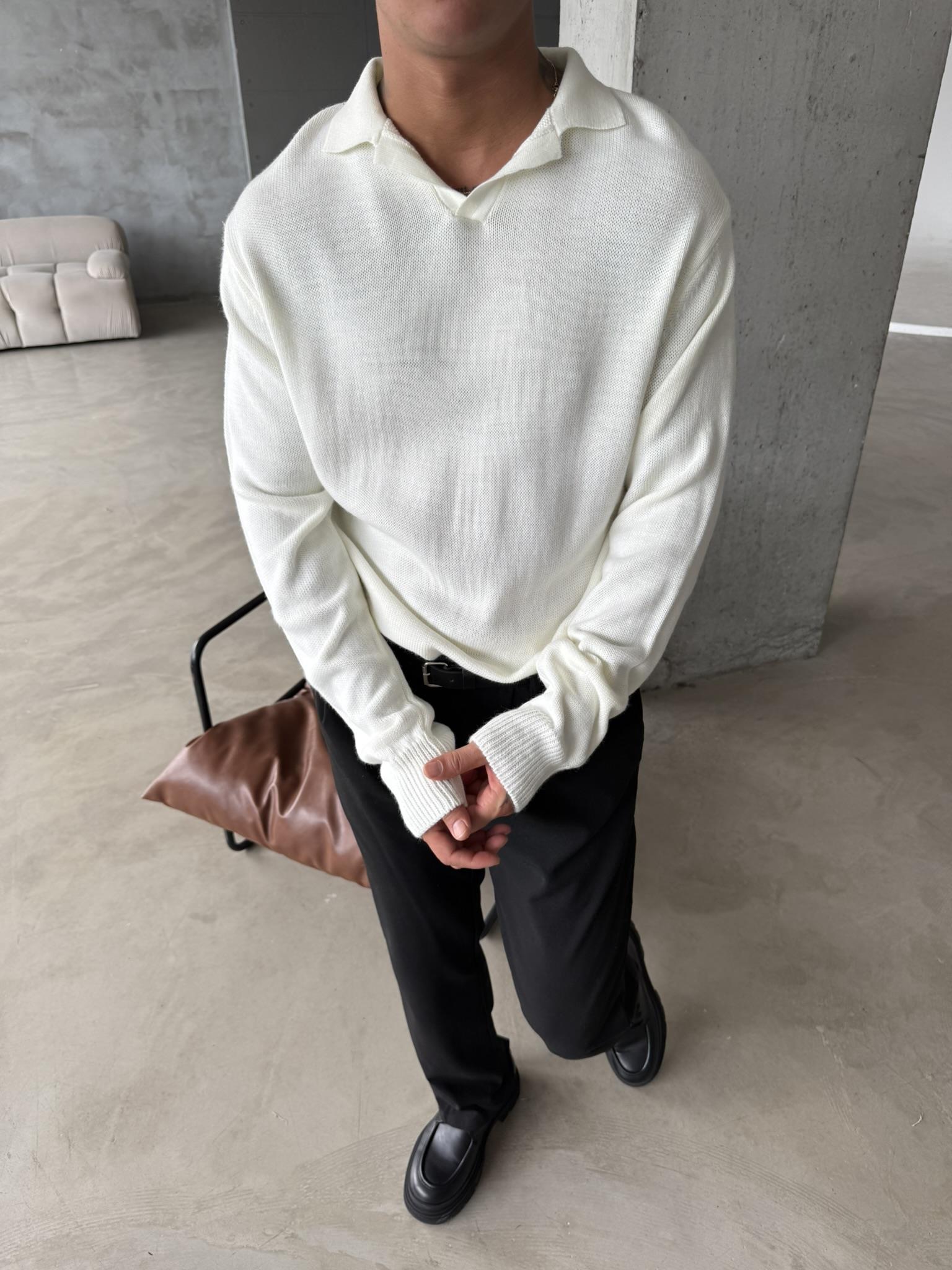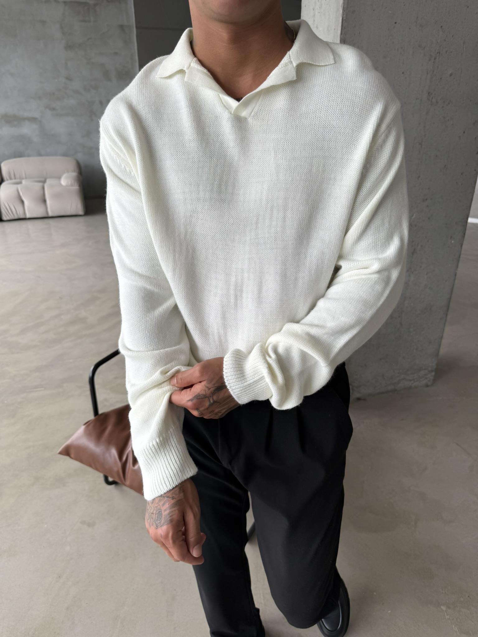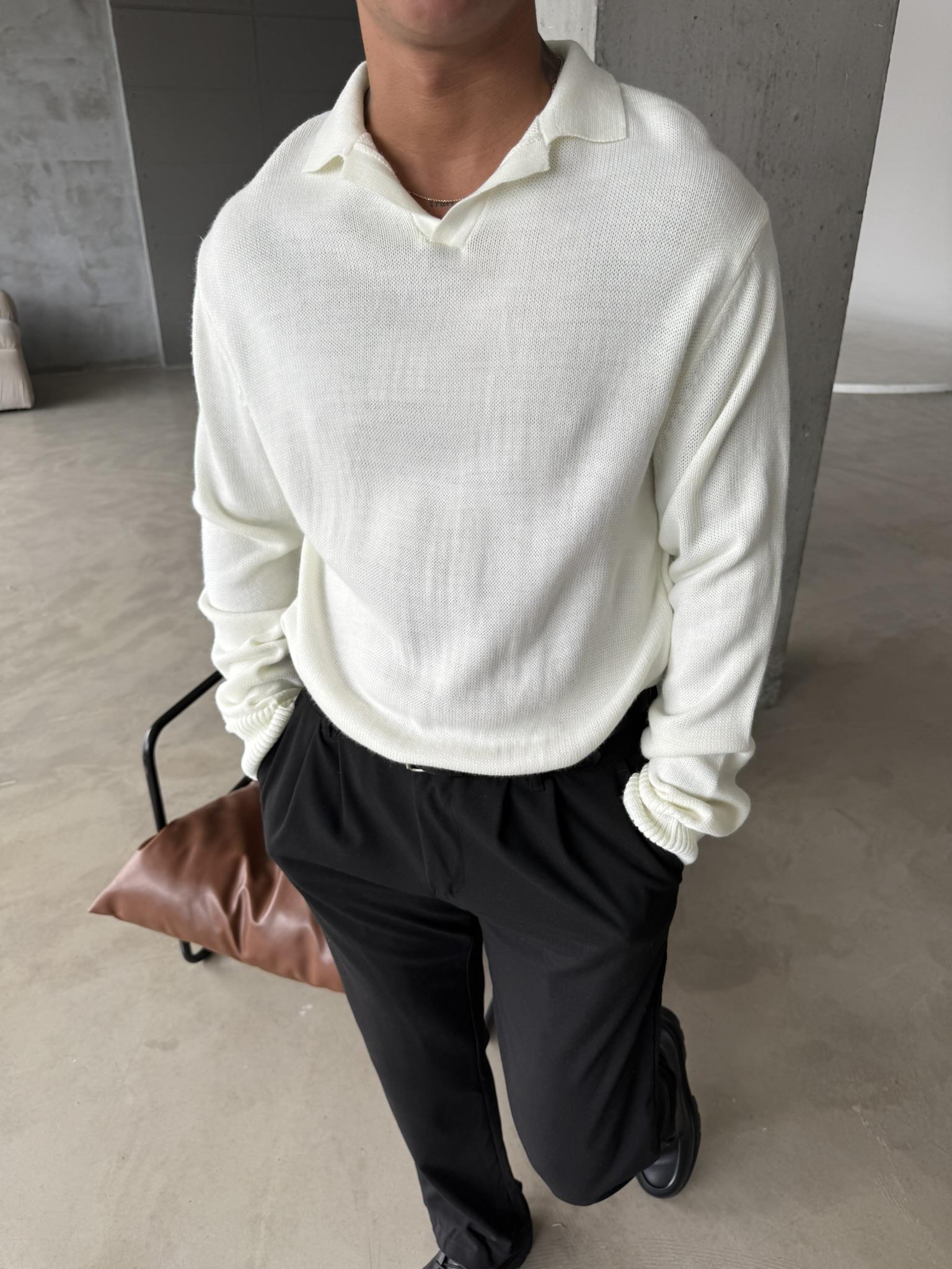 Old Money Pat Yaka Polo Yaka Uzun Kol - Beyaz (SWT.0036-Beyaz-S)