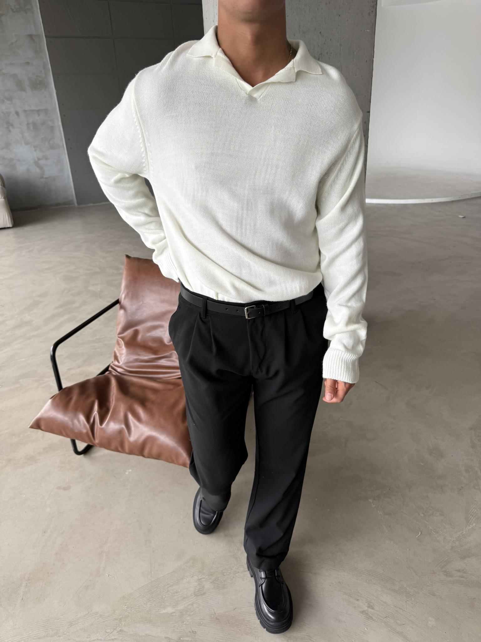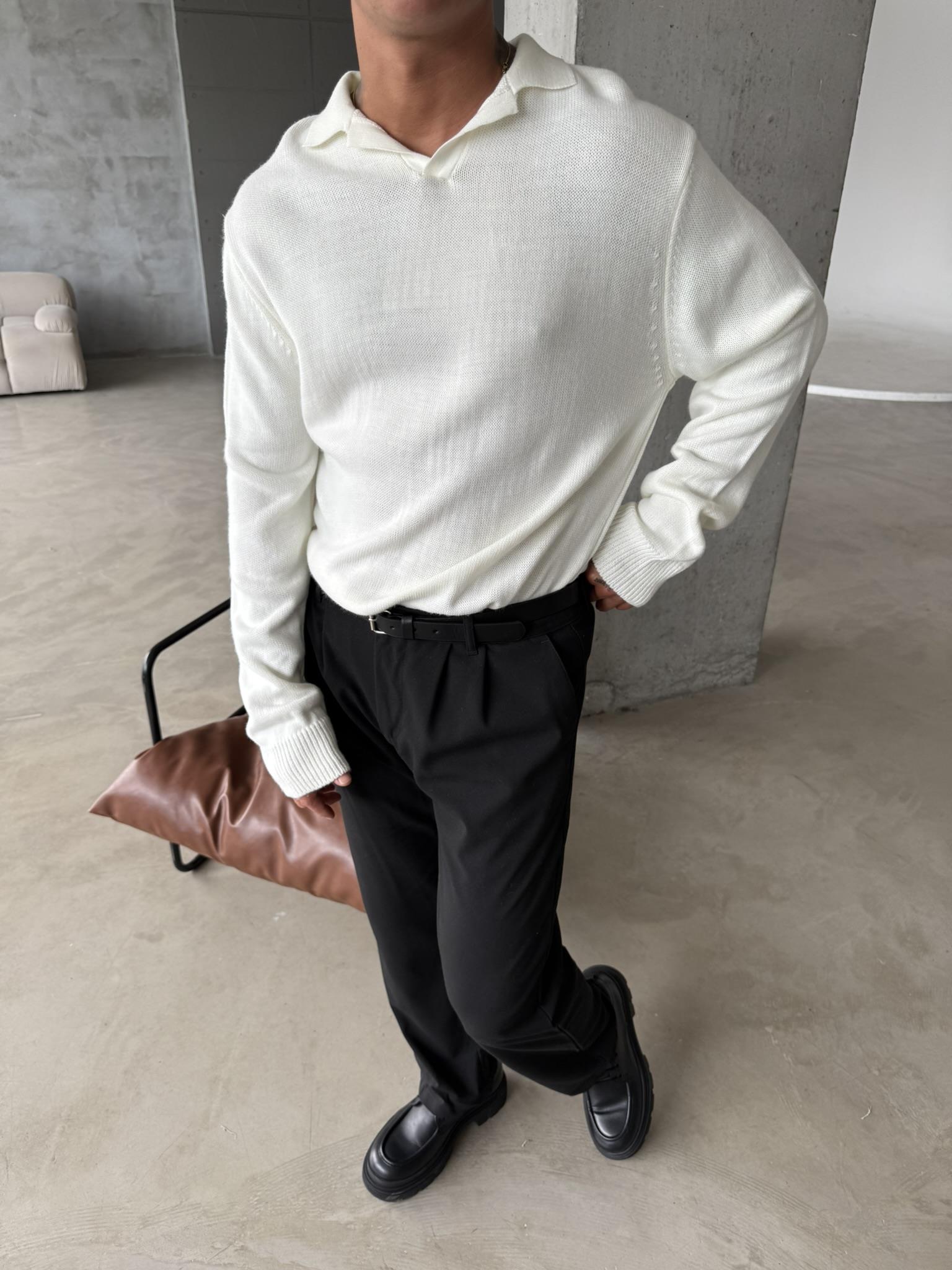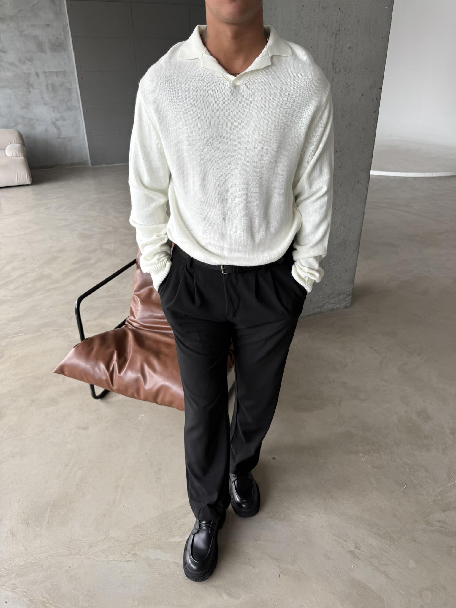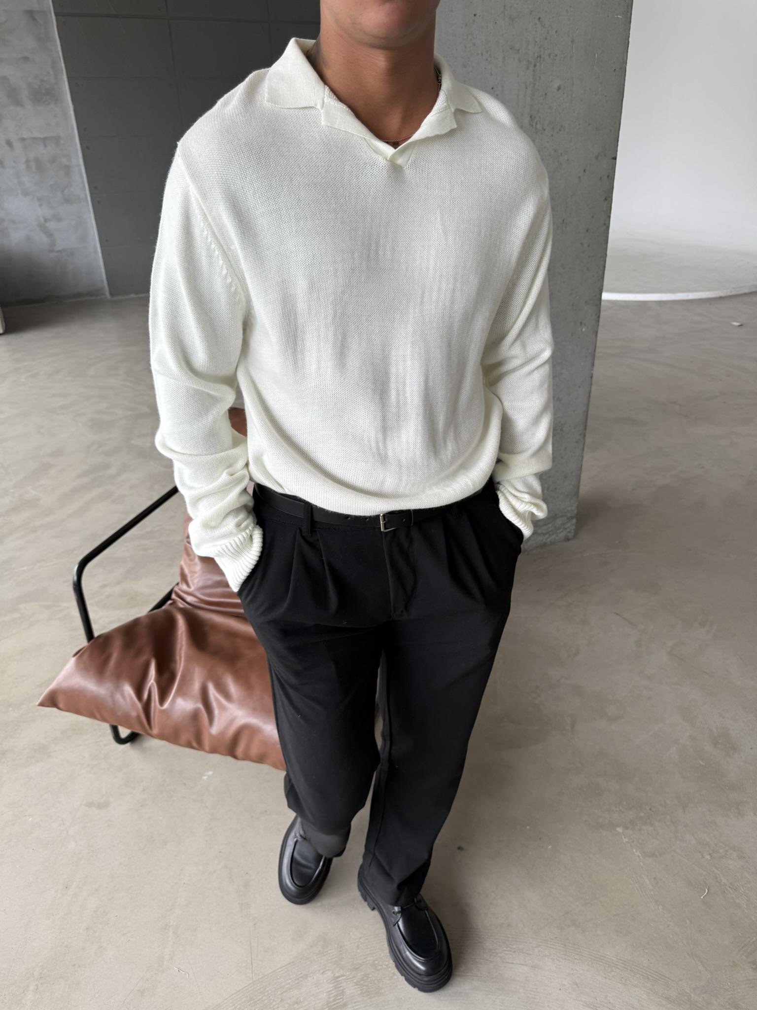 Old Money Pat Yaka Polo Yaka Uzun Kol - Beyaz (SWT.0036-Beyaz-S)