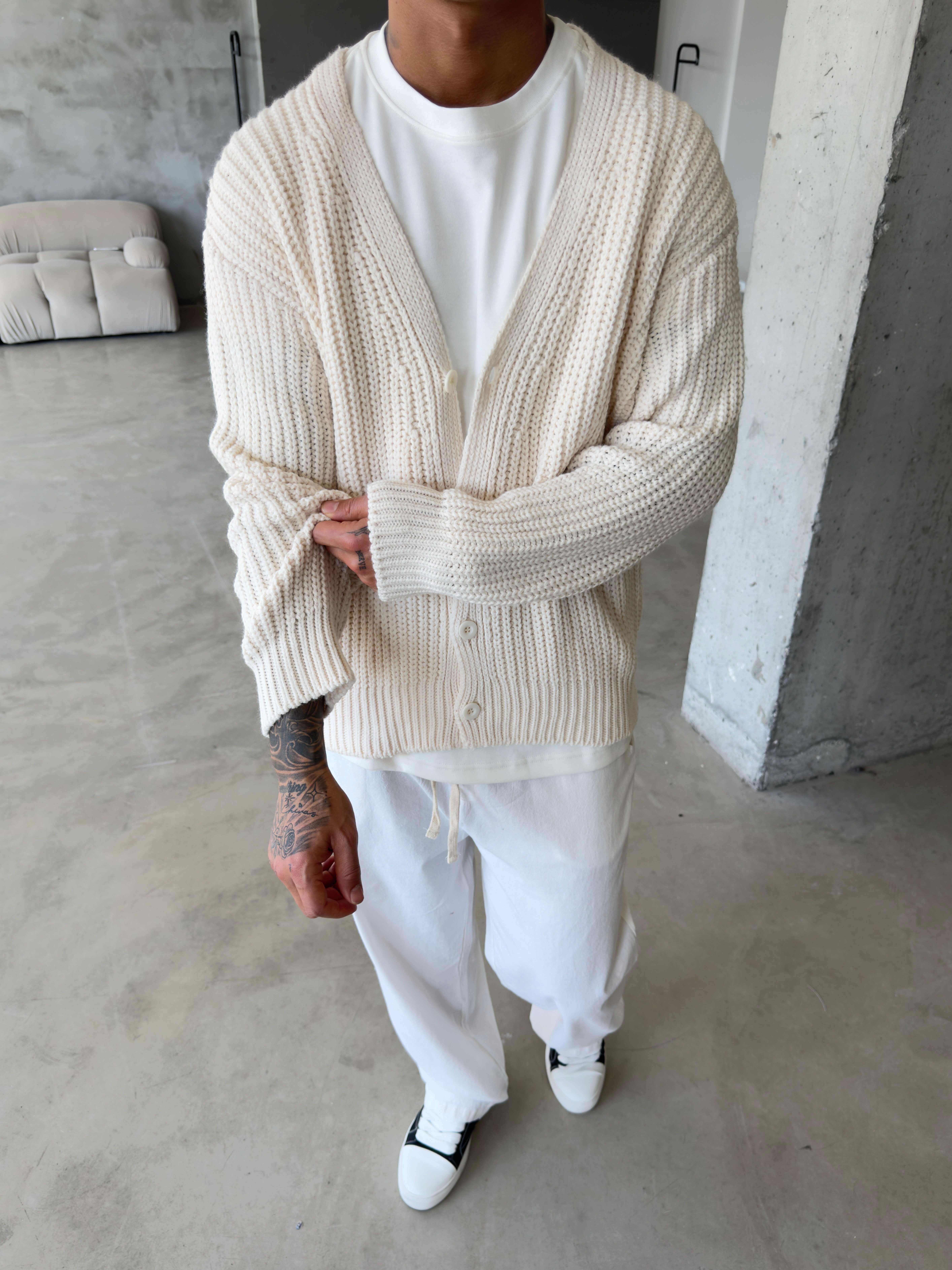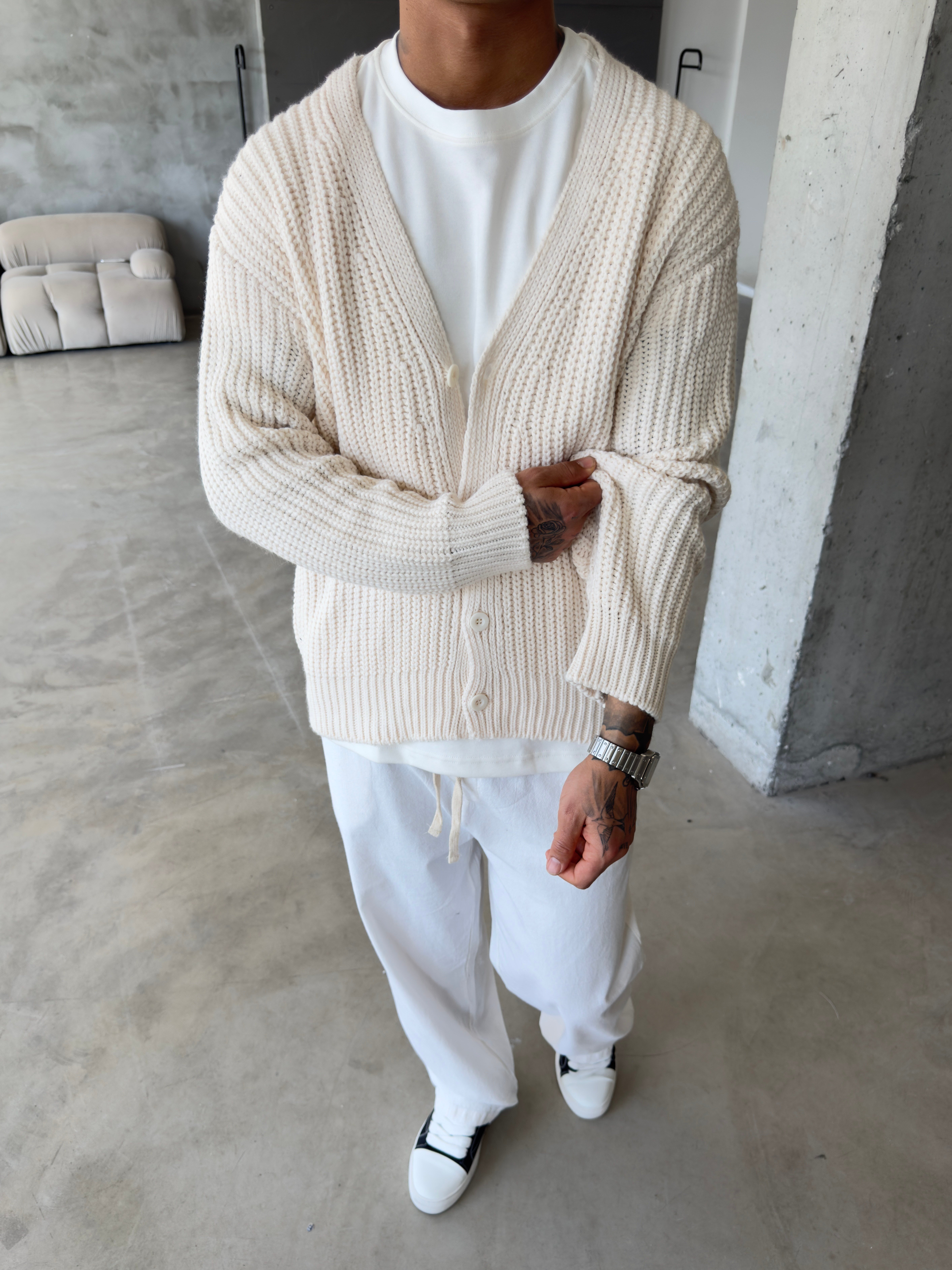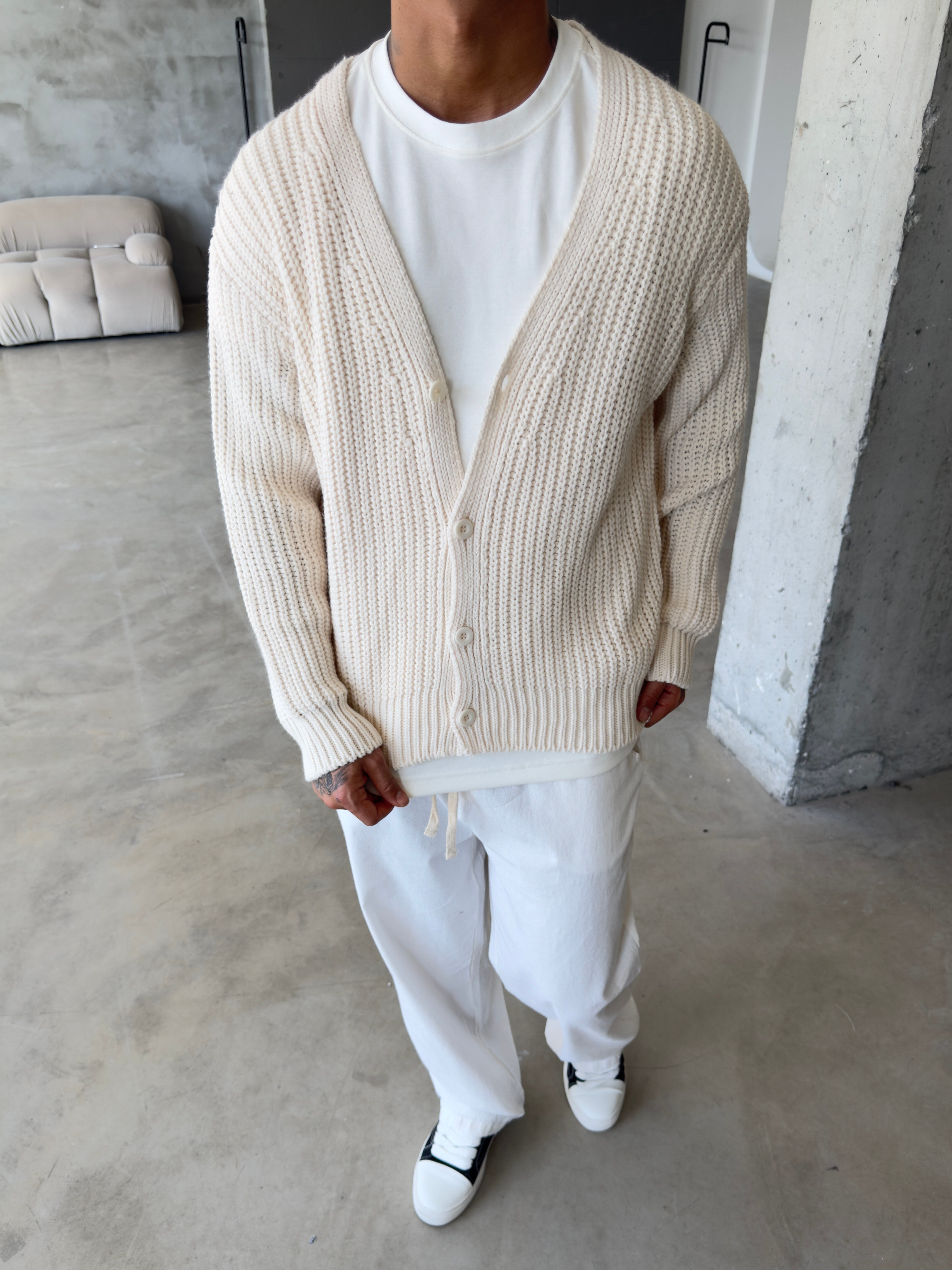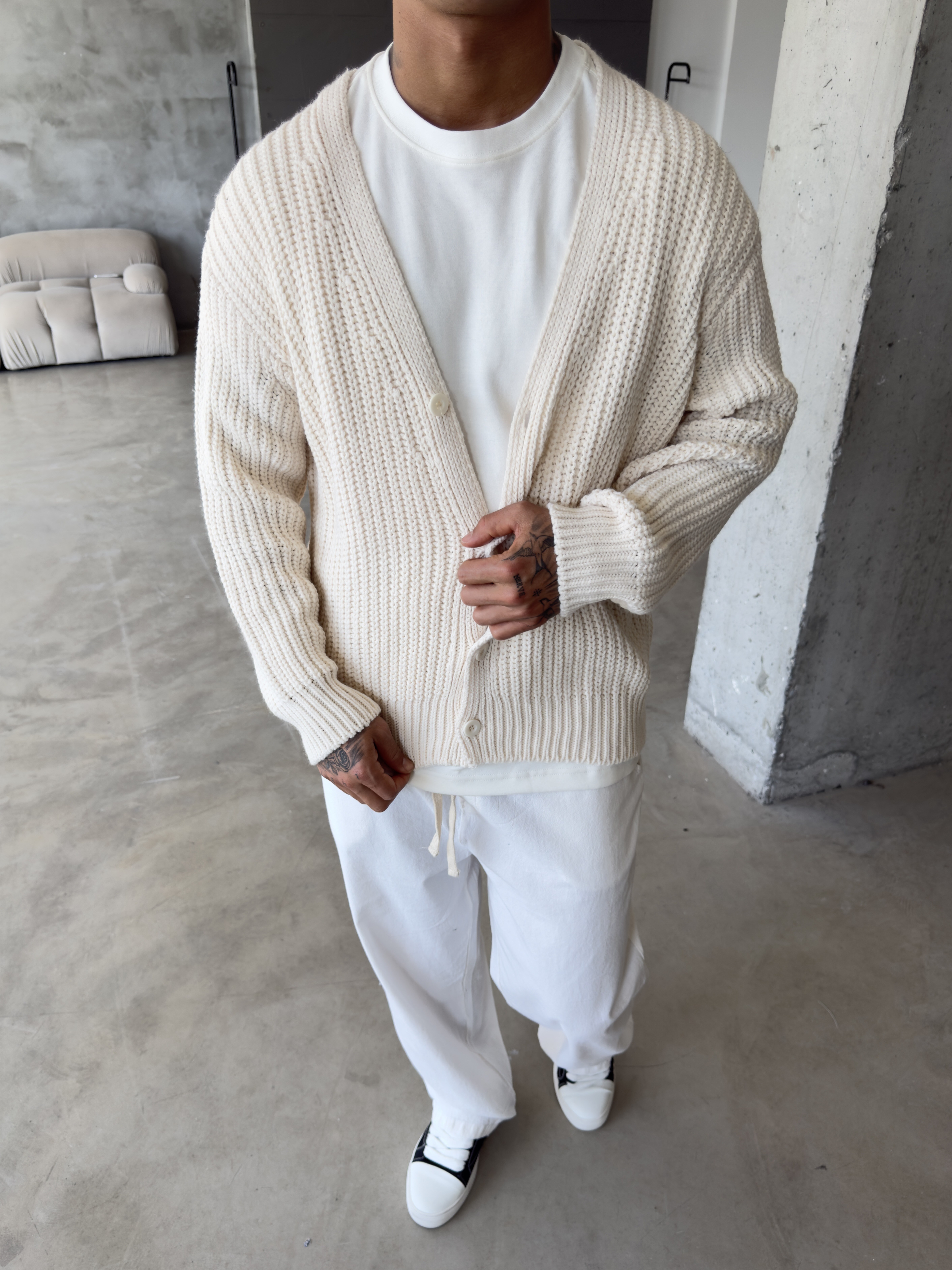 Örme Düğmeli Triko Hıkra - Bej (HRK.0011-Bej-S)