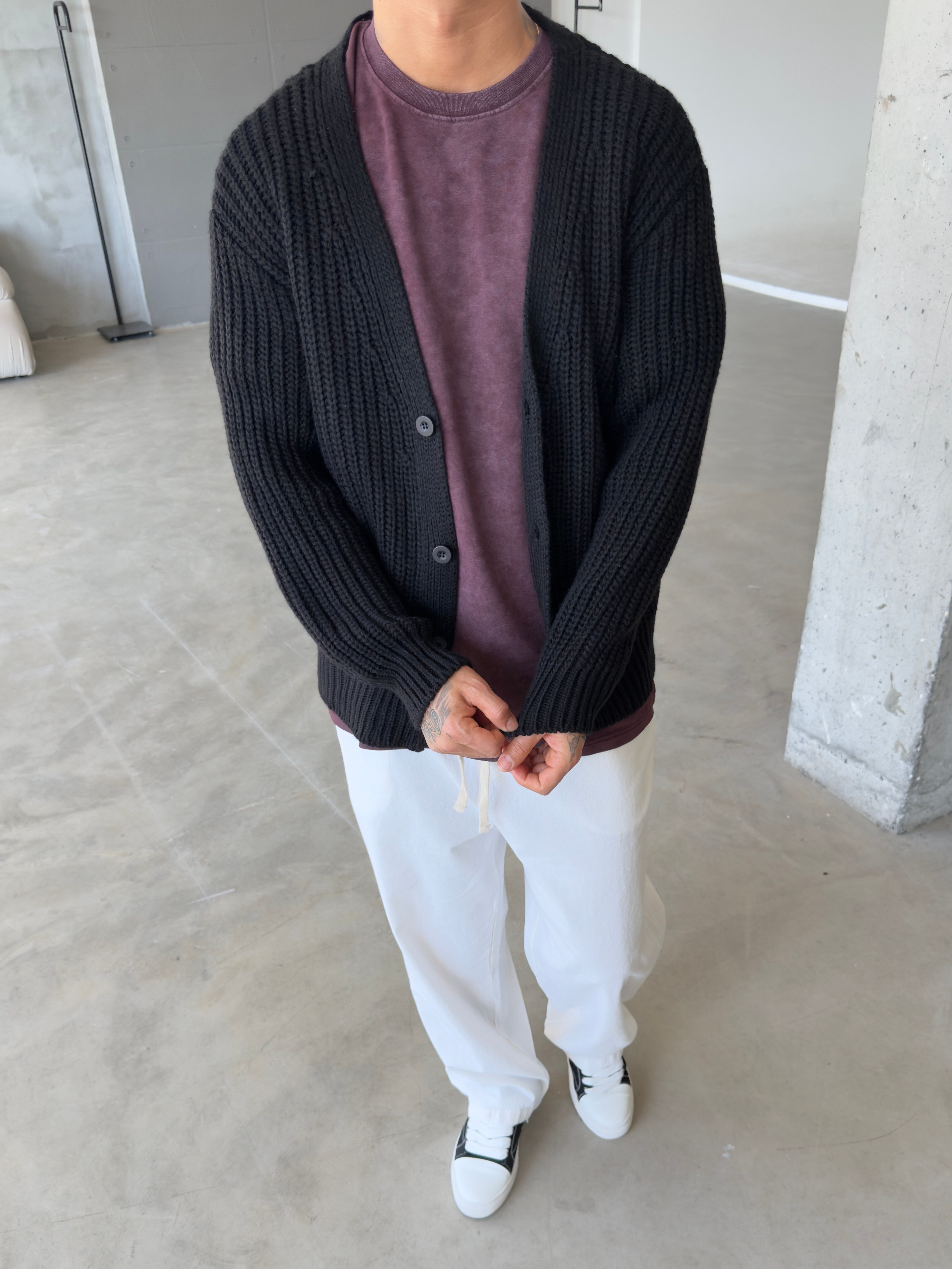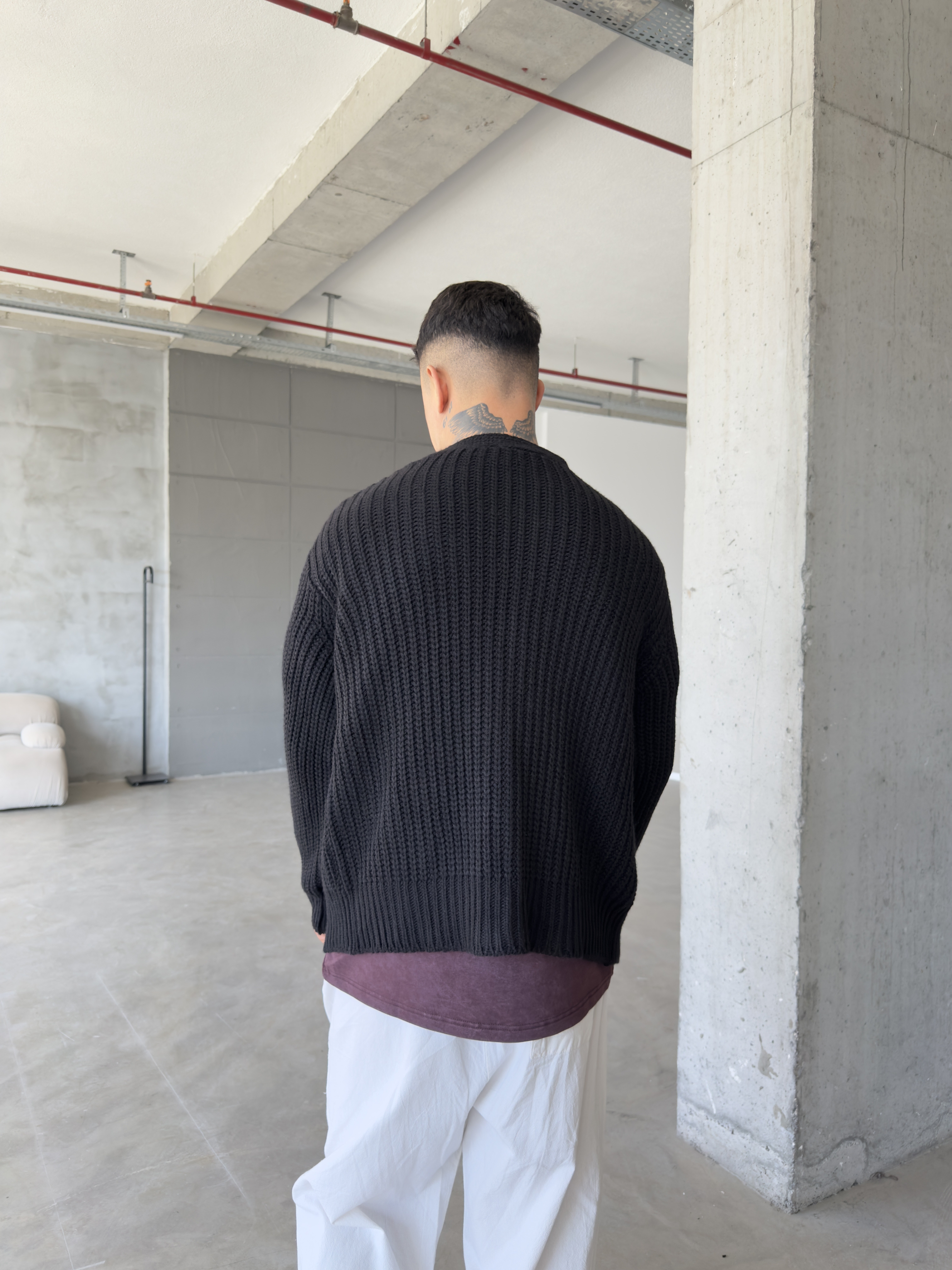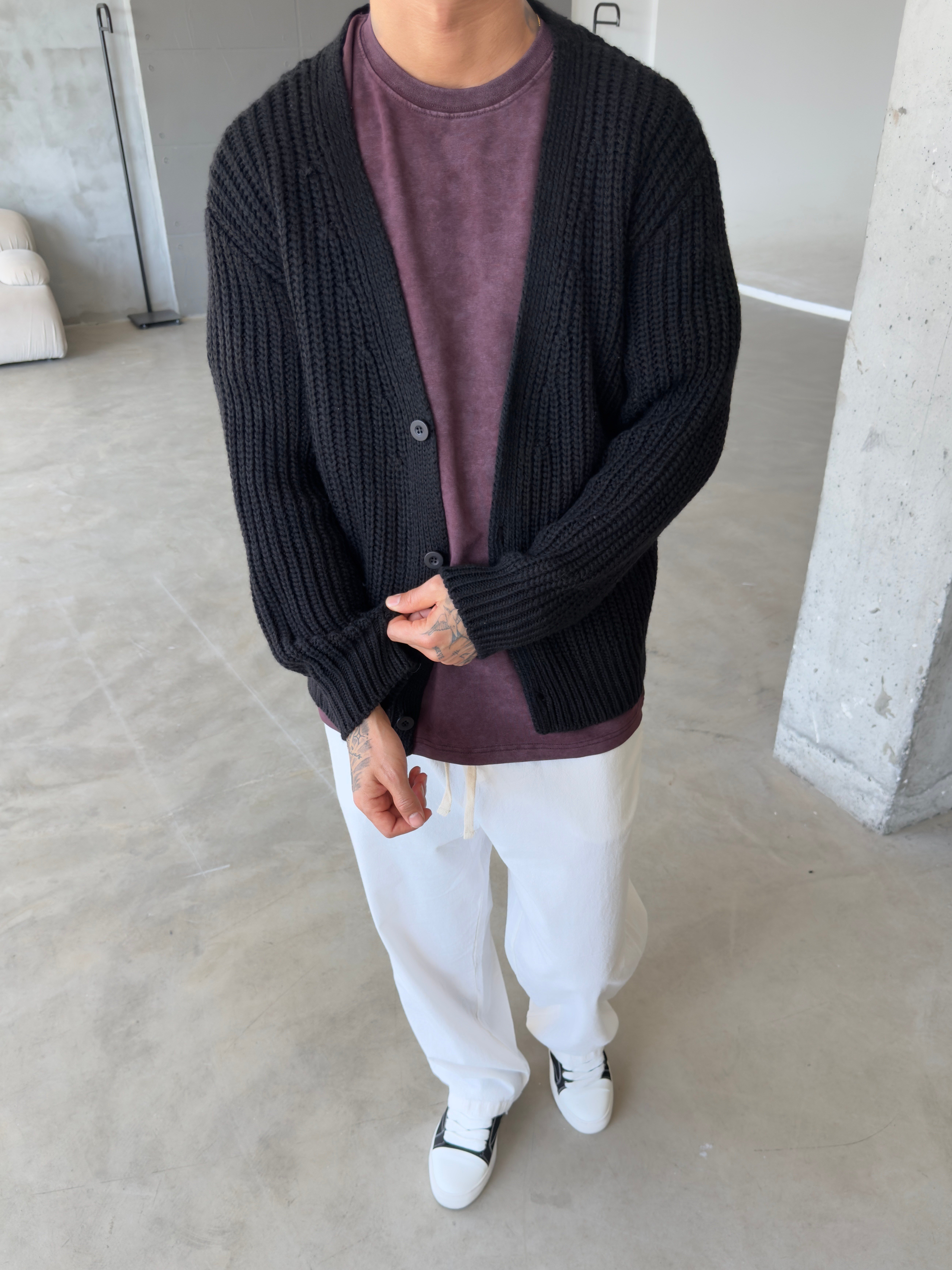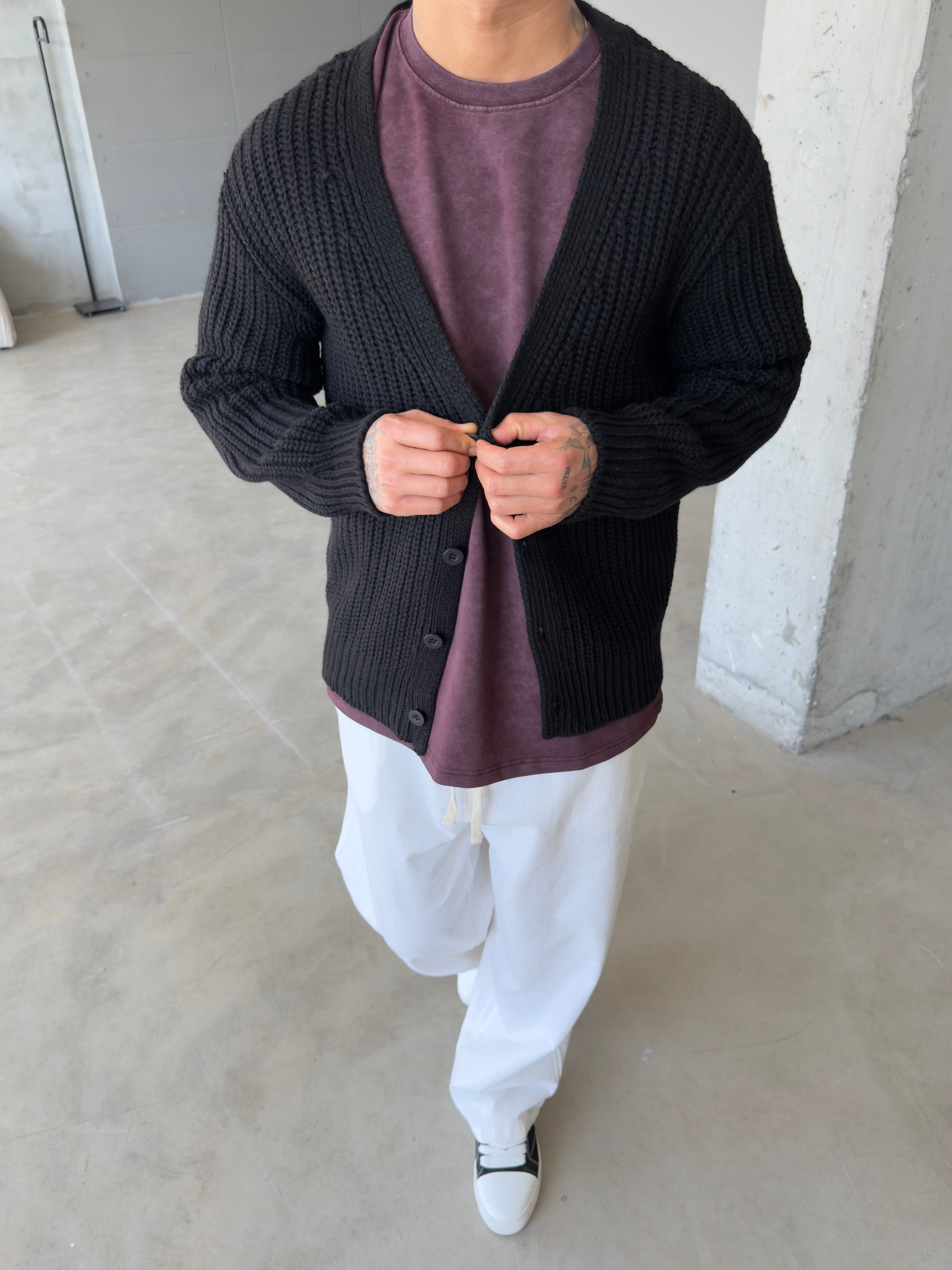 Örme Düğmeli Triko Hıkra - Siyah (HRK.0011-Siyah-S)