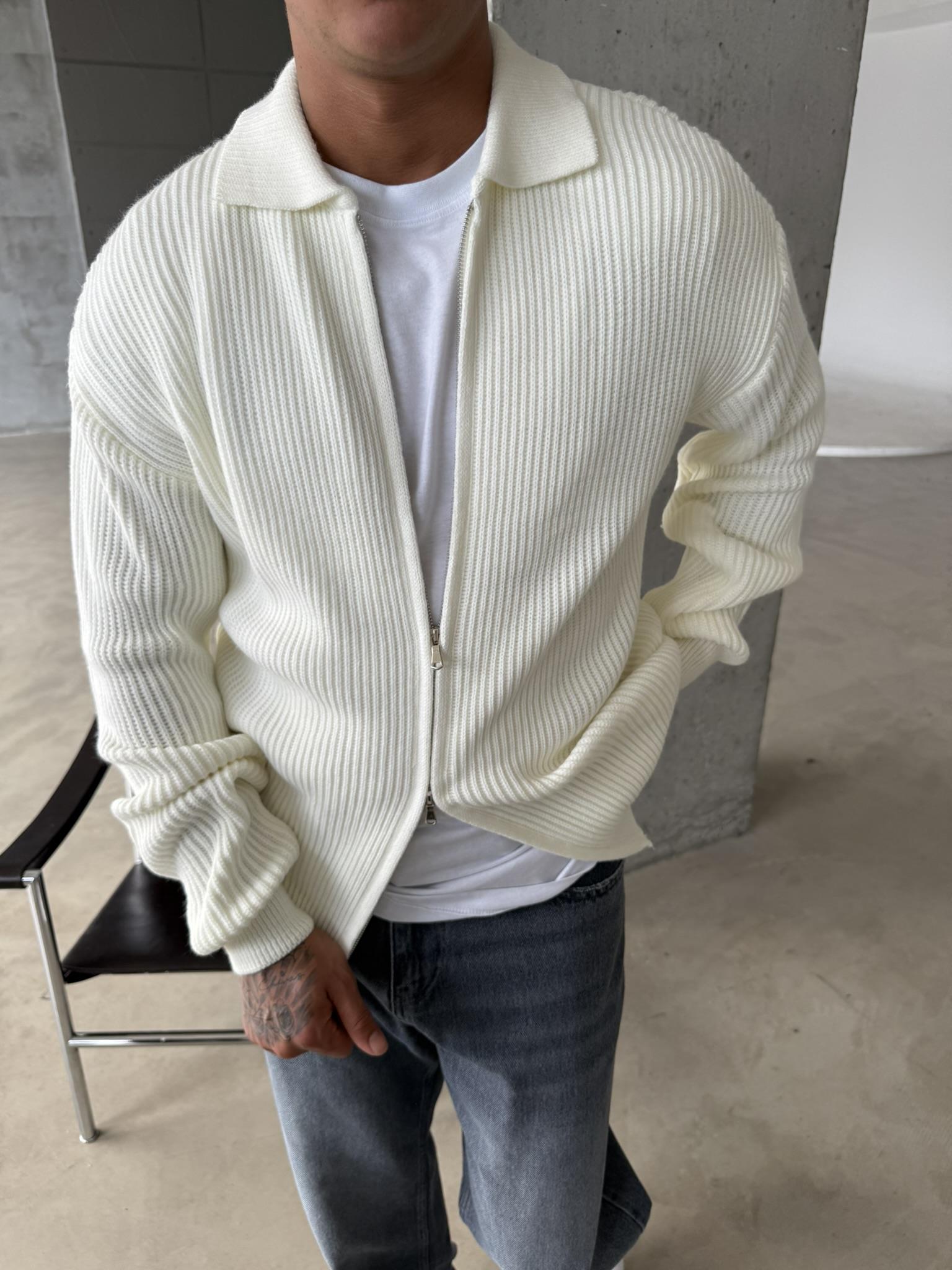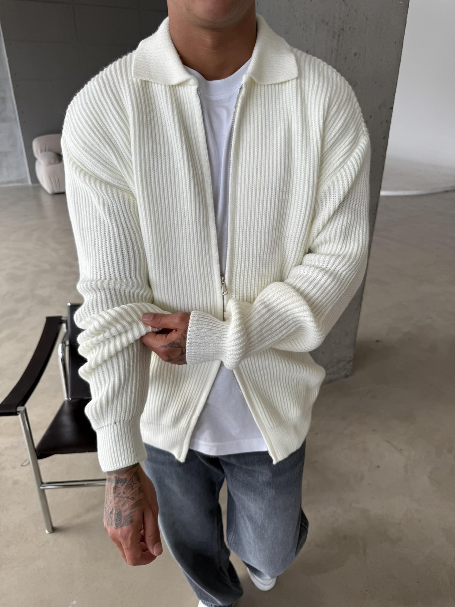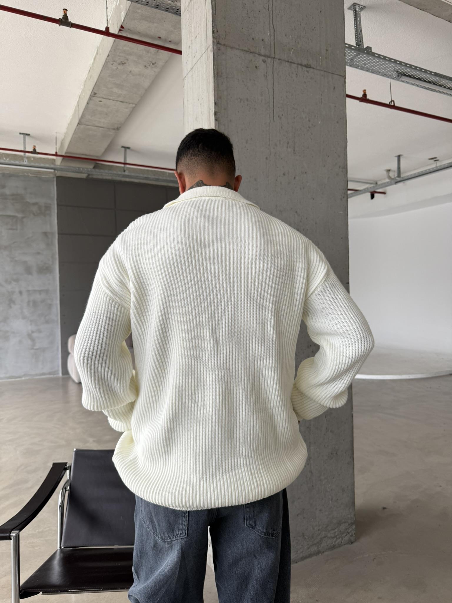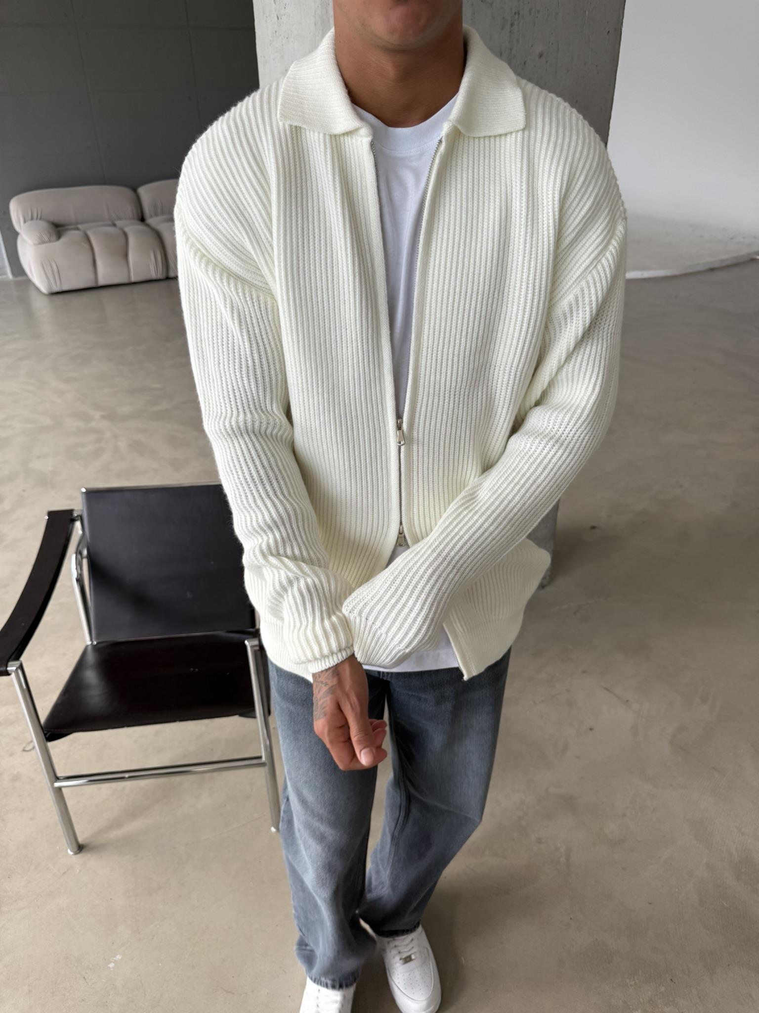 Örme Kumaş Cift Fermuar Triko Hırka - Beyaz (HRK.0003-Beyaz-S)