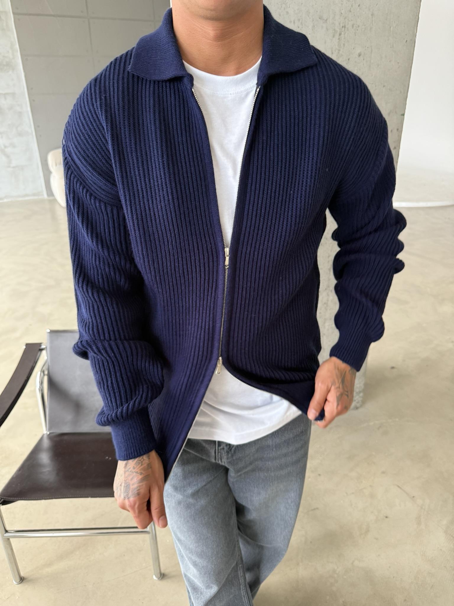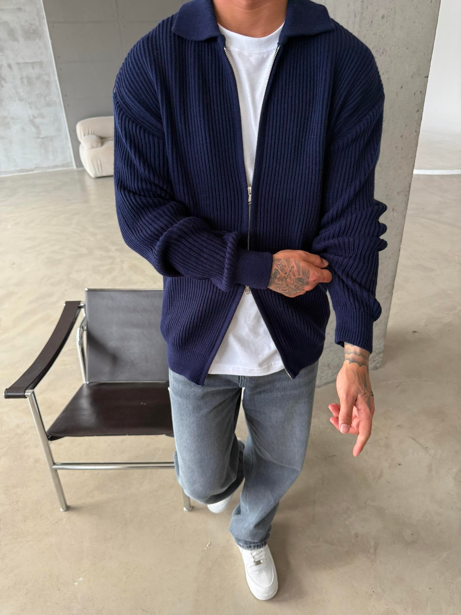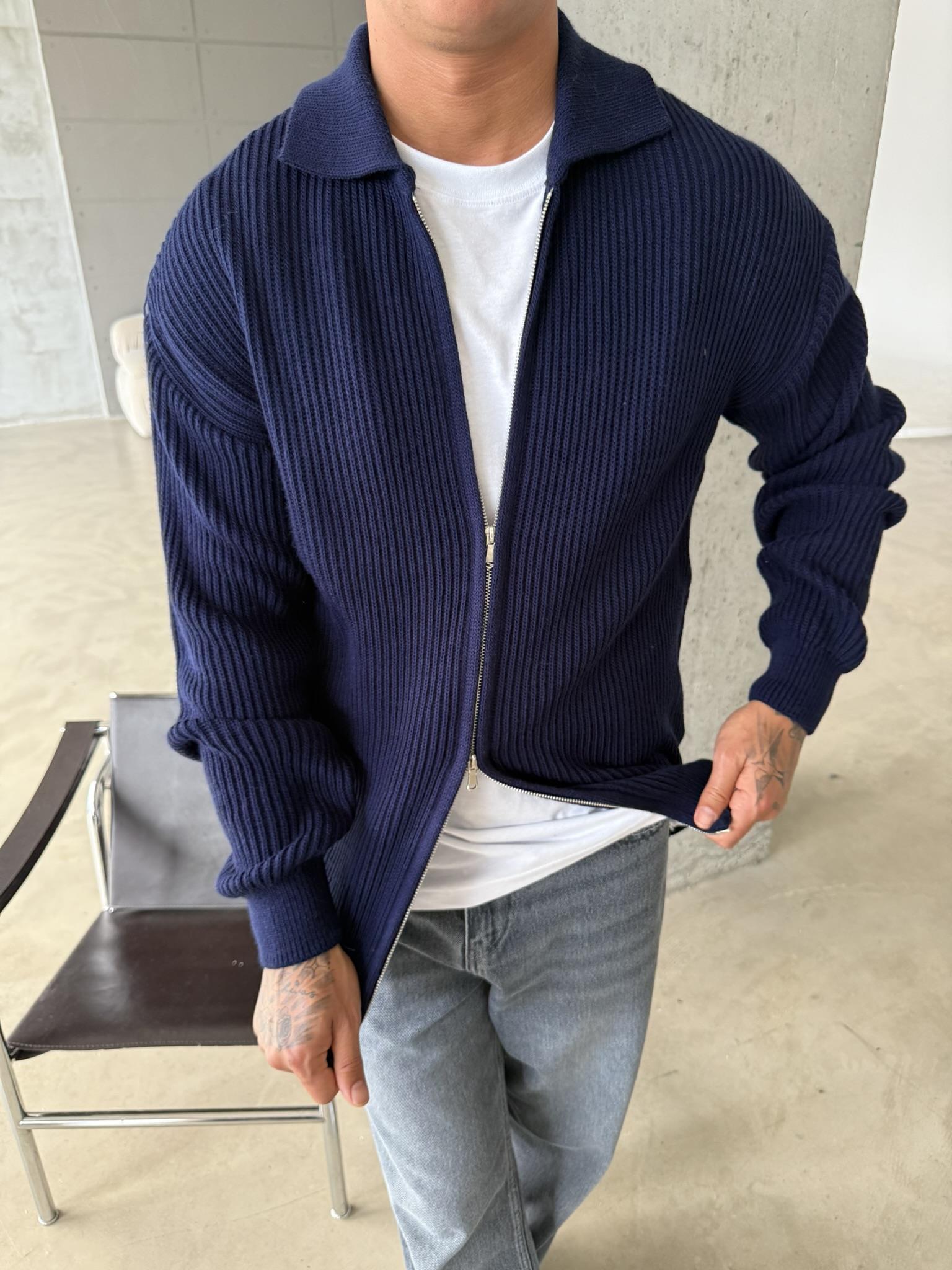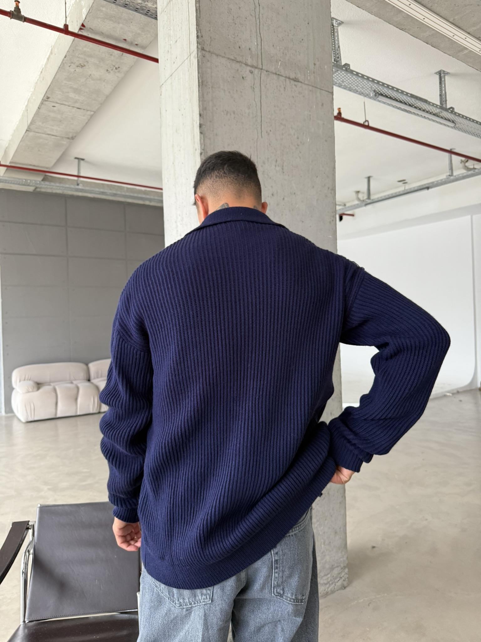 Örme Kumaş Cift Fermuar Triko Hırka - Lacivert (HRK.0003-Lacivert-S)