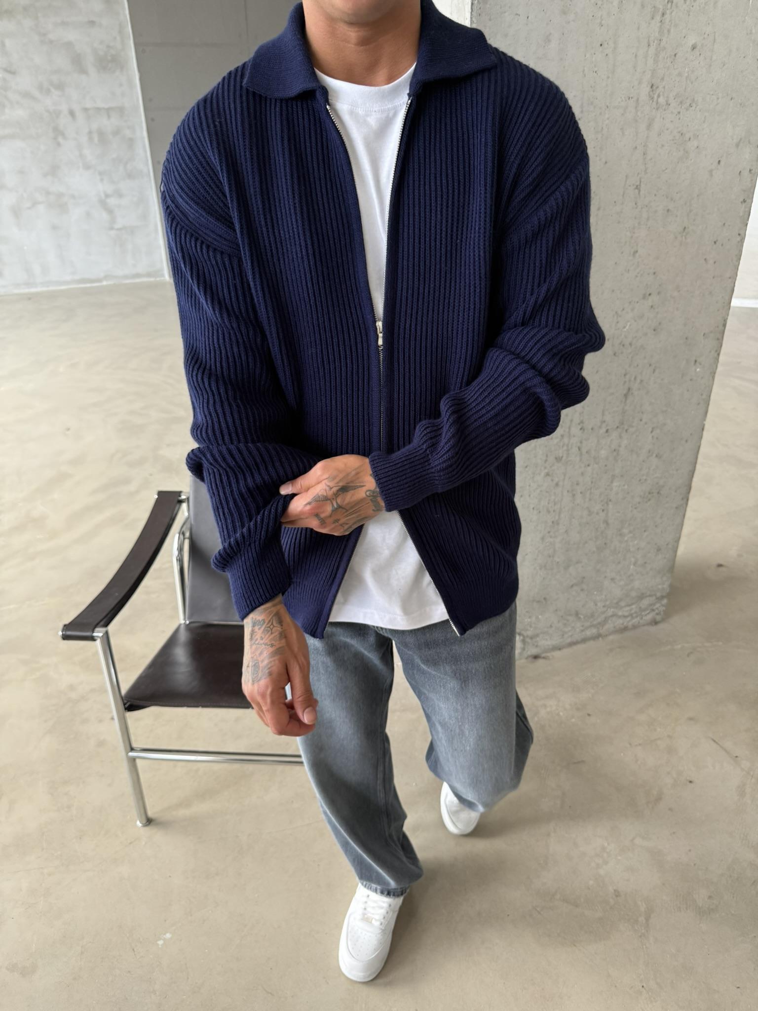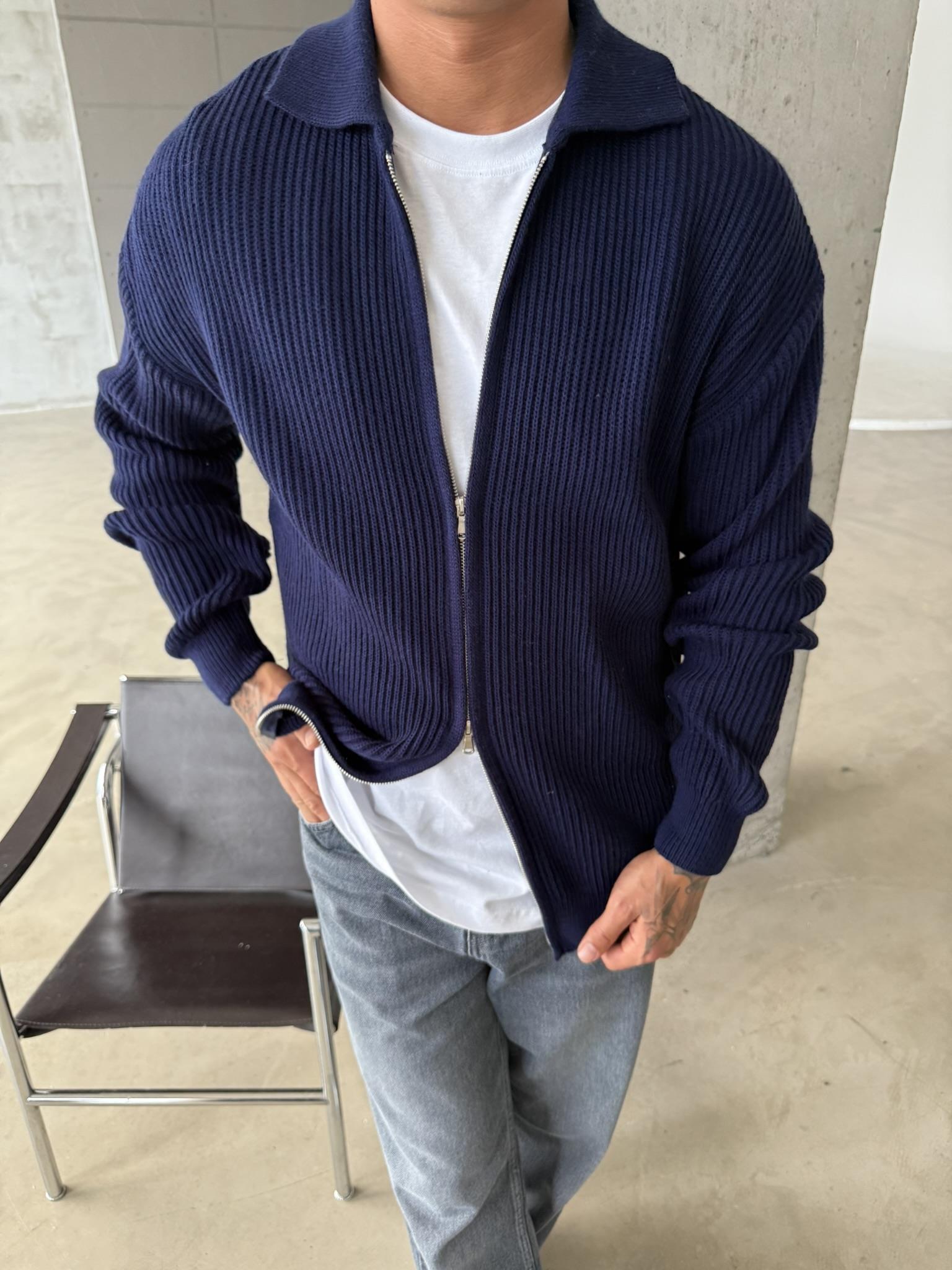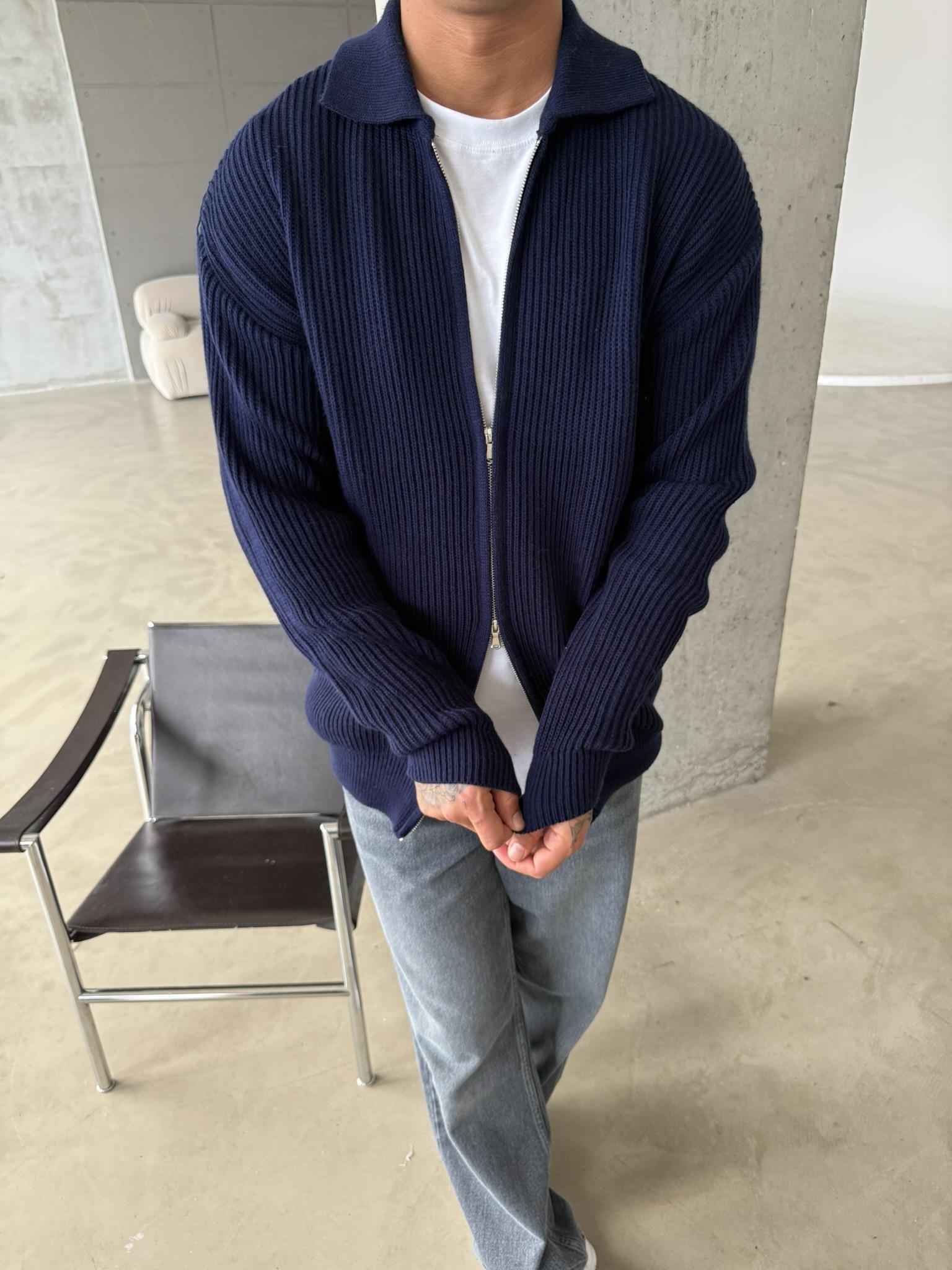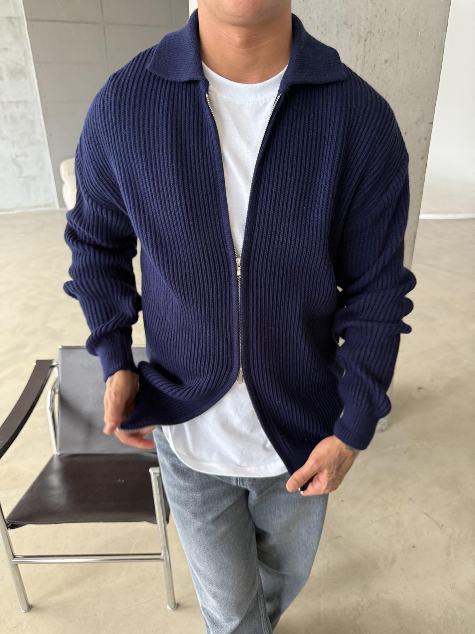 Örme Kumaş Cift Fermuar Triko Hırka - Lacivert (HRK.0003-Lacivert-S)