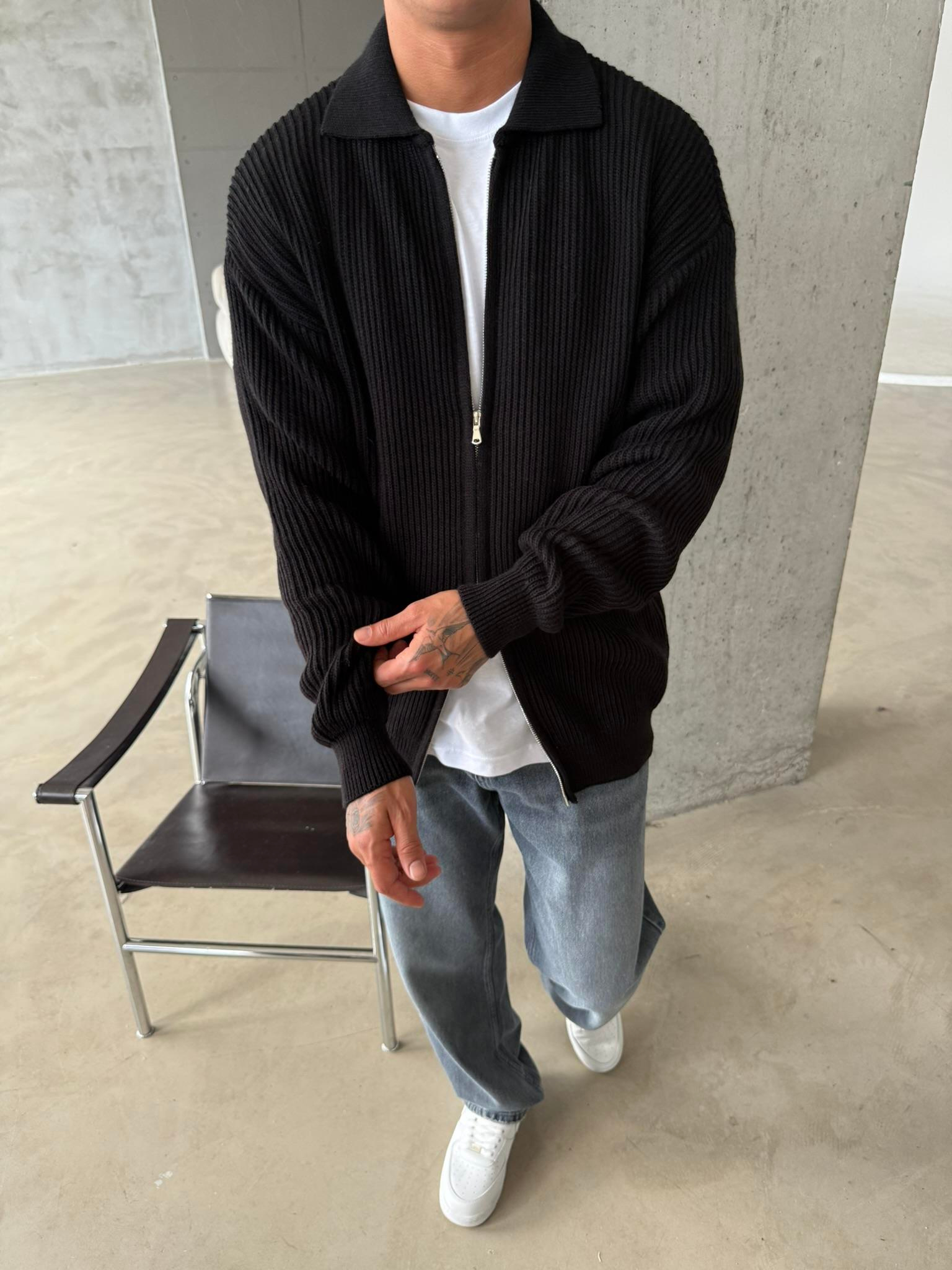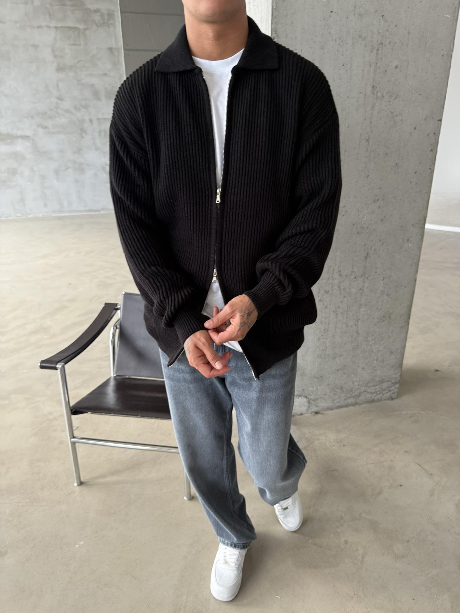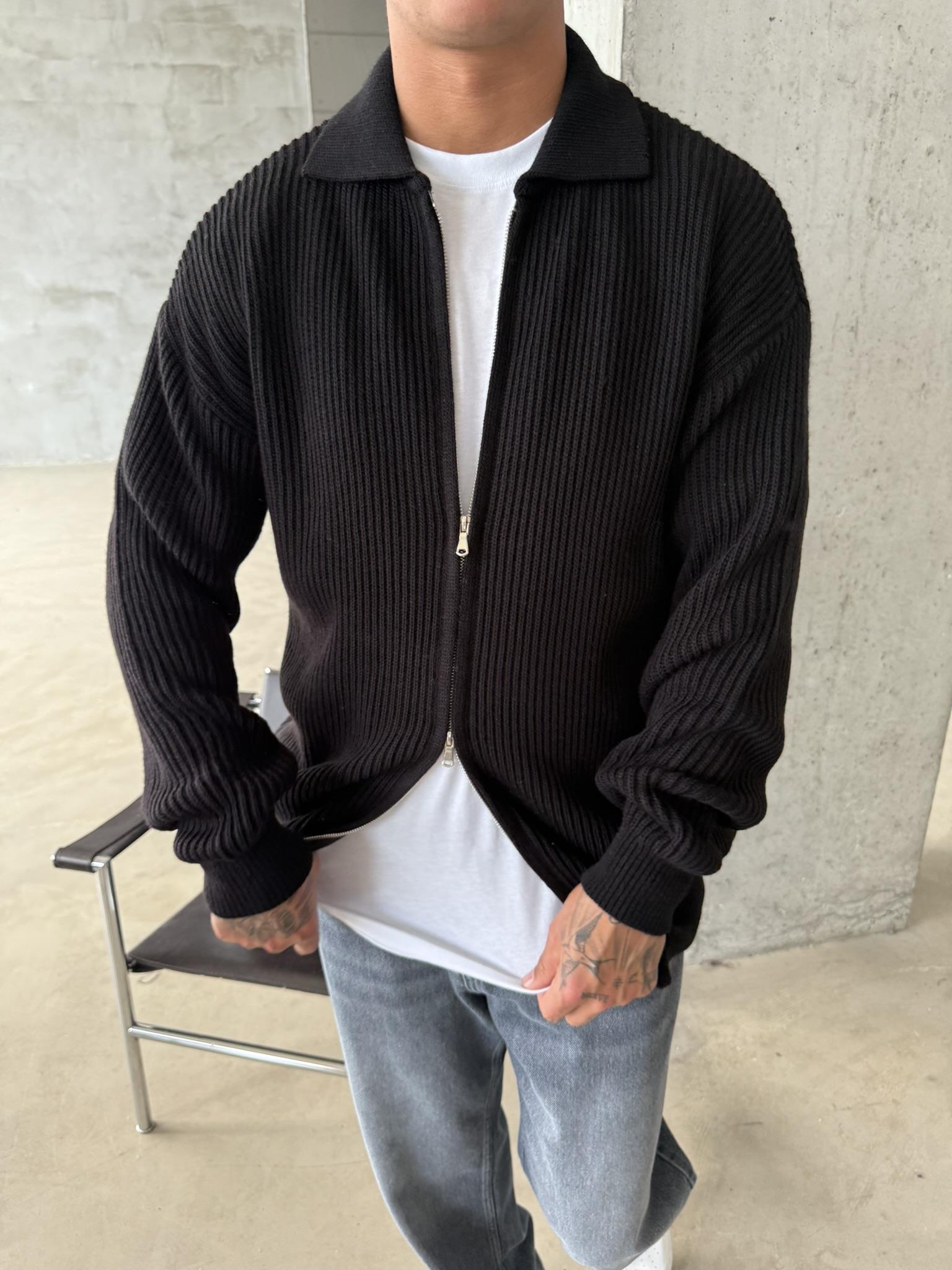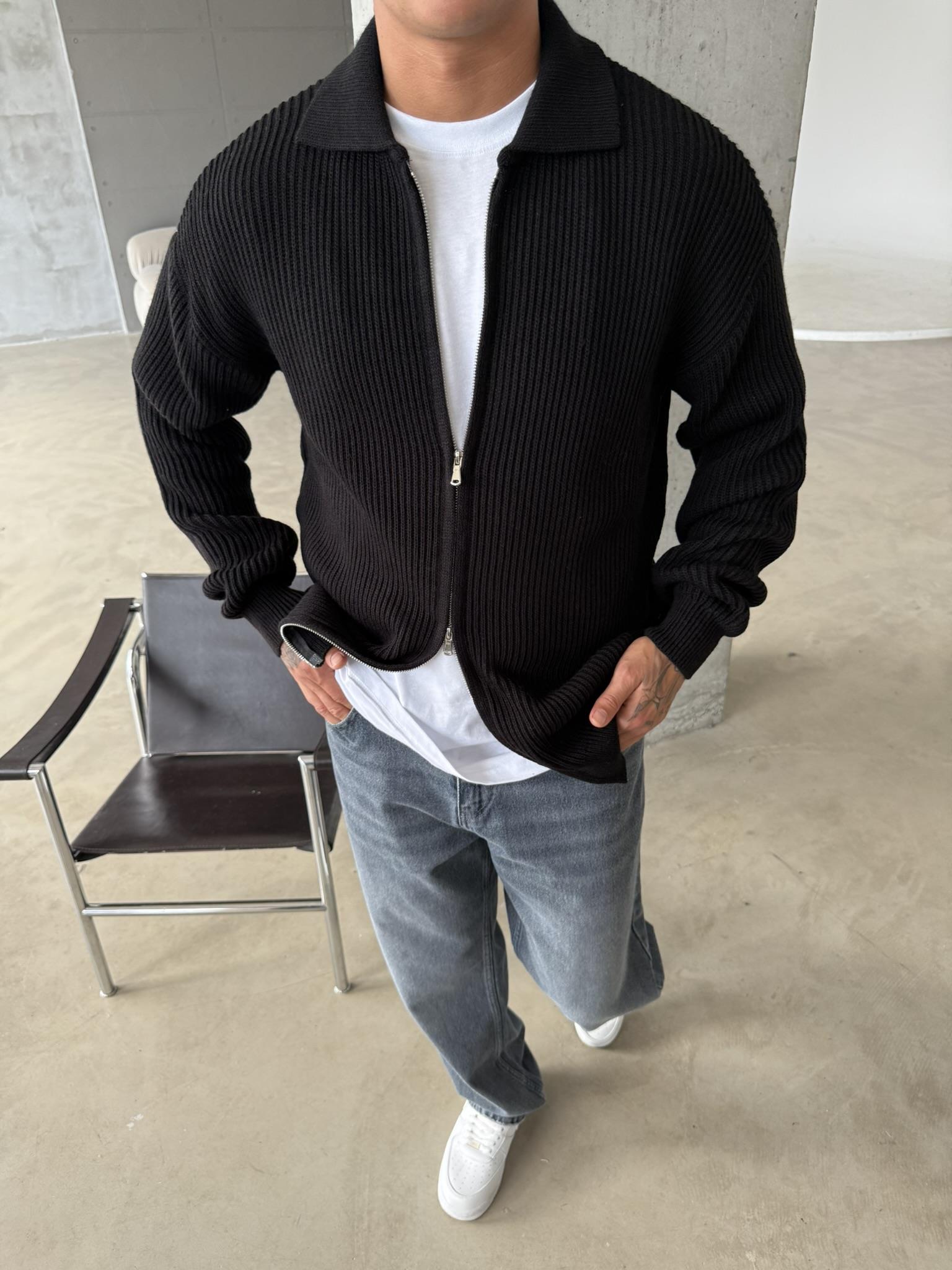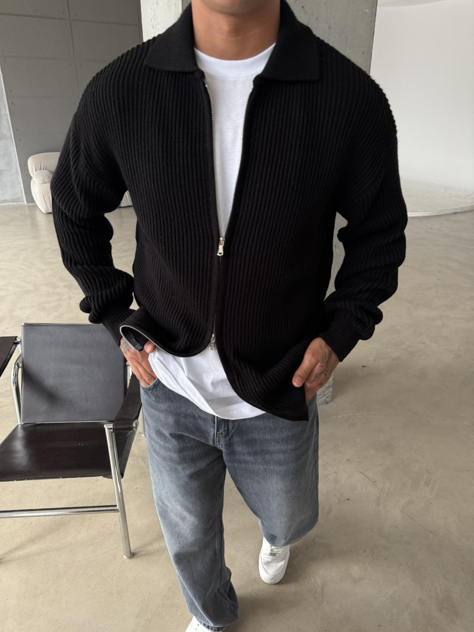 Örme Kumaş Cift Fermuar Triko Hırka - Siyah (HRK.0003-Siyah-S)