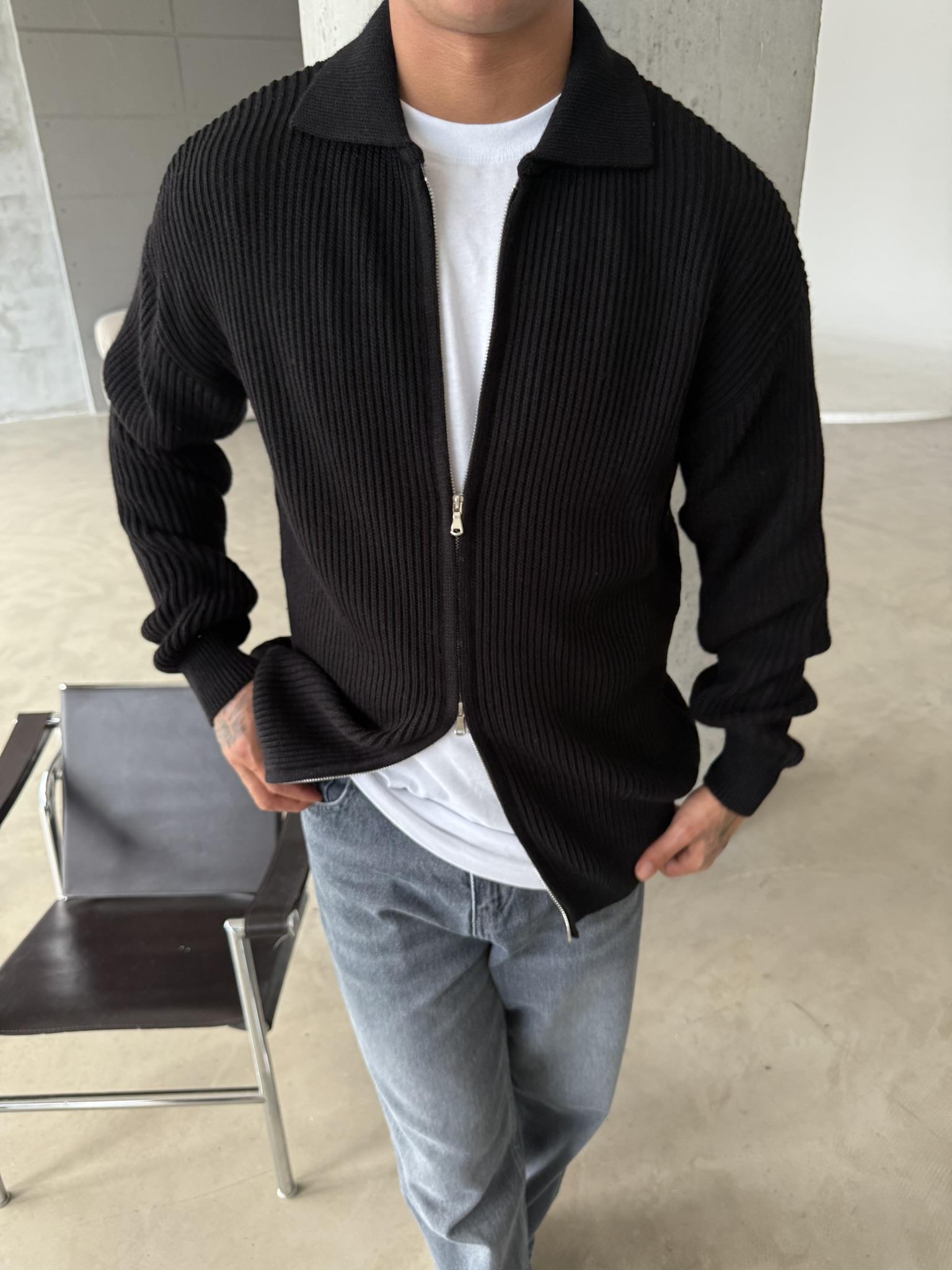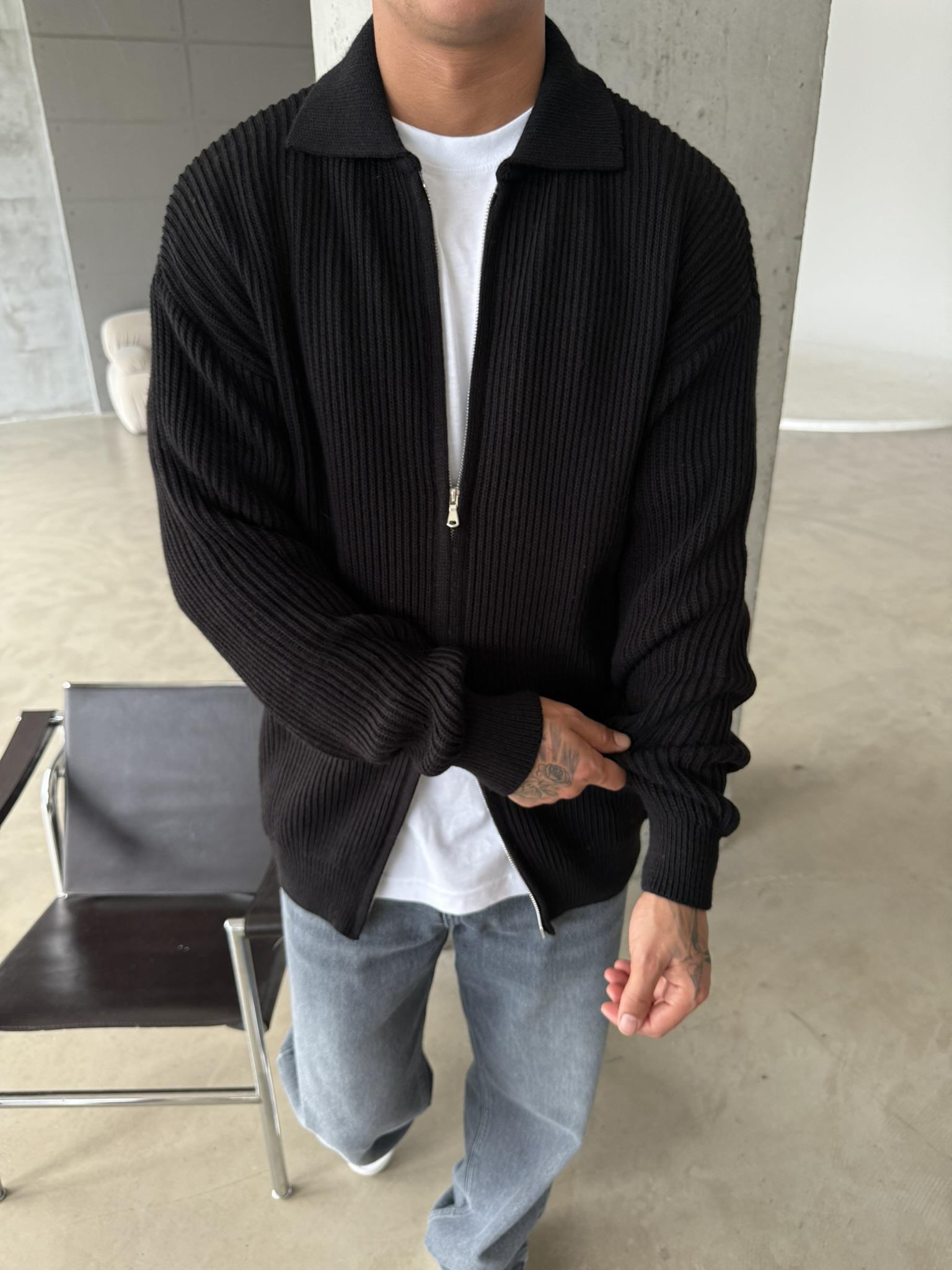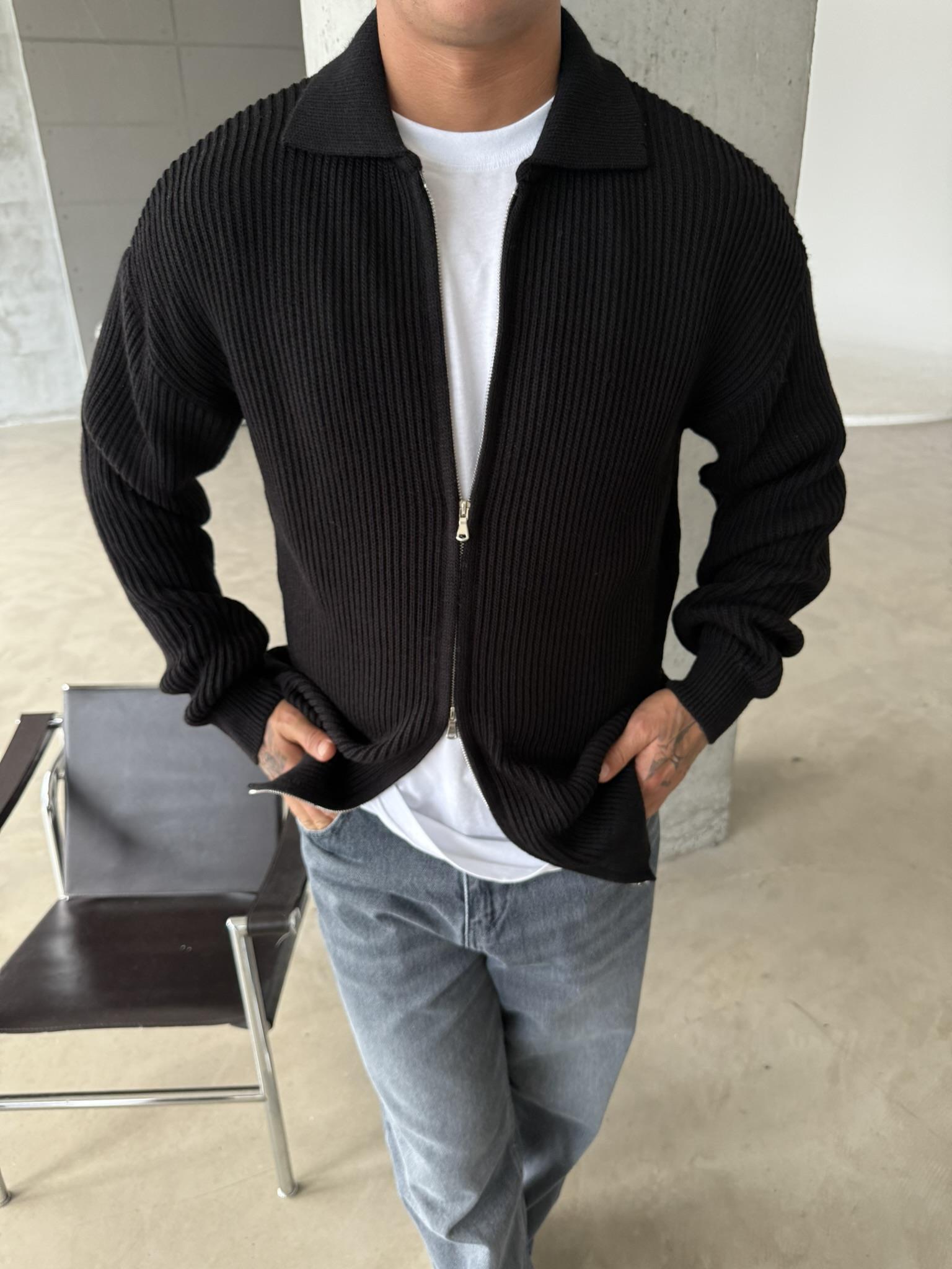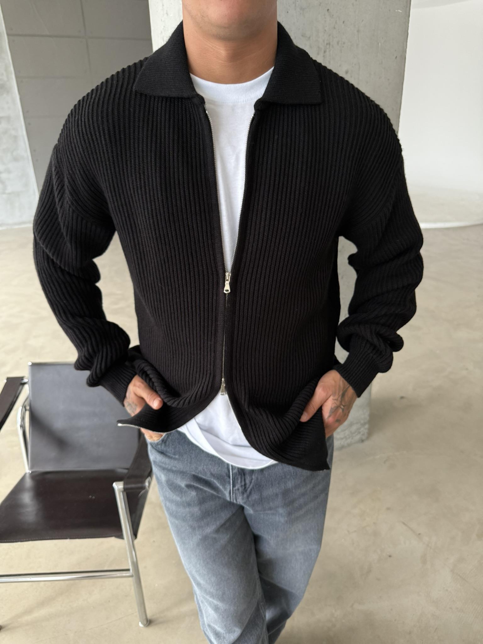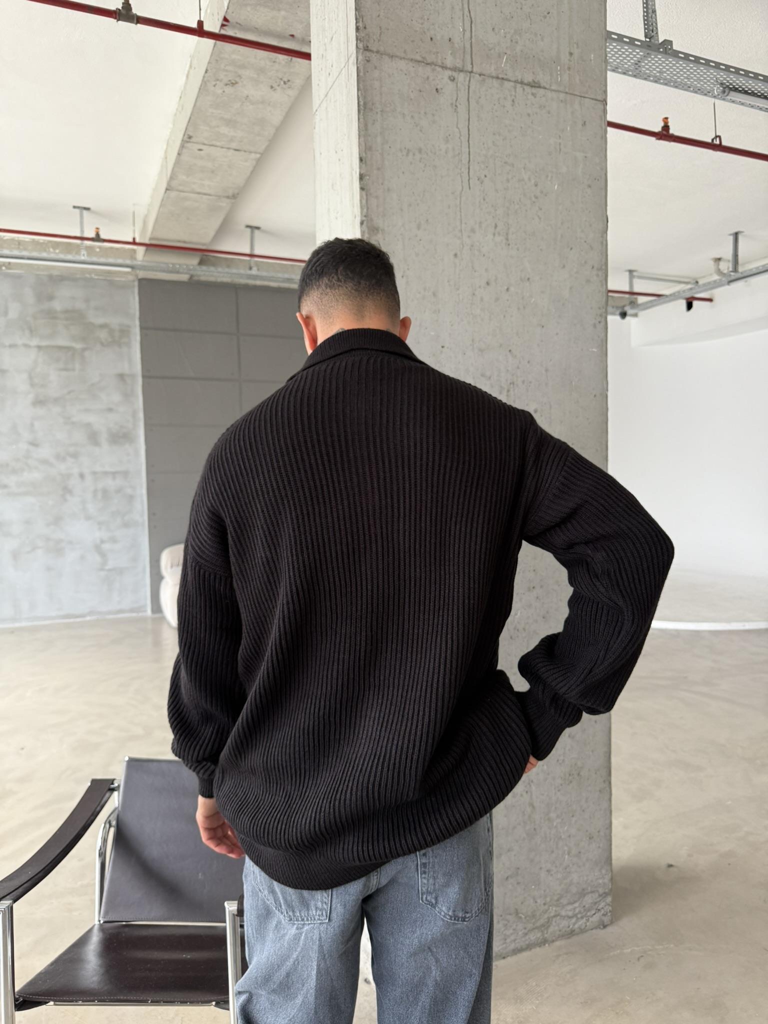 Örme Kumaş Cift Fermuar Triko Hırka - Siyah (HRK.0003-Siyah-S)
