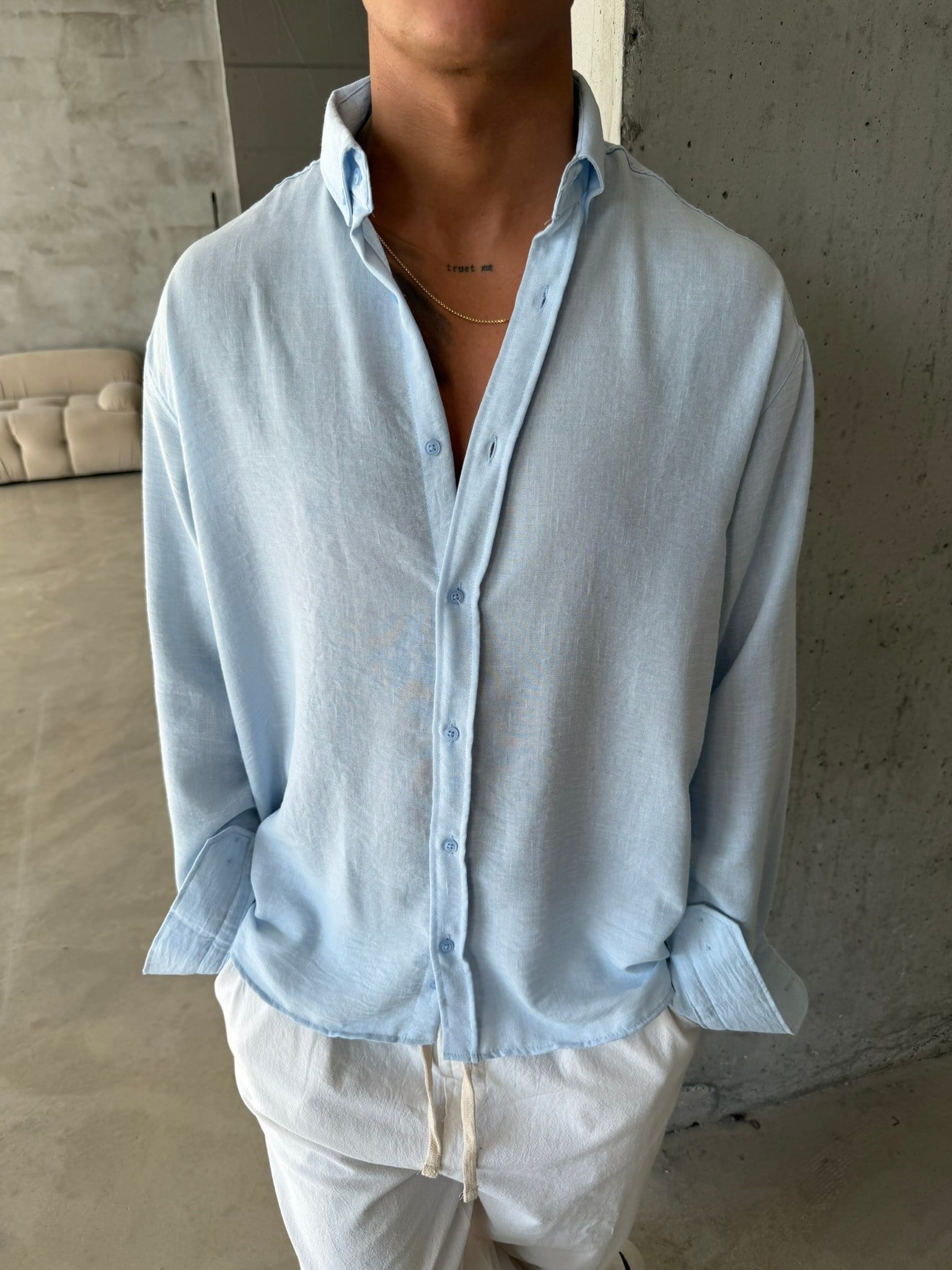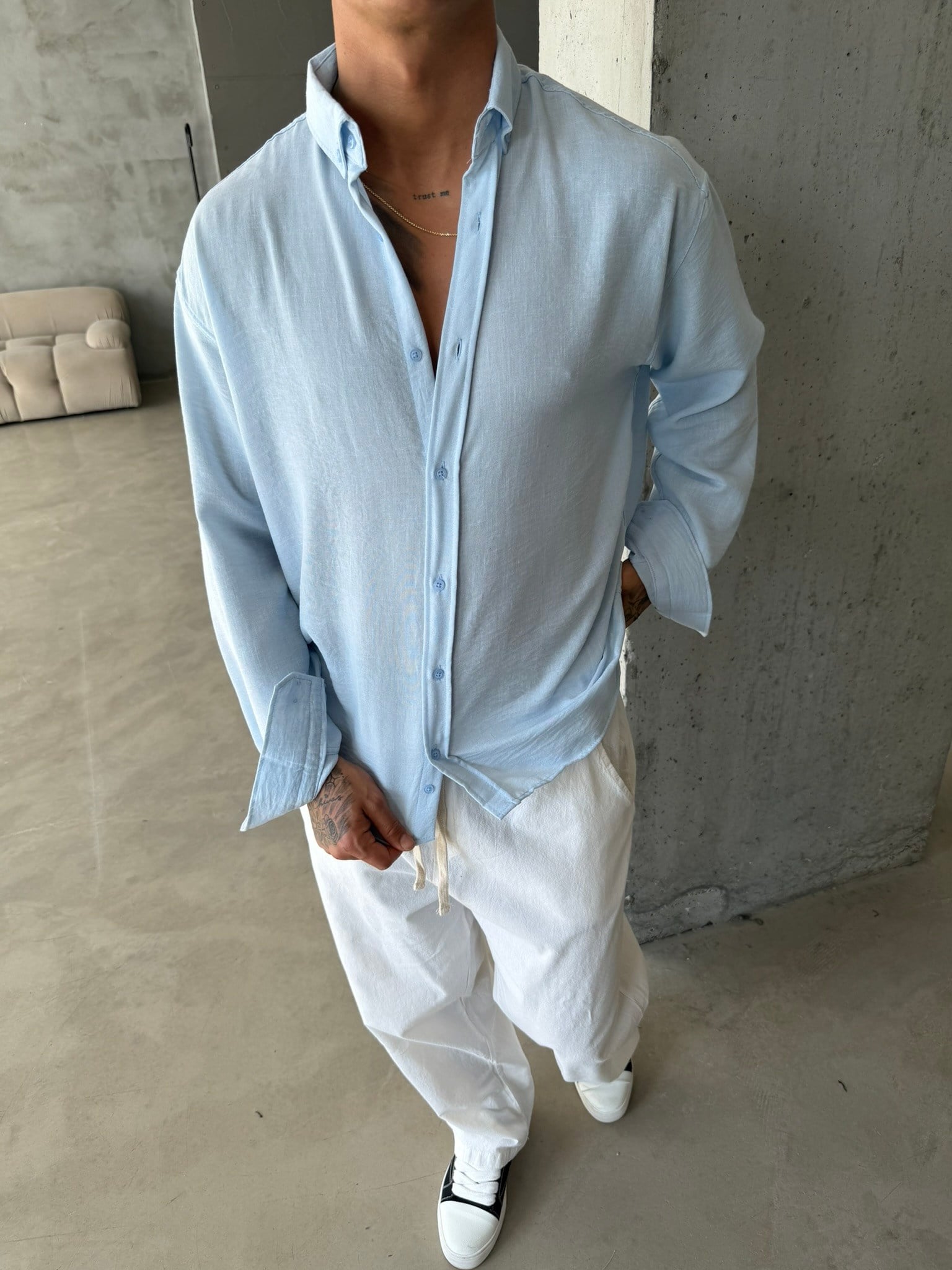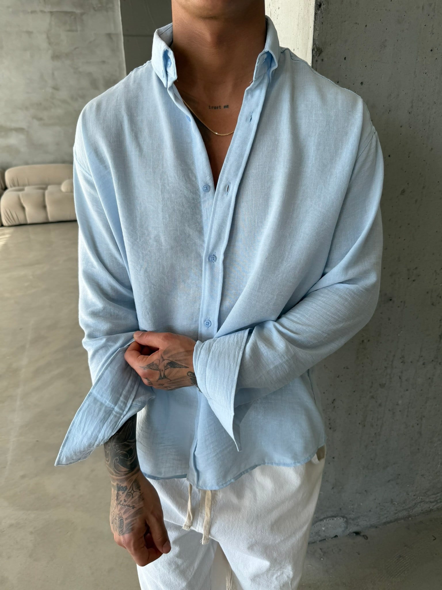 Pera Keten Basic Gömlek - Bebe Mavi (GML.0042-Bebe Mavi-S)