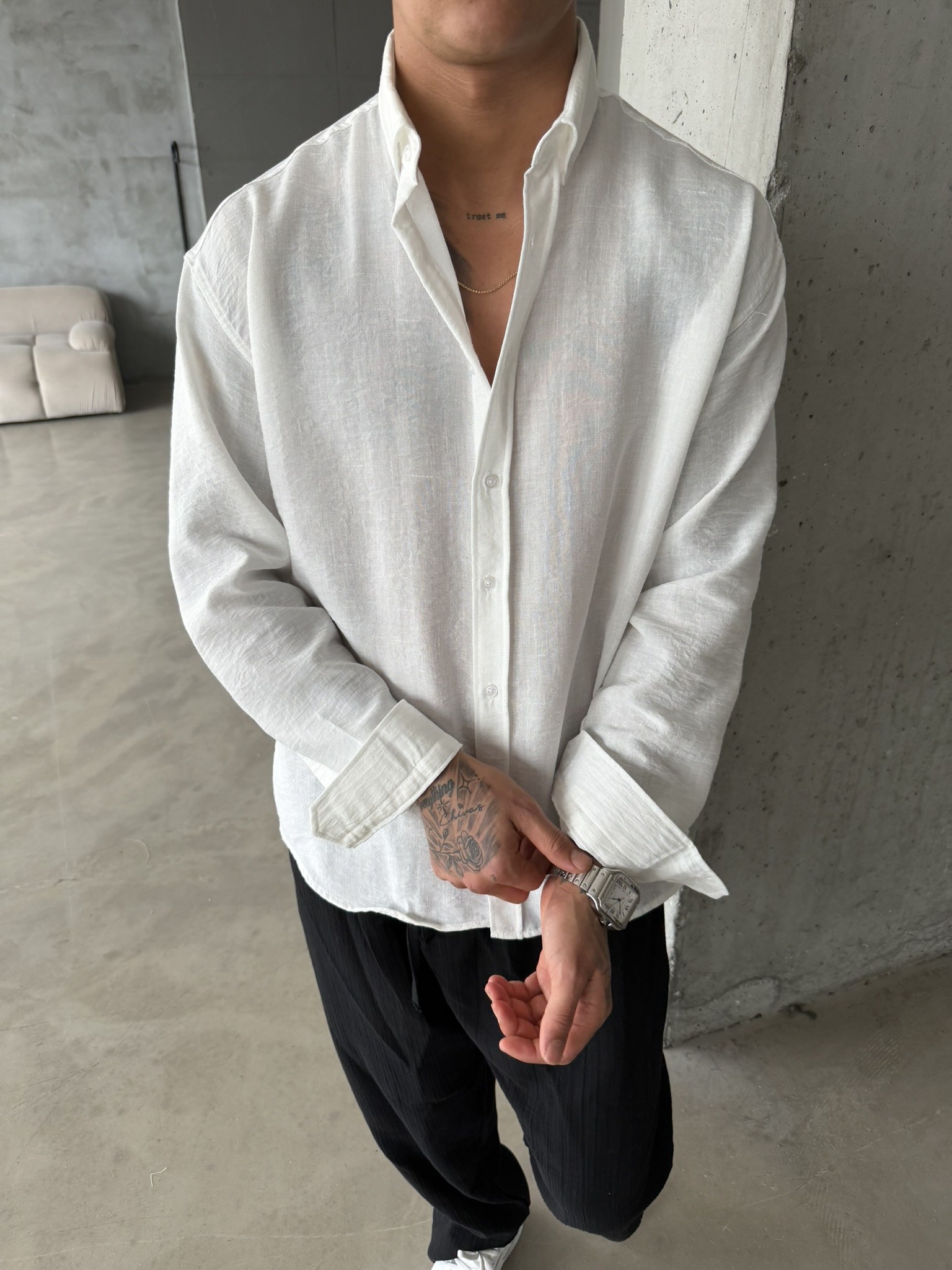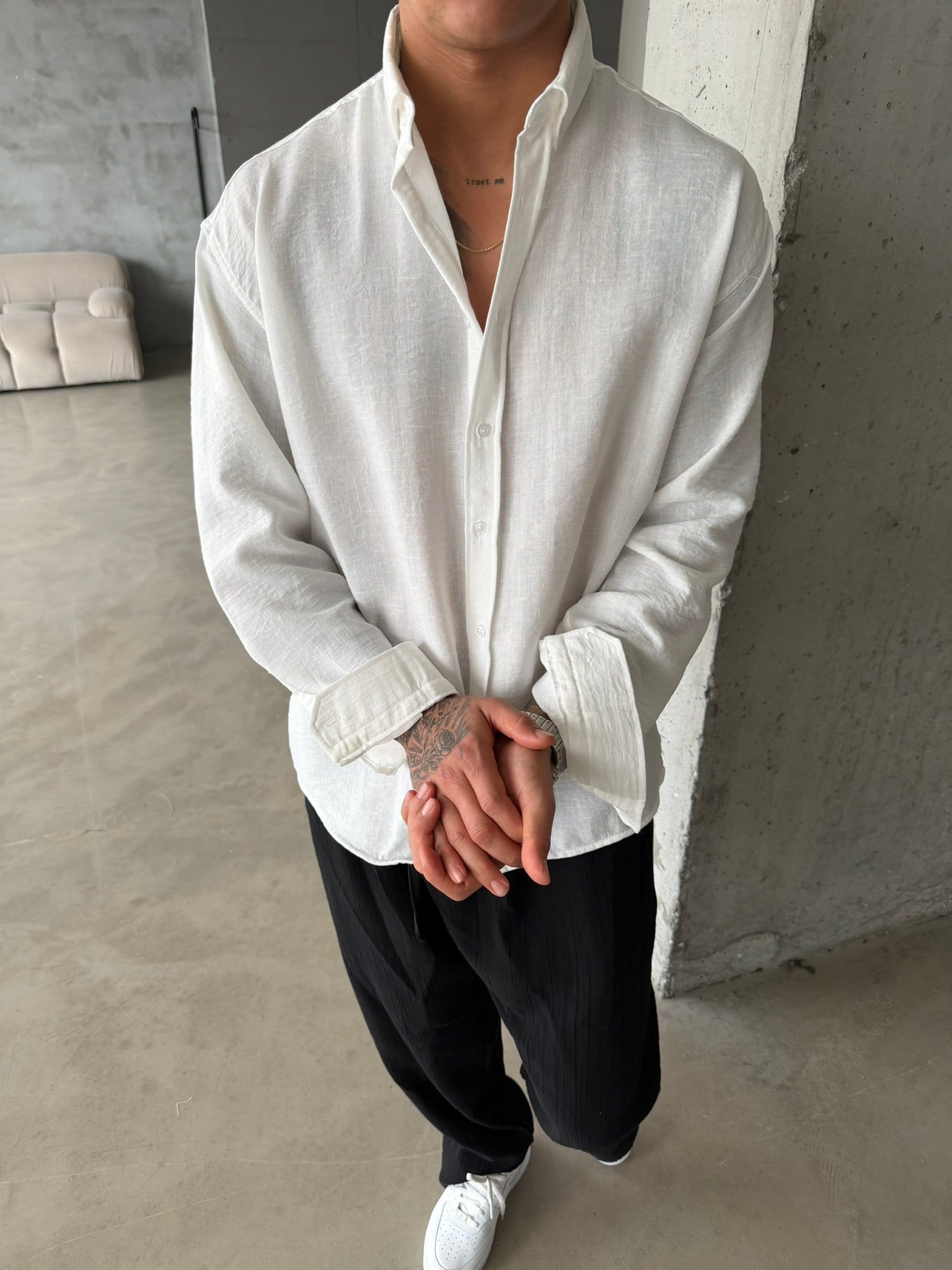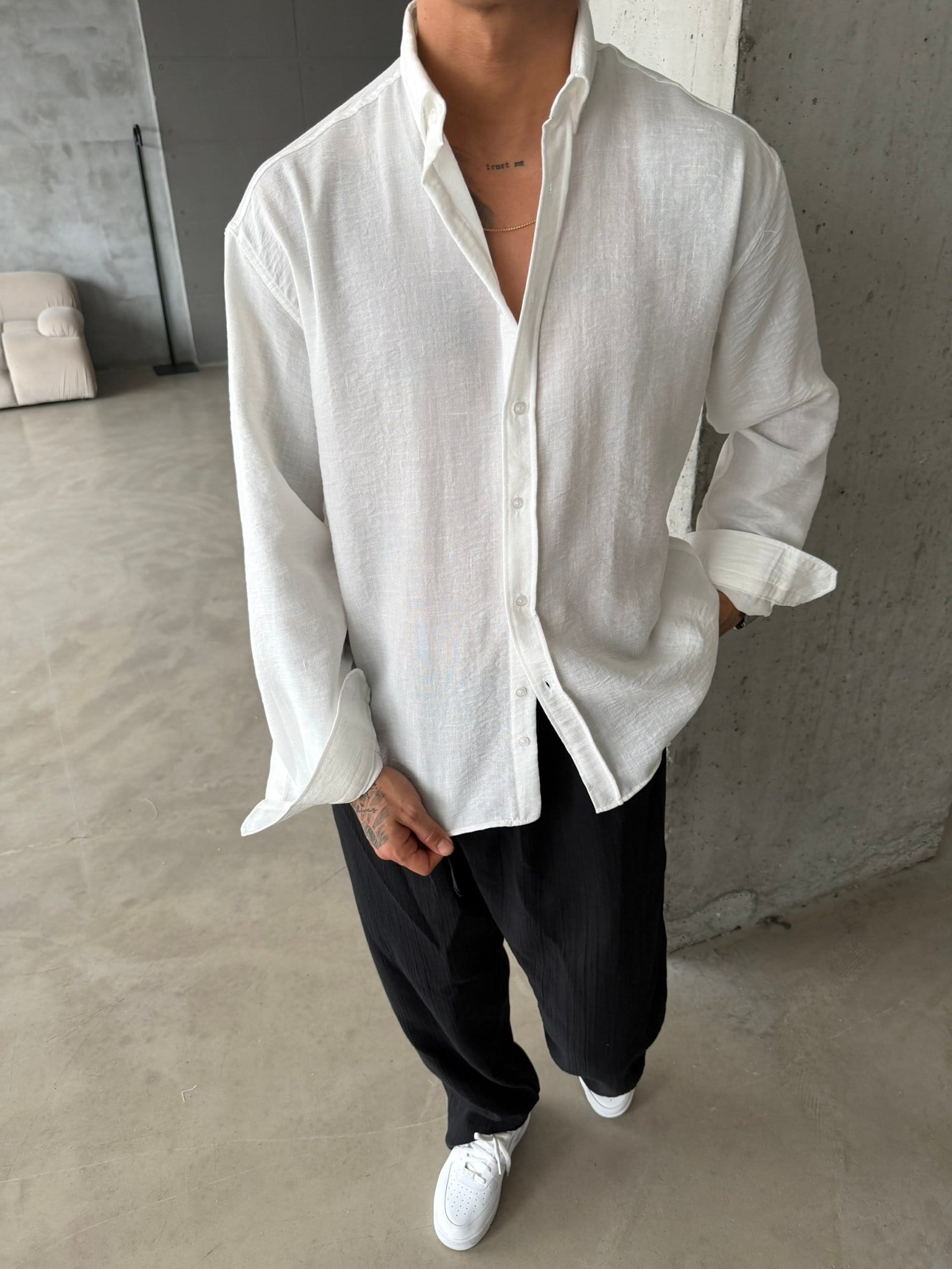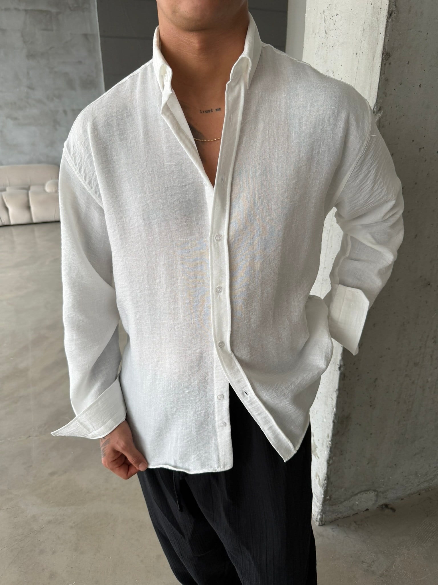 Pera Keten Basic Gömlek - Beyaz (GML.0042-Beyaz-S)