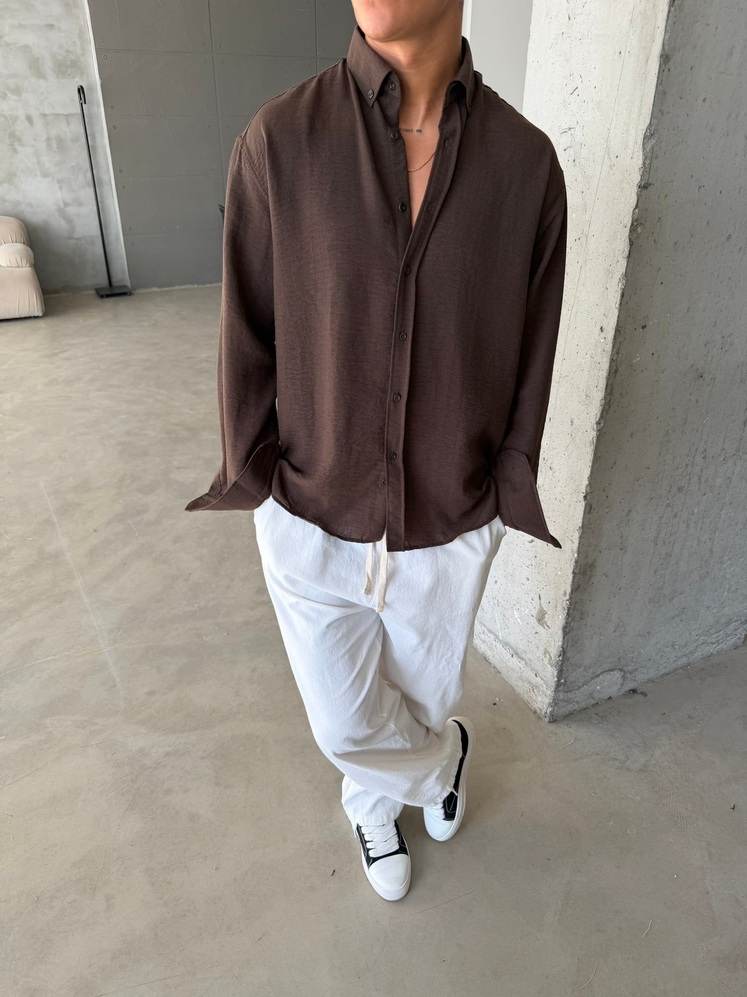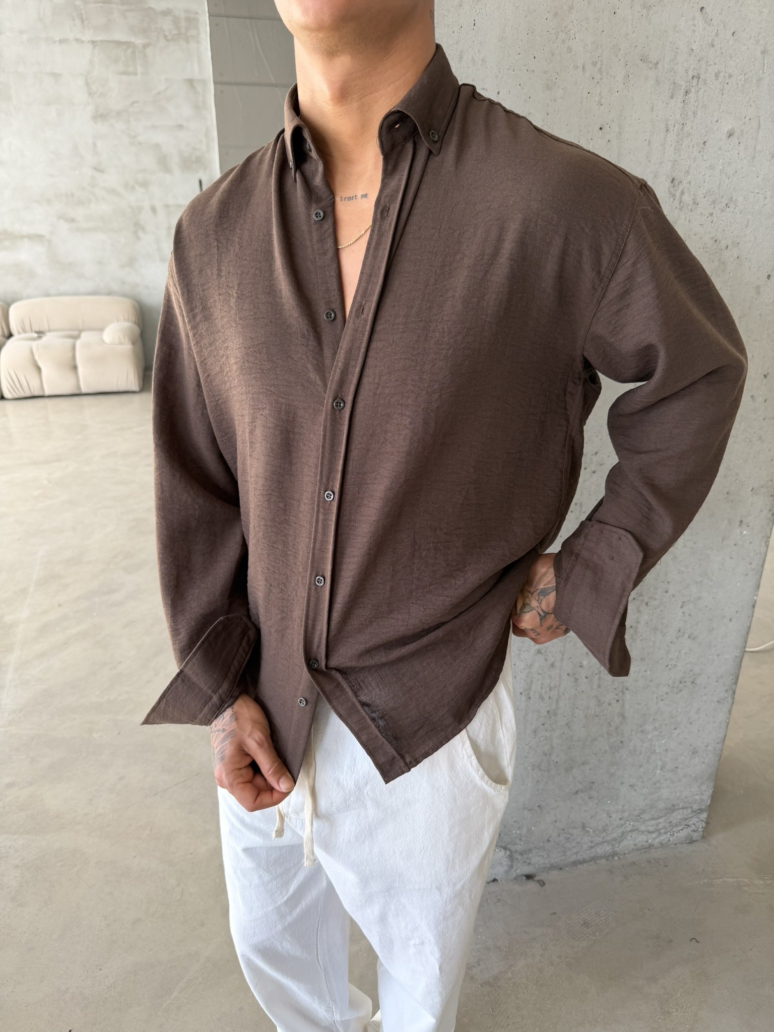 Pera Keten Basic Gömlek - Kahve (GML.0042-Kahve-S)