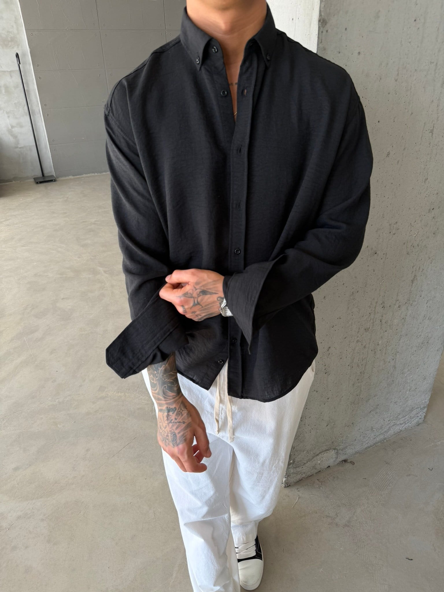 Pera Keten Basic Gömlek - Siyah (GML.0042-Siyah-S)