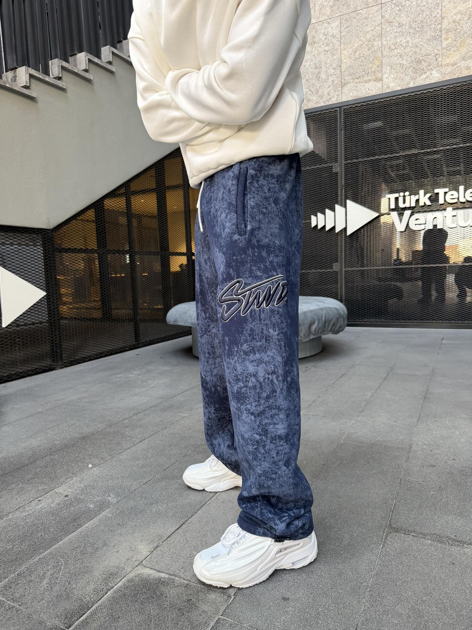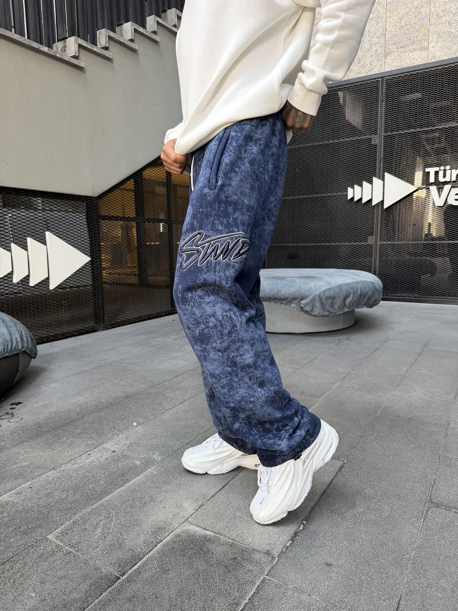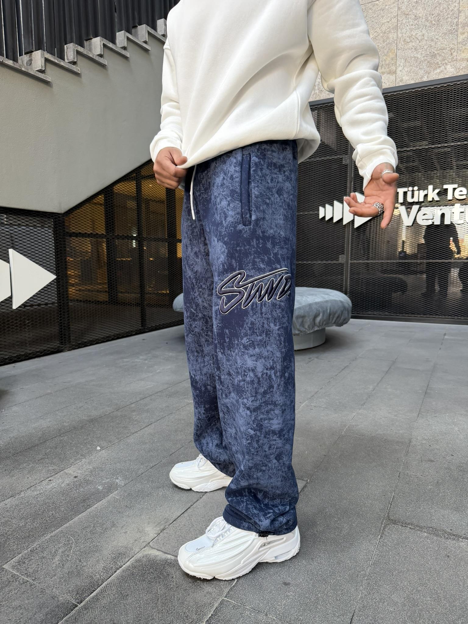 Premium Acid İşlemeli SW Yıkamalı Baggy Eşofman - İndigo (EŞF.0037-İndigo-S)