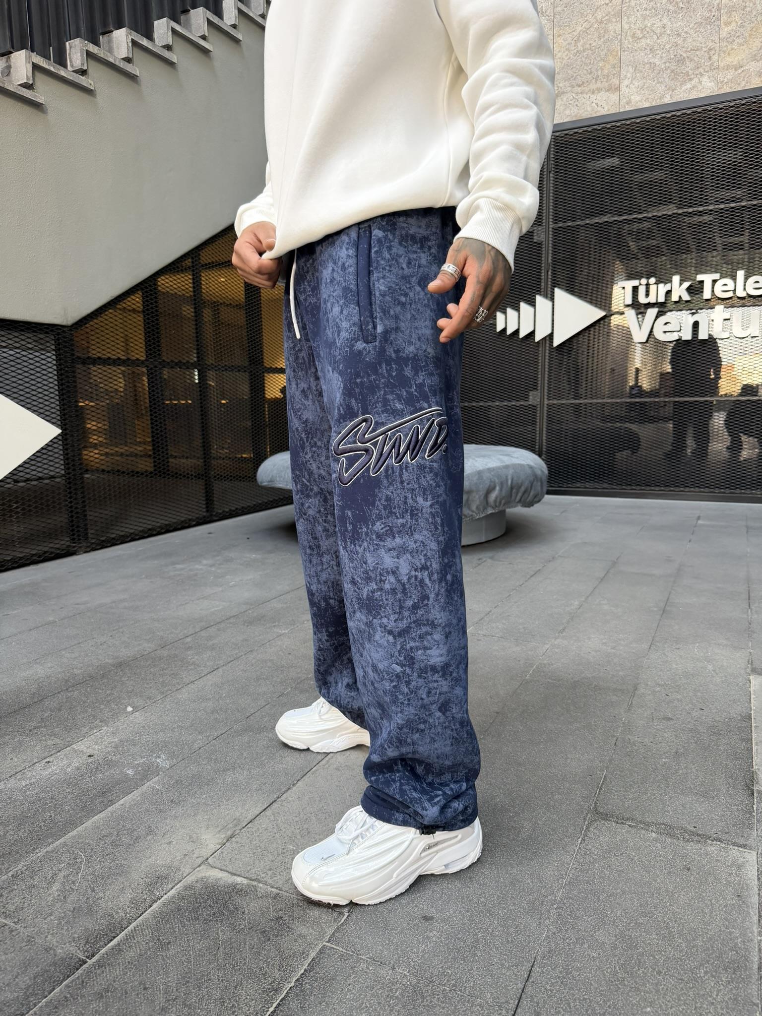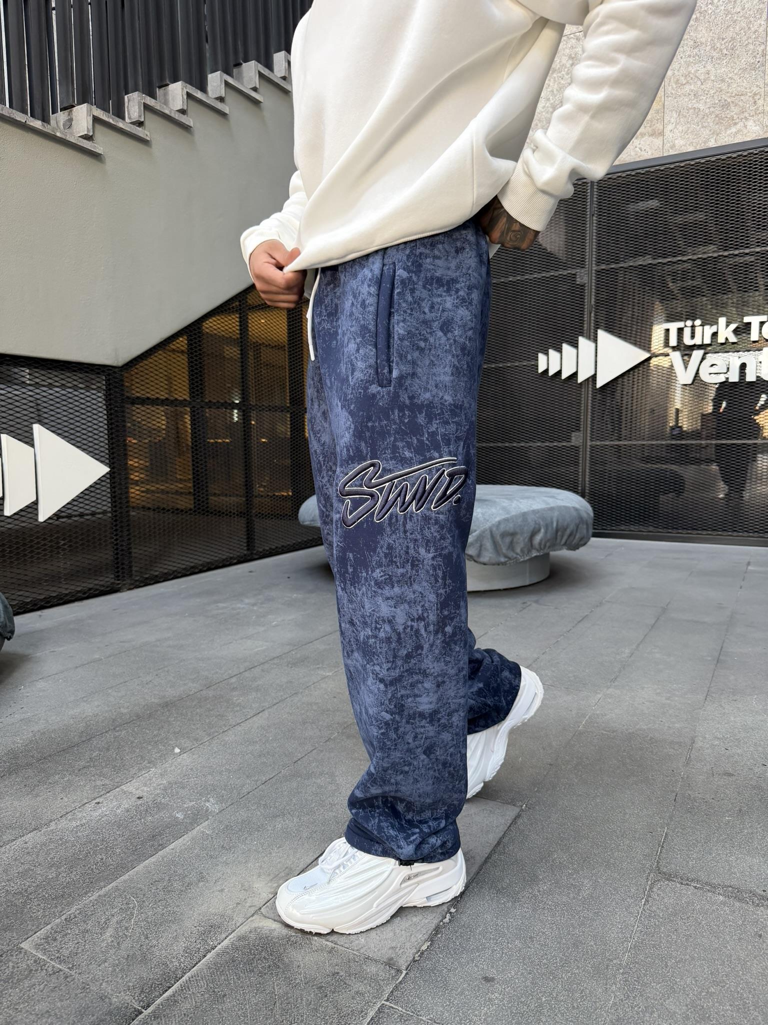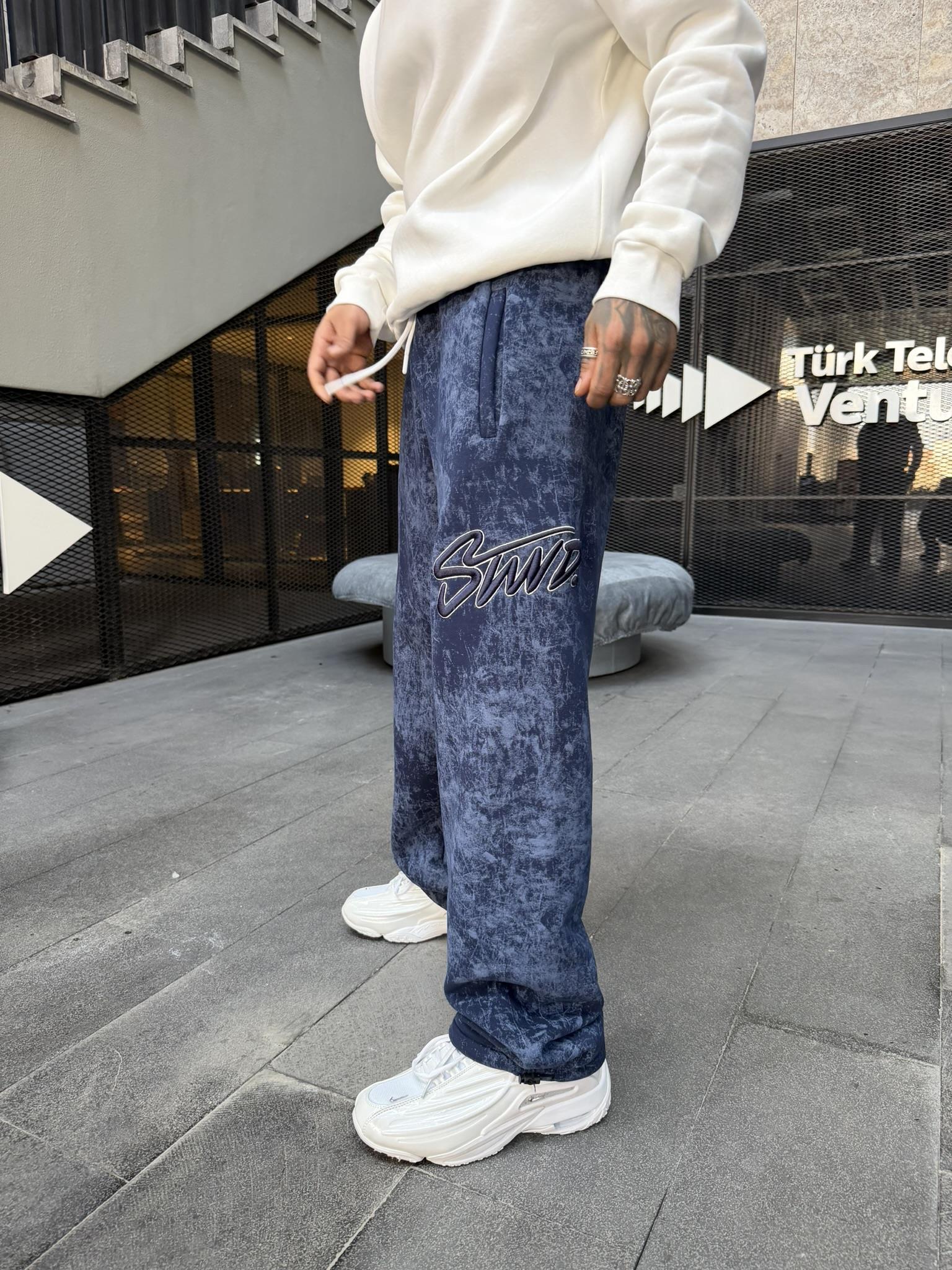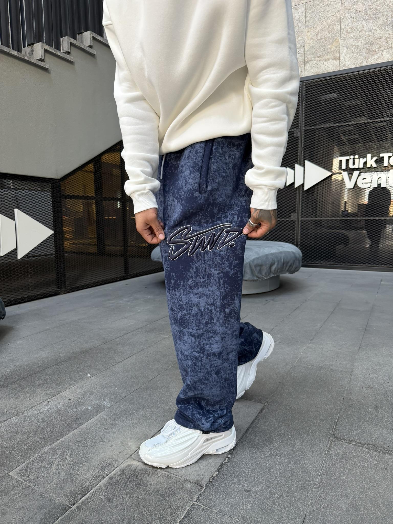 Premium Acid İşlemeli SW Yıkamalı Baggy Eşofman - İndigo (EŞF.0037-İndigo-S)