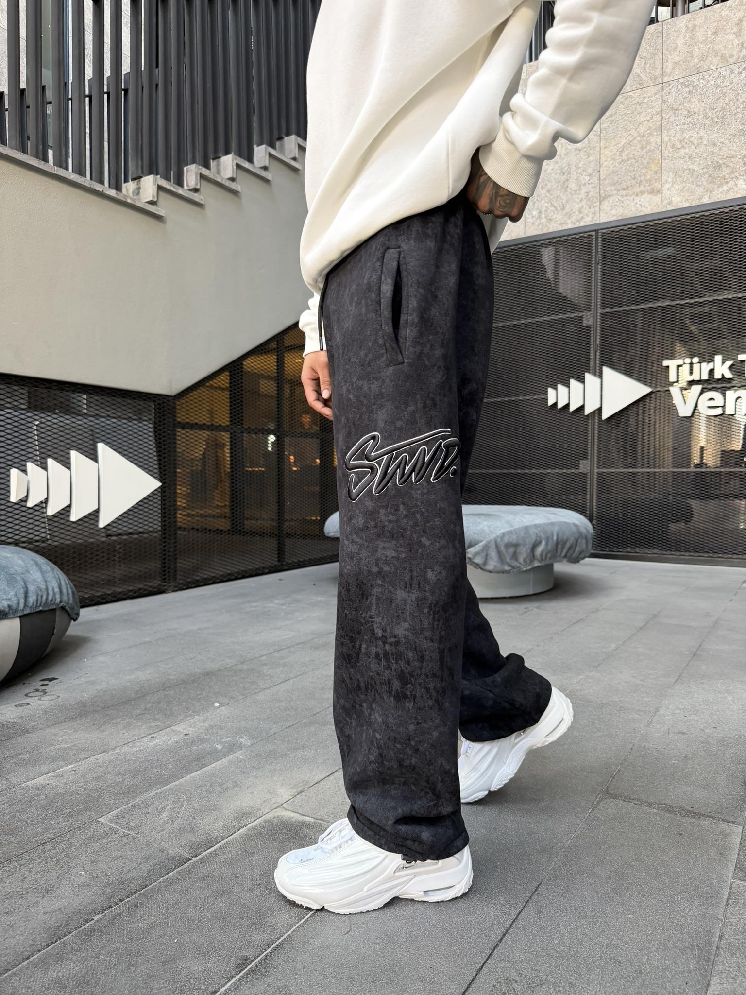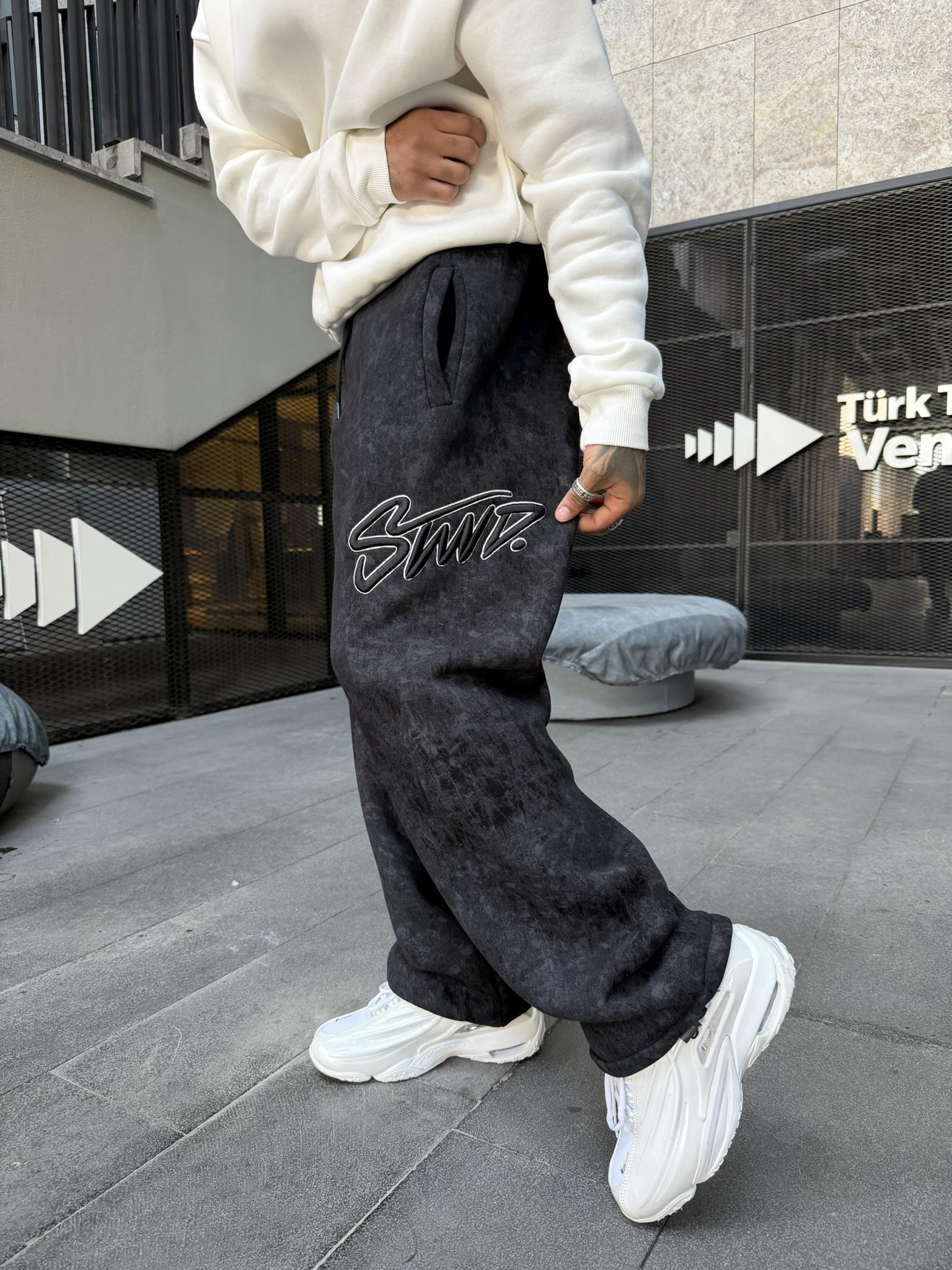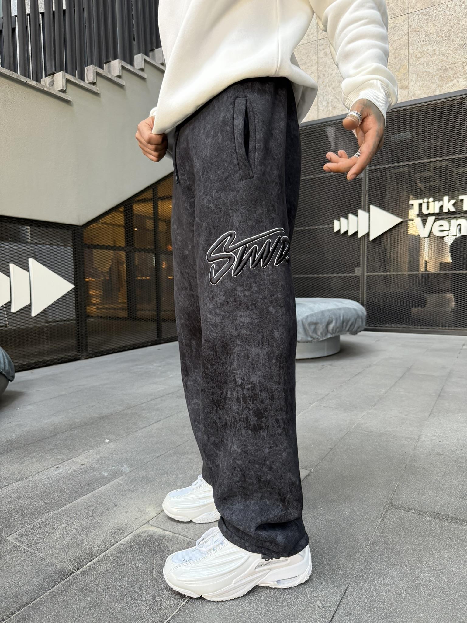 Premium Acid İşlemeli SW Yıkamalı Baggy Eşofman - Siyah (EŞF.0037-Siyah-S)